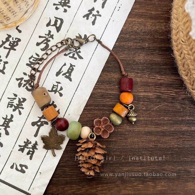 手链小众文艺民族风手串独特串珠设计手饰复古天然植物果实手链女