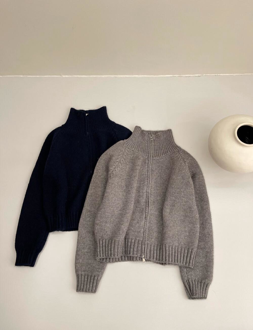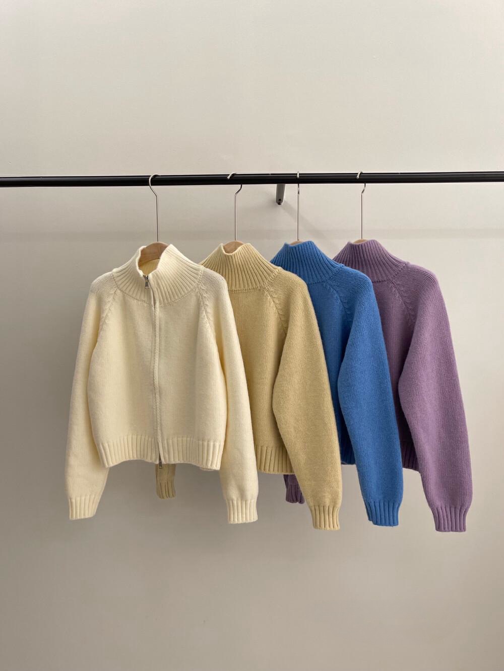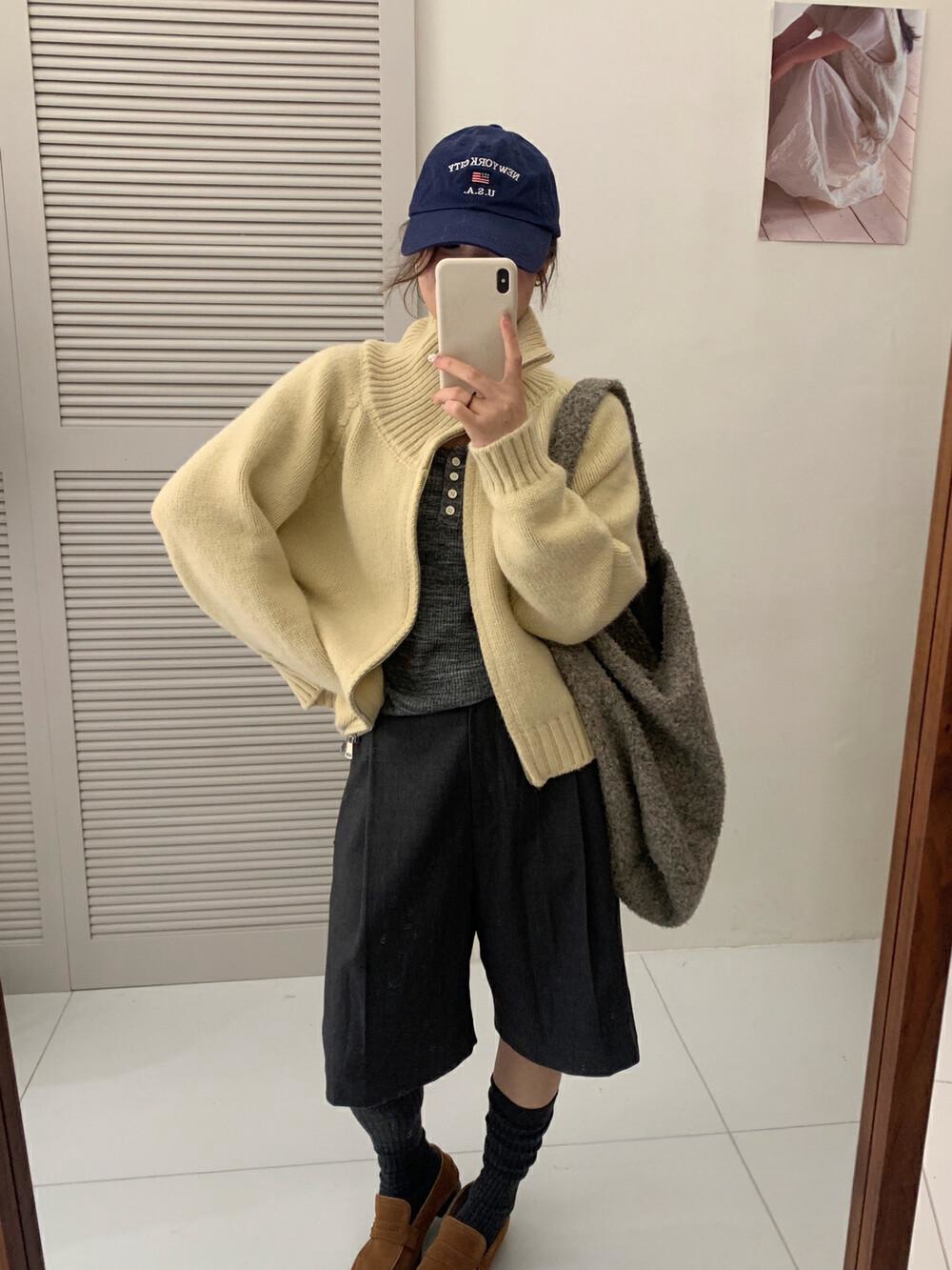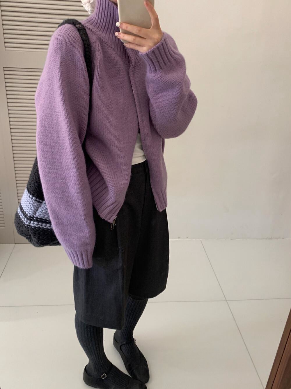 韩系简约立领拉链毛衣开衫女秋冬新款慵懒风宽松洋气短款针织外套