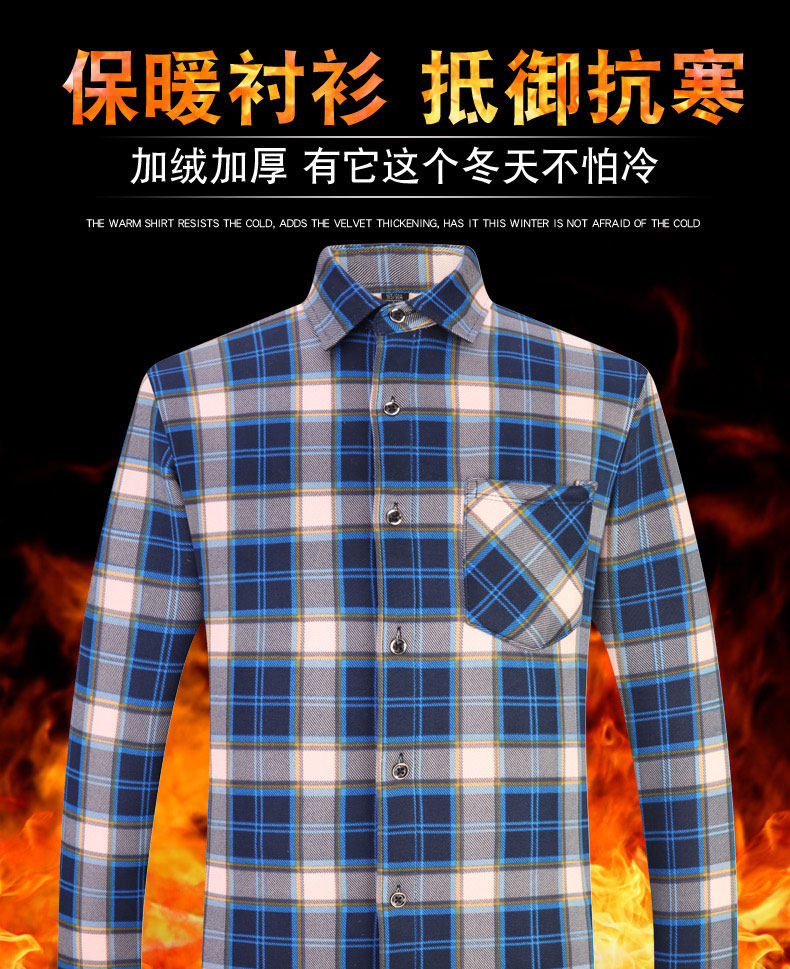 男士保暖衬衣加厚加绒冬季中老年格子衬衫男复古印花长袖休闲男装