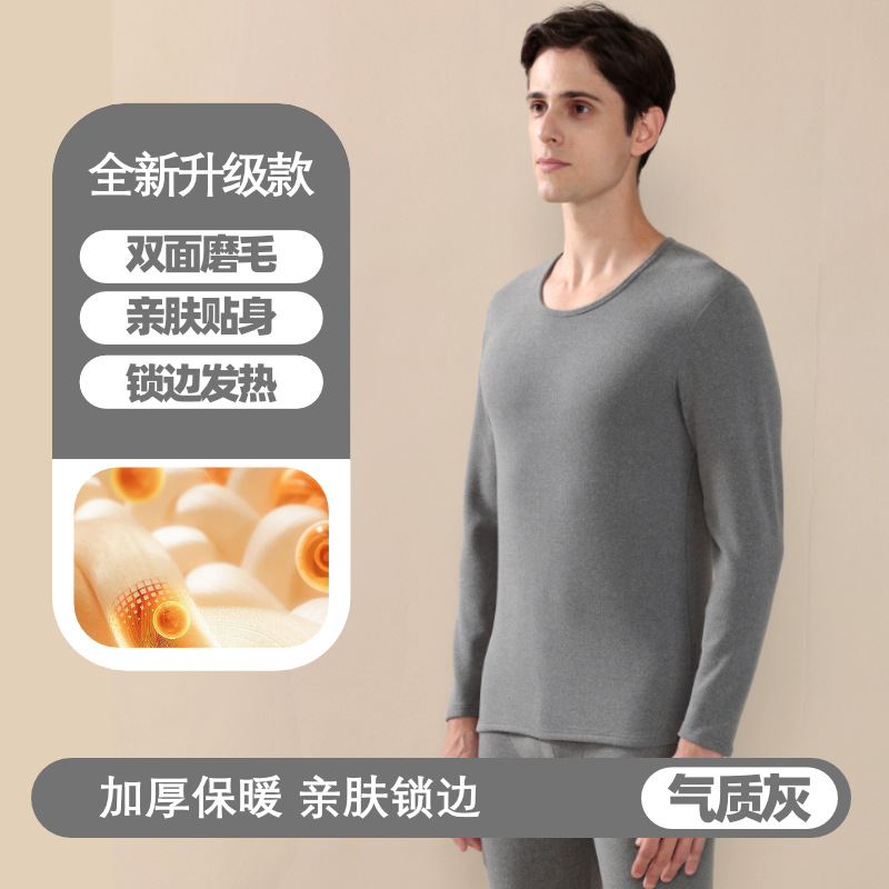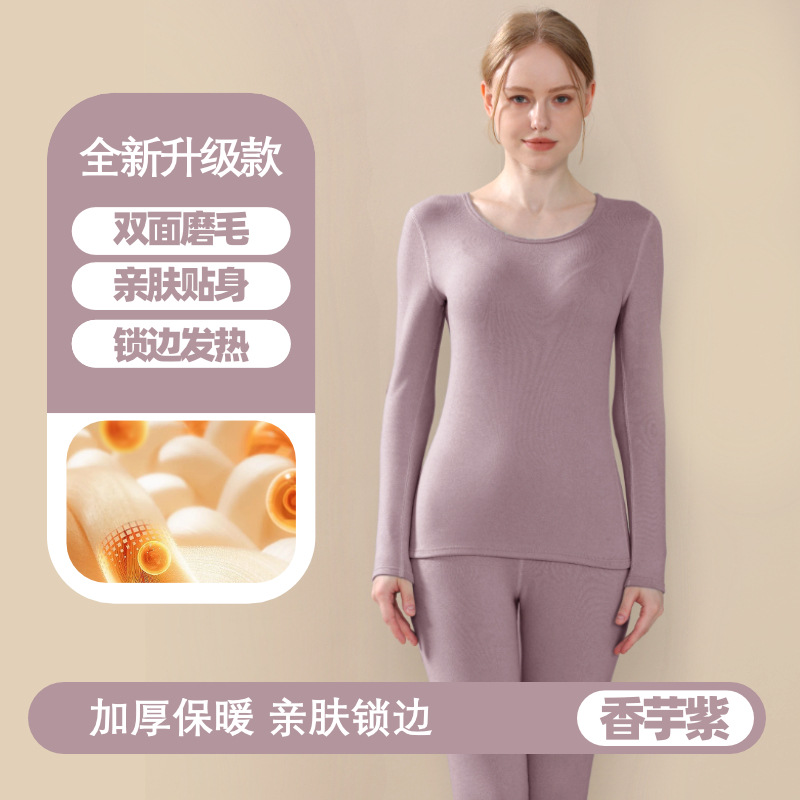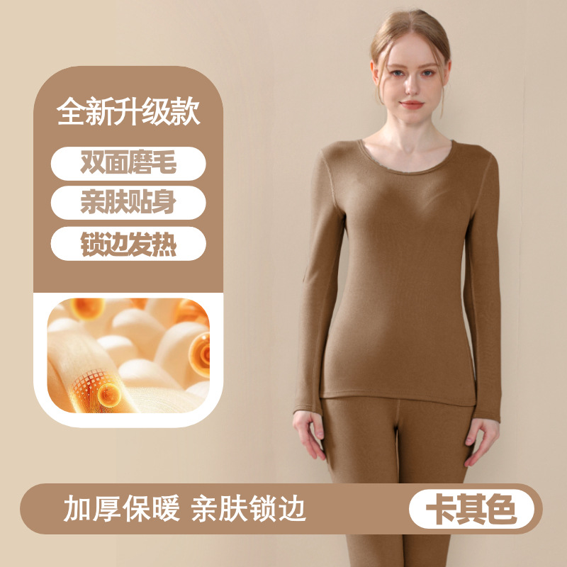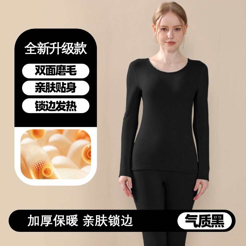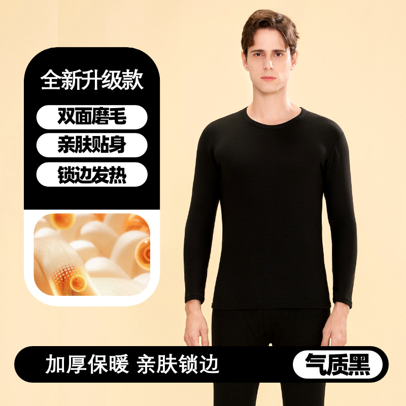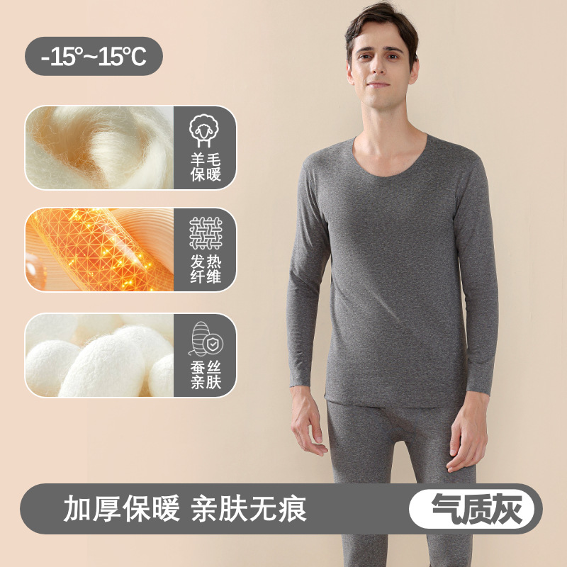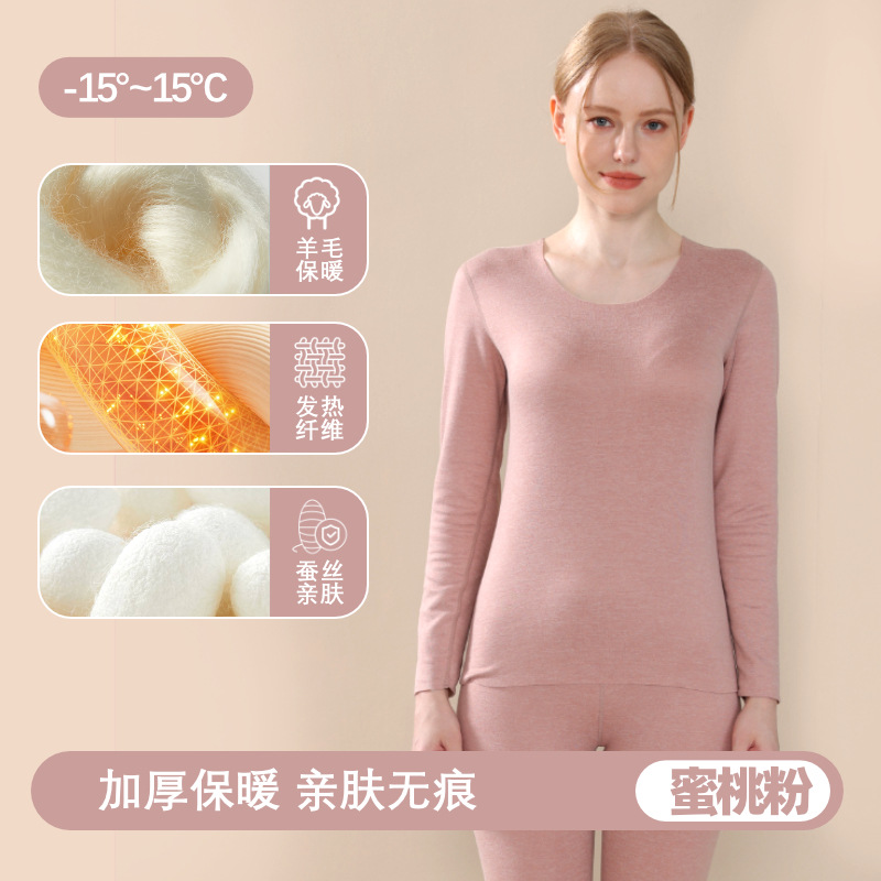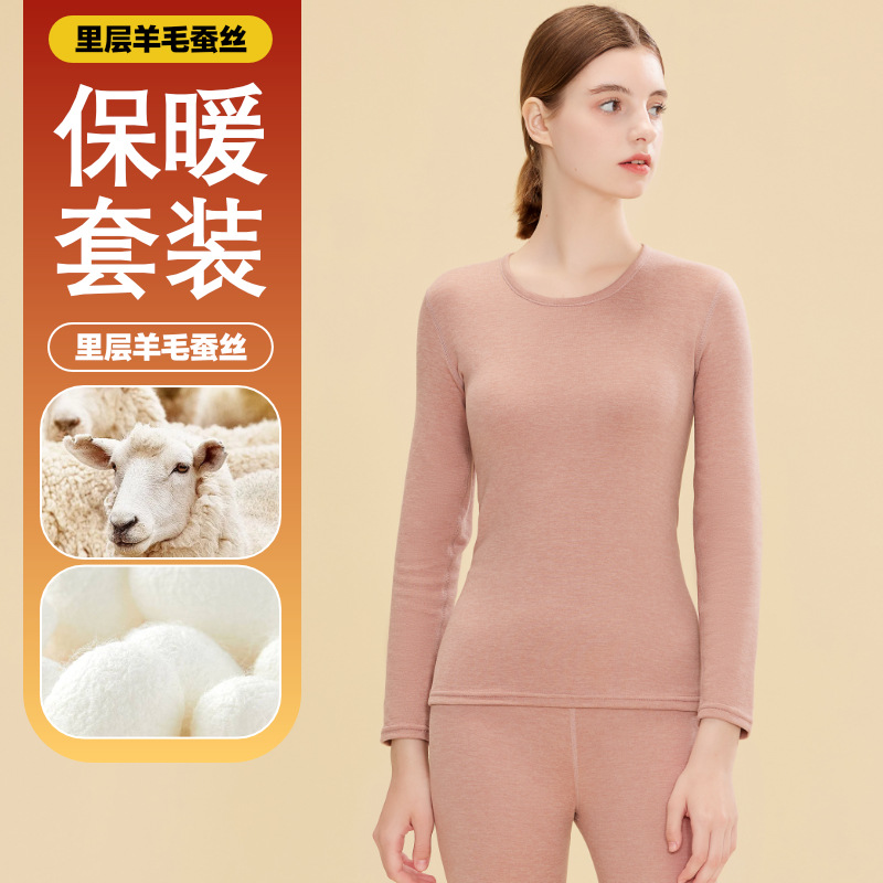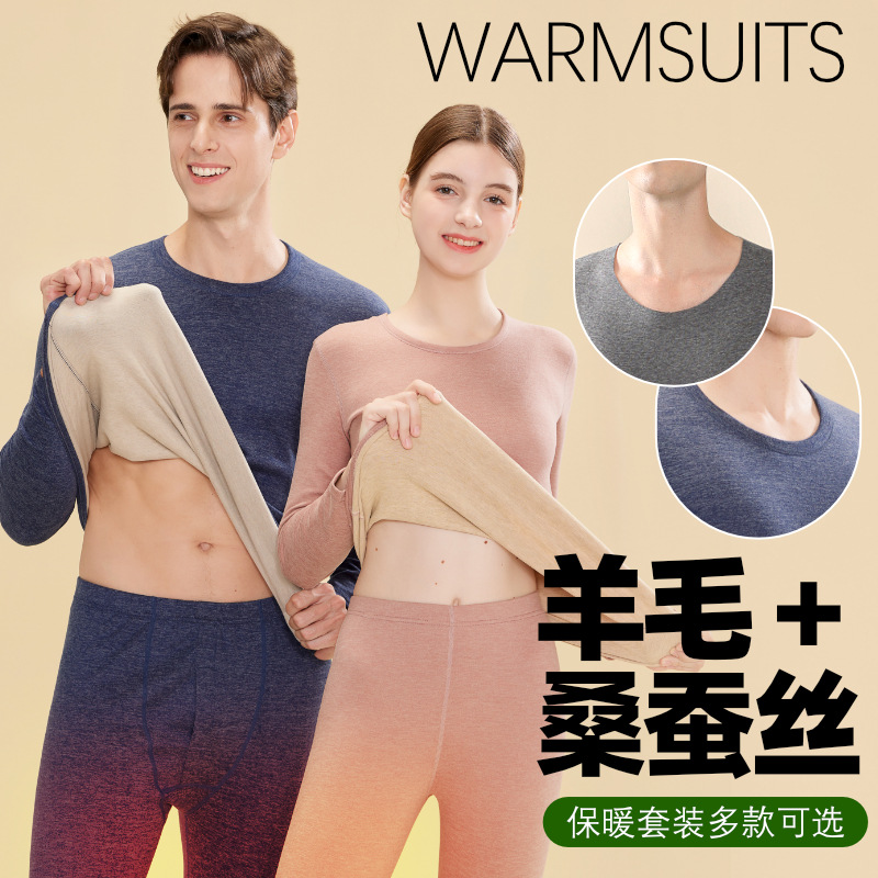 2025新款羊毛蚕丝保暖内衣女AB面双面磨毛加绒秋衣秋裤男套装批发