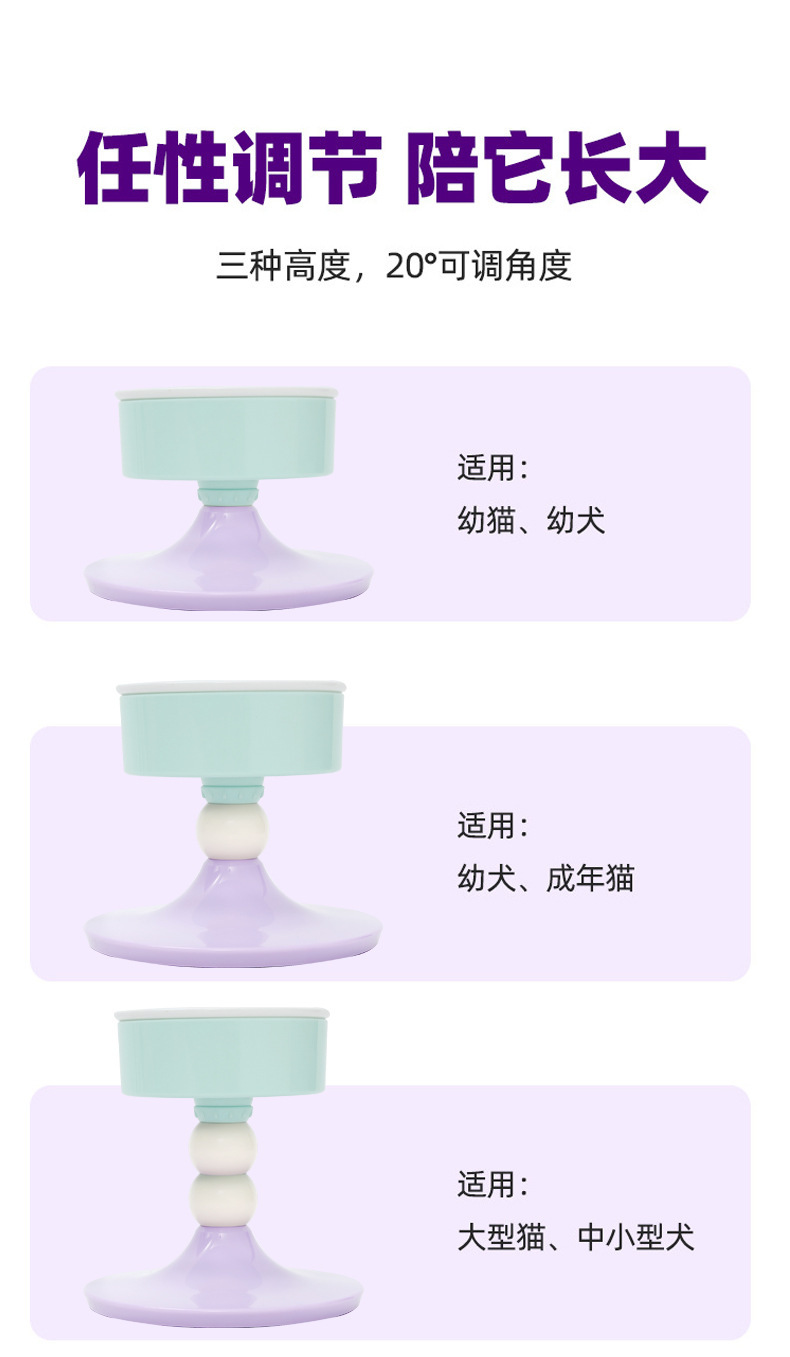 新品日韩猫碗互颈可调节高脚碗猫咪食盆创意狗碗防打翻宠物喂食器