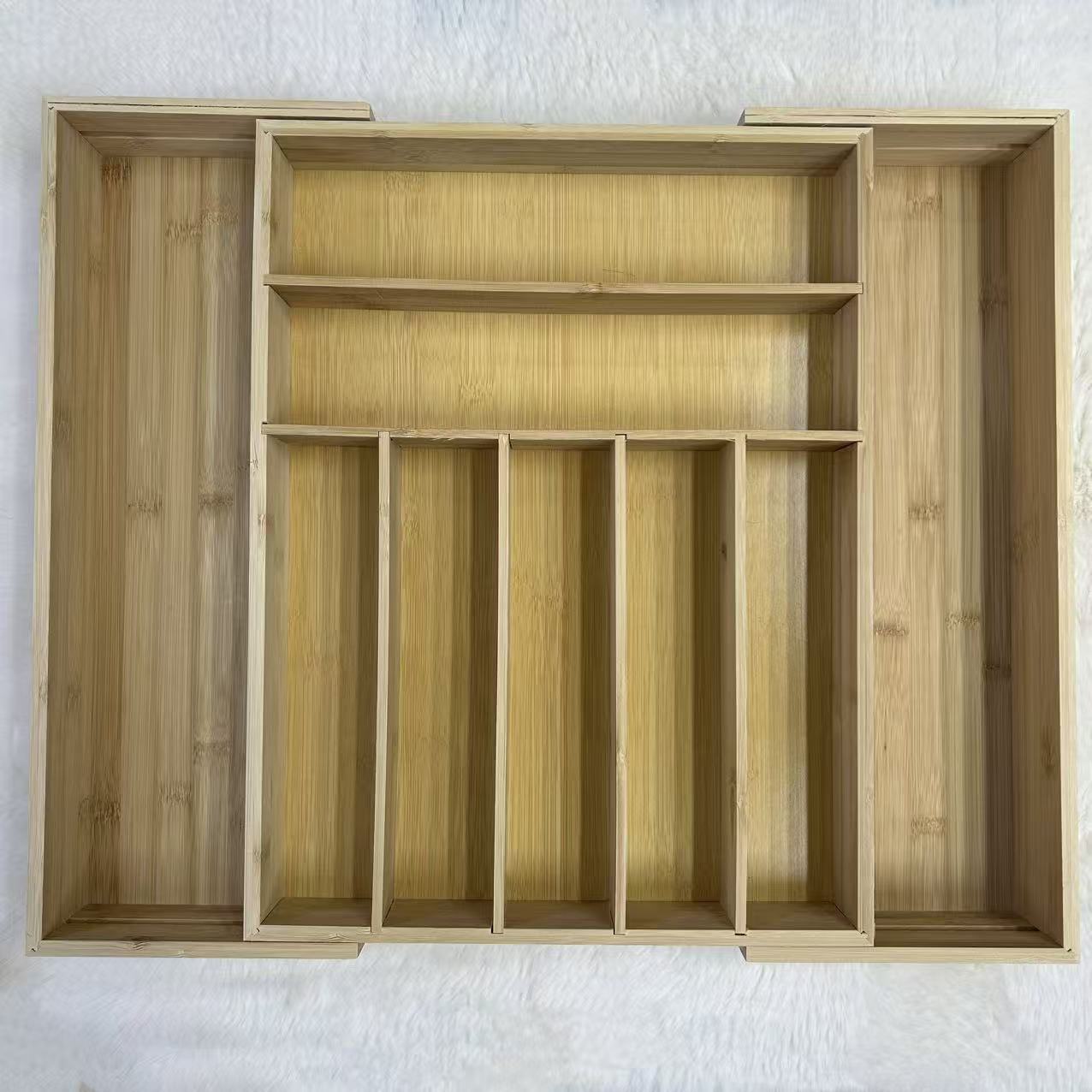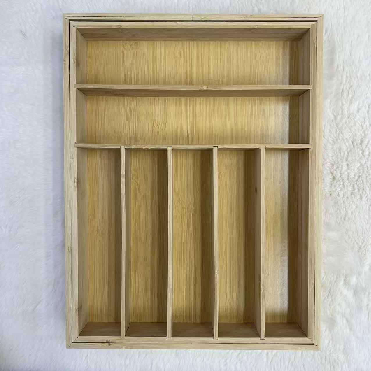 跨境新品竹制可伸缩厨房餐具收纳盒分隔筷子日式刀叉刀具储物整理