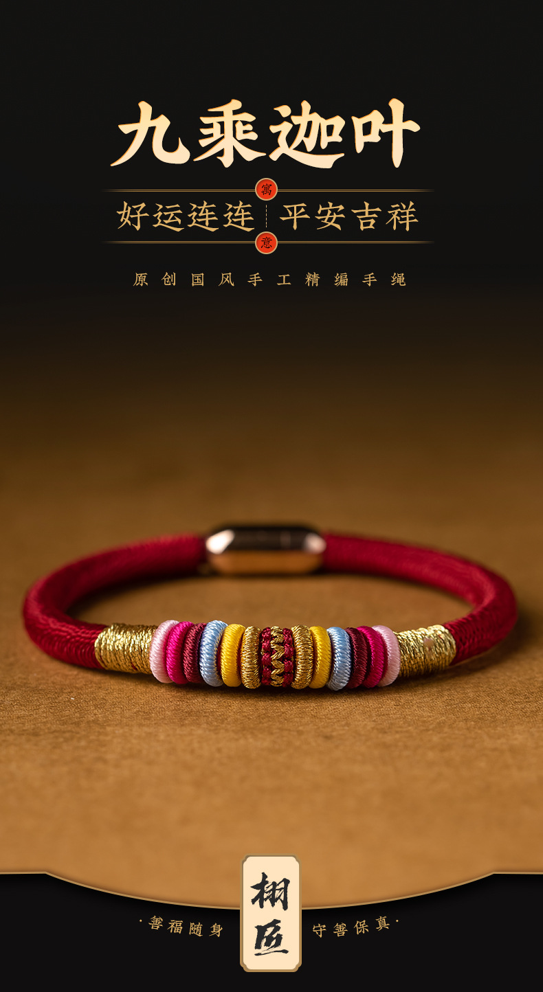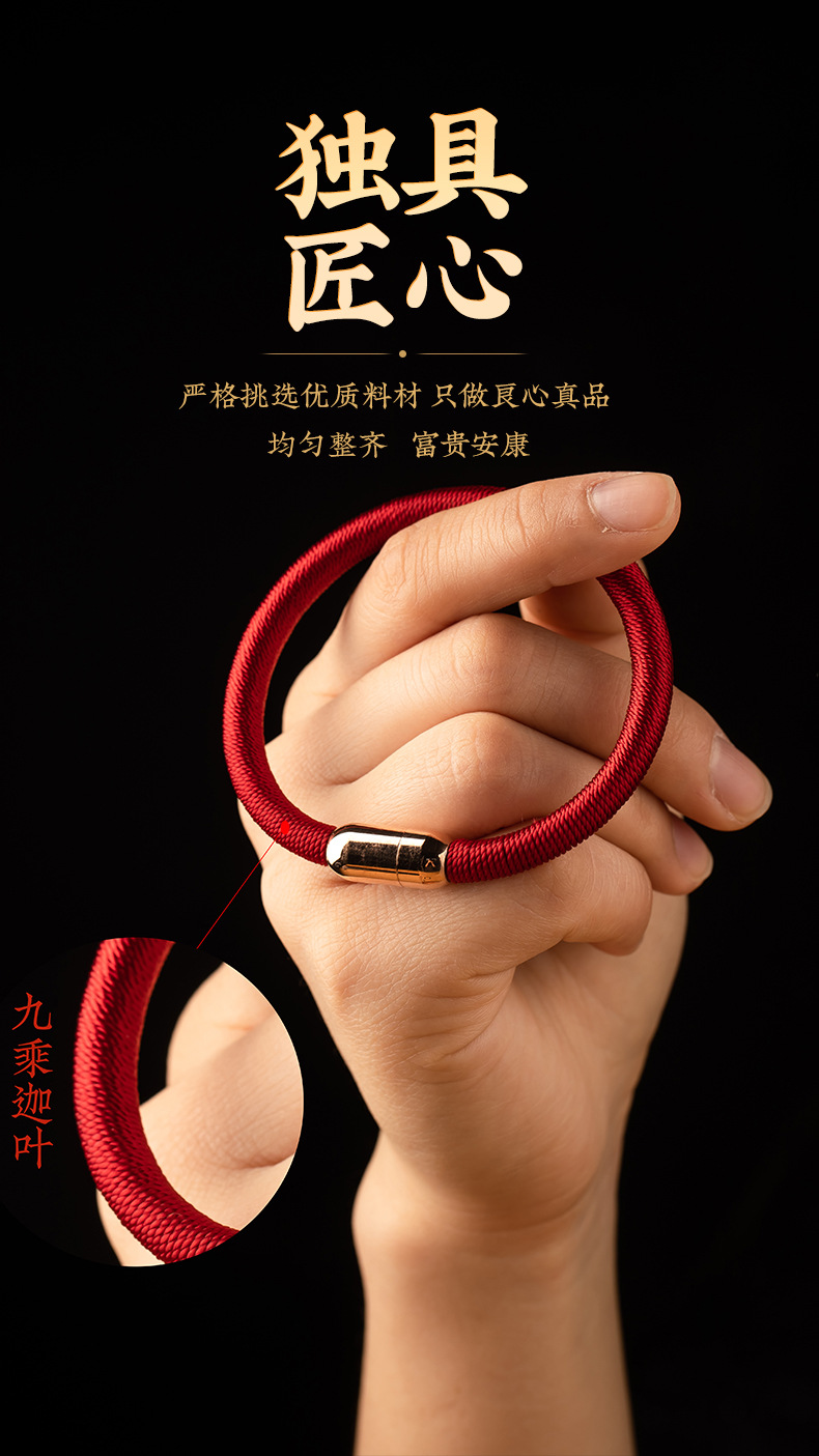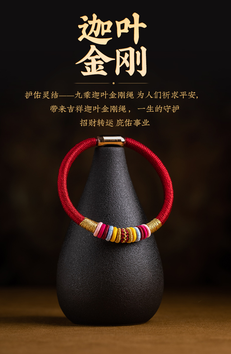 九乘迦叶金刚结手绳本命年平安好运红绳情侣手链磁扣手工国风饰品