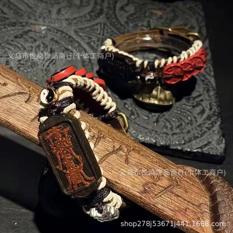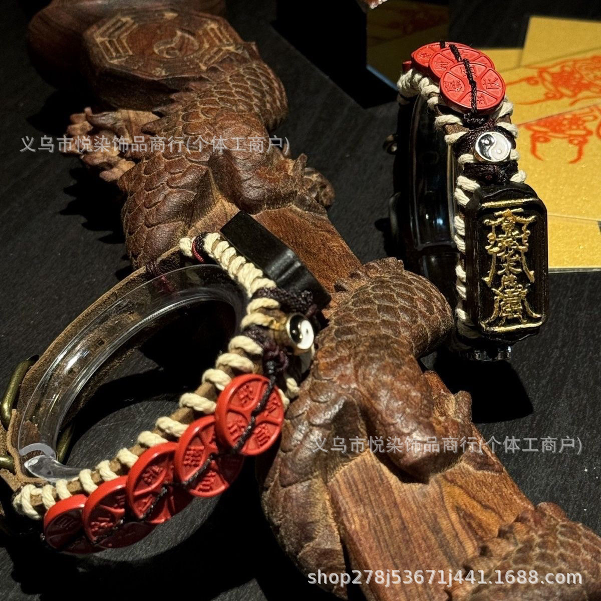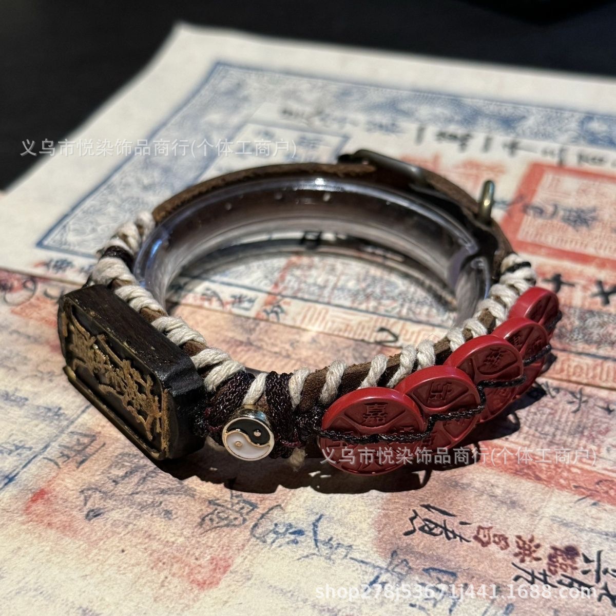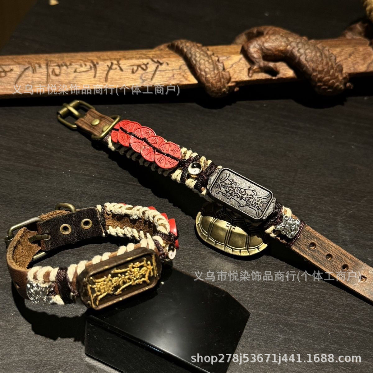 头层牛皮高含量朱砂五帝钱手链貔貅手工文创编织复古风好运手绳