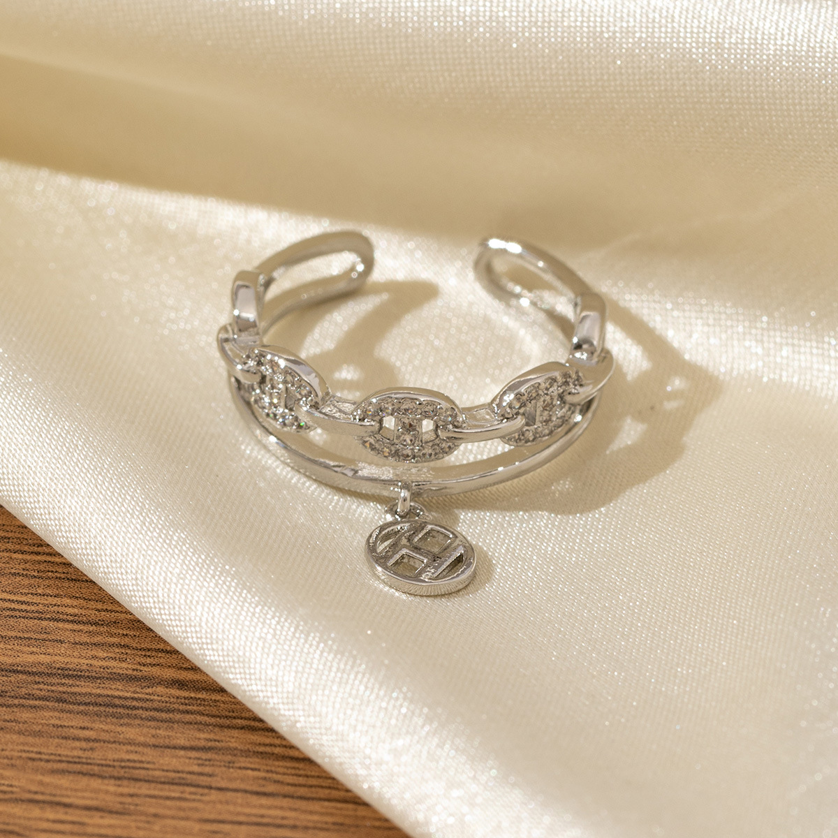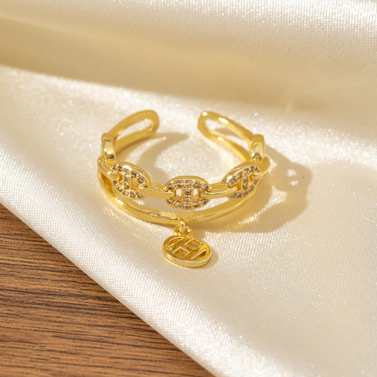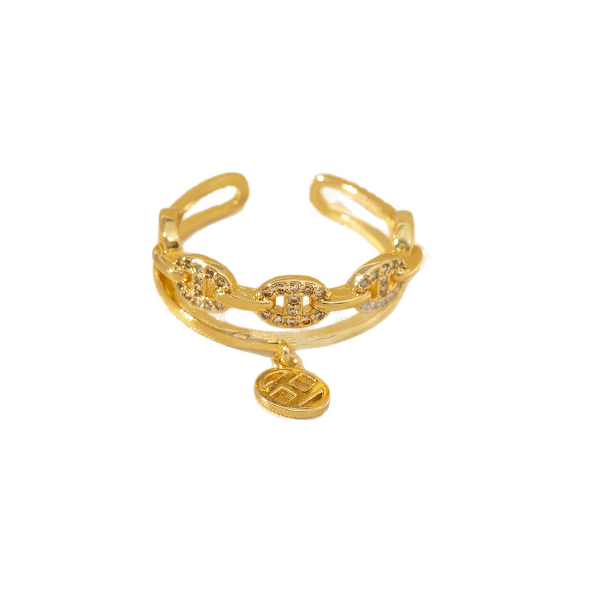 复古小众设计猪鼻子开口戒指女铜镀真金镶锆轻奢高级感指环不掉色
