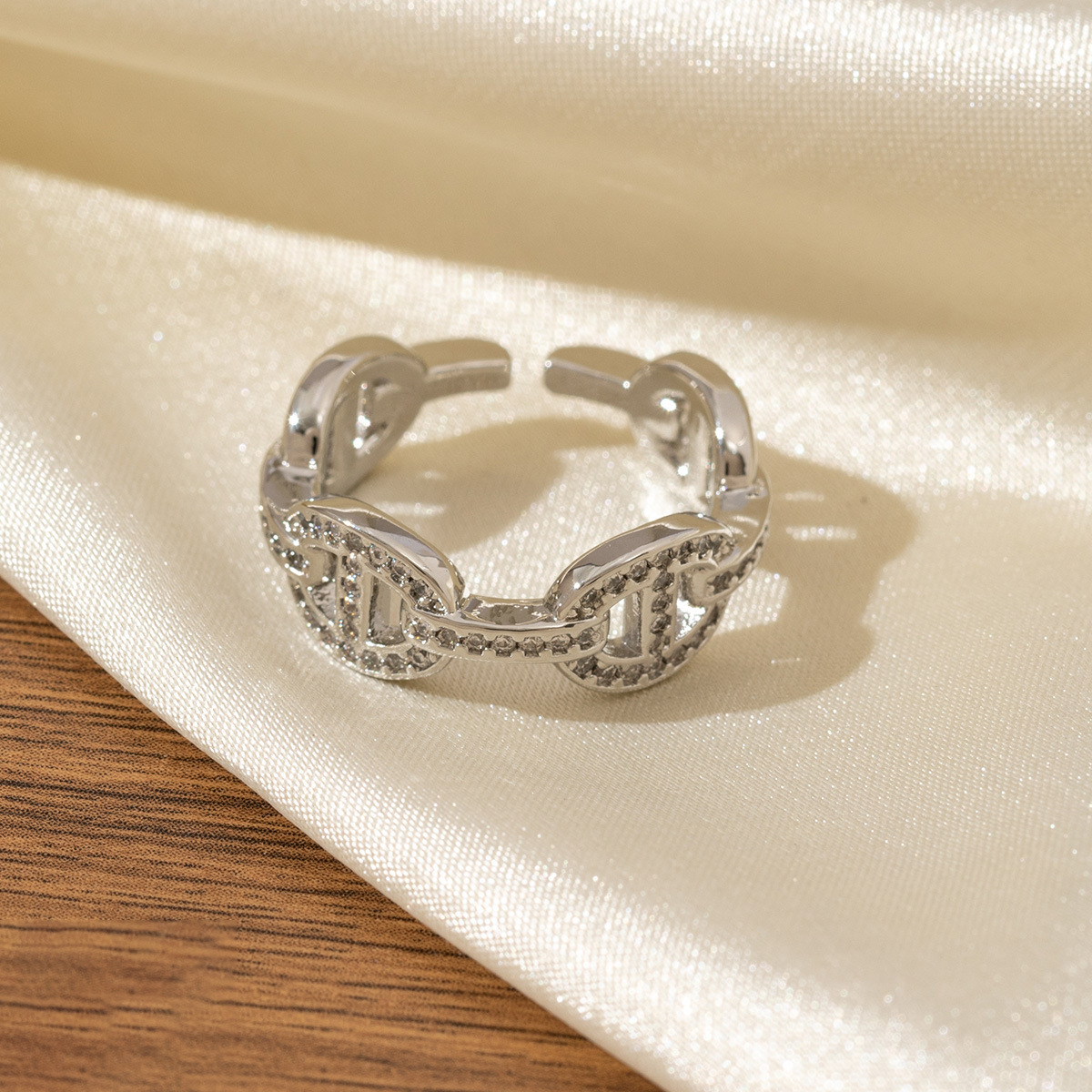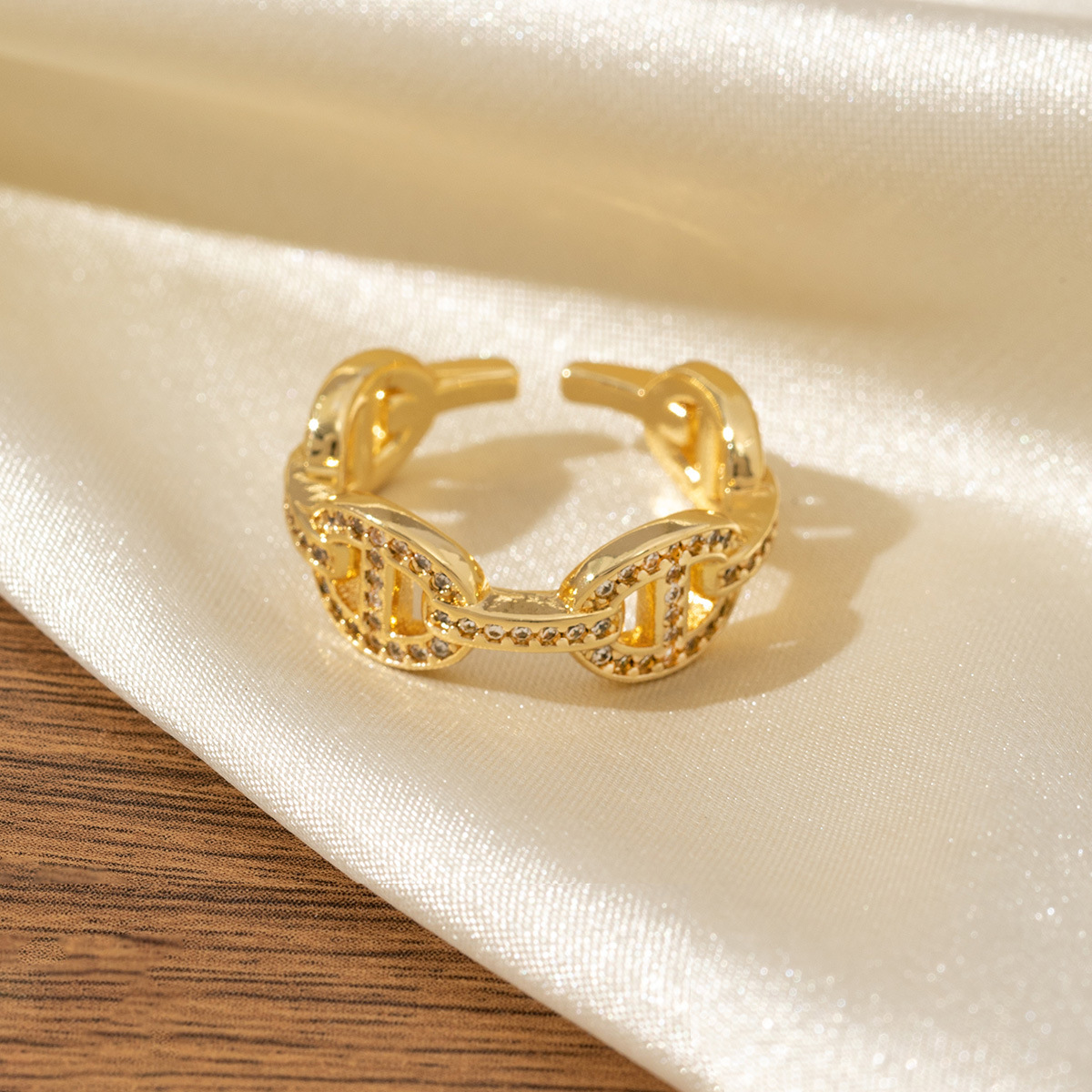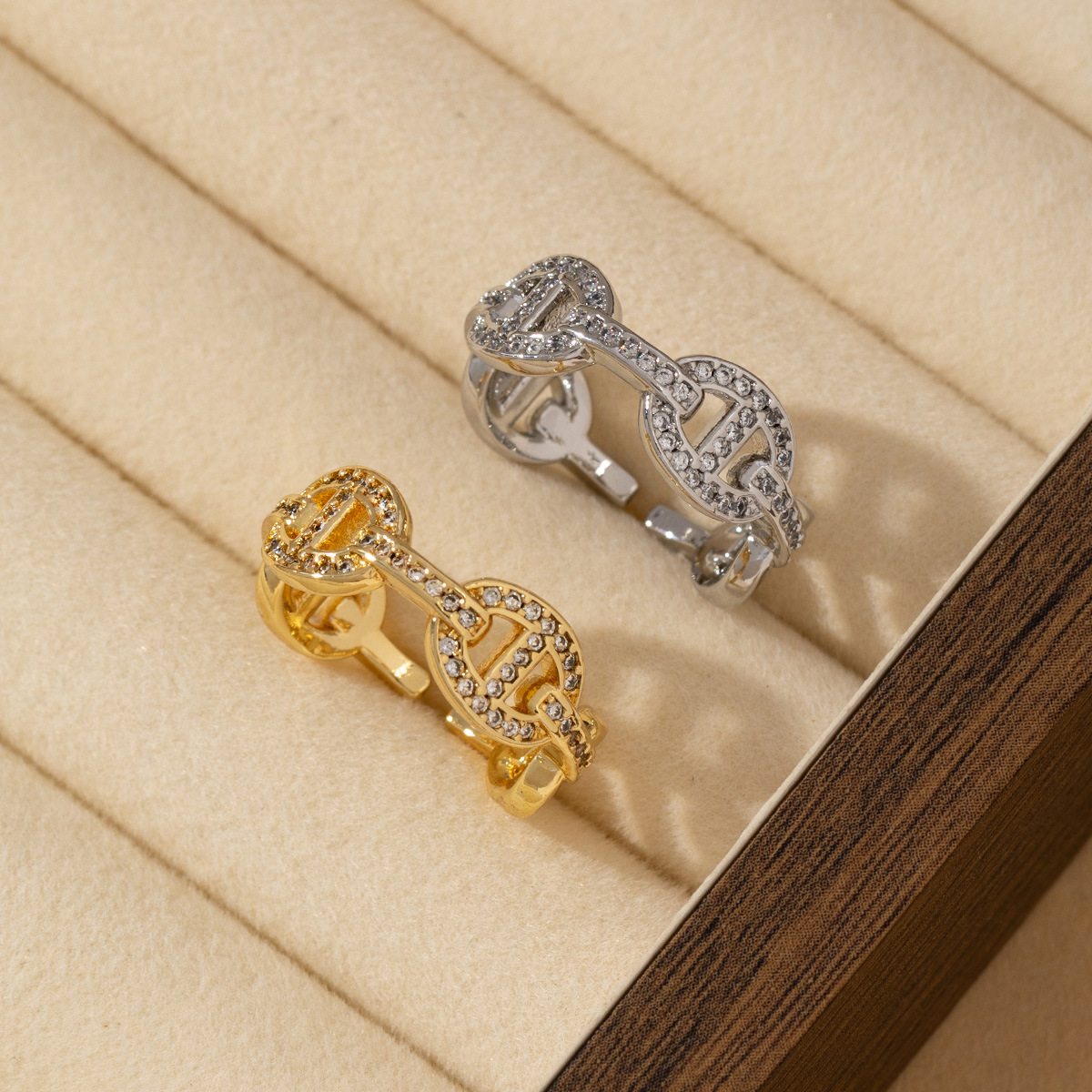 高版爱家猪鼻子满钻戒指女铜镀真金ins高级感轻奢可调节开口指环