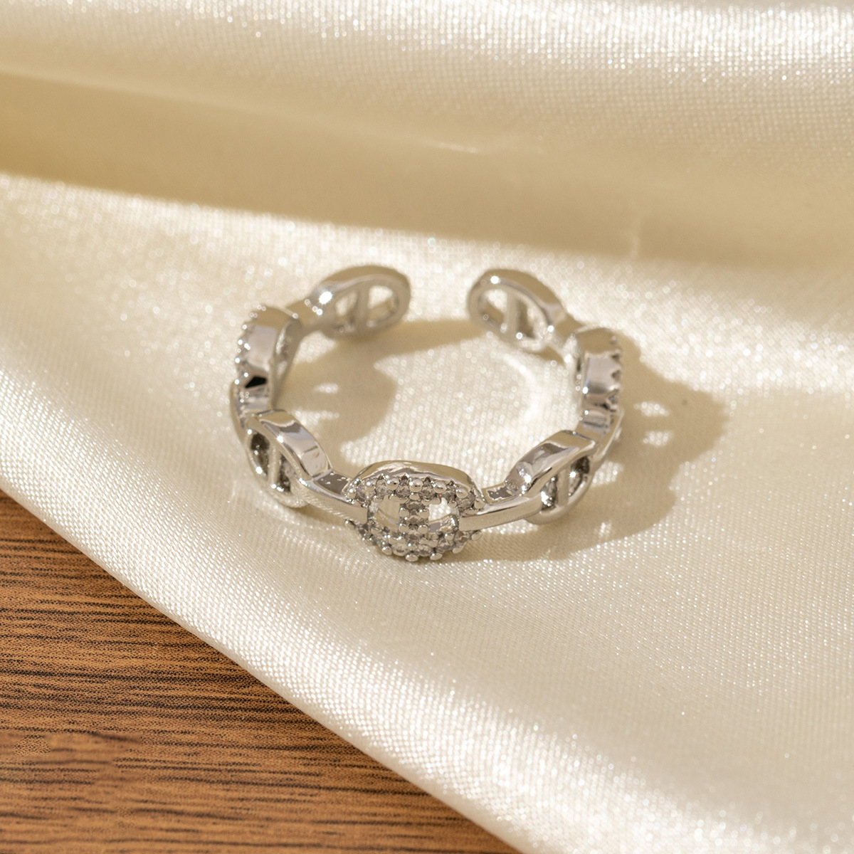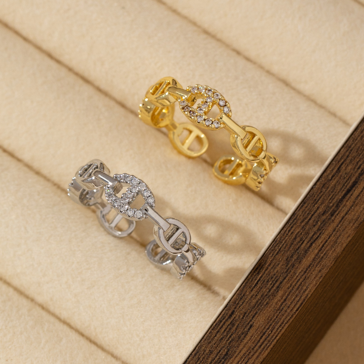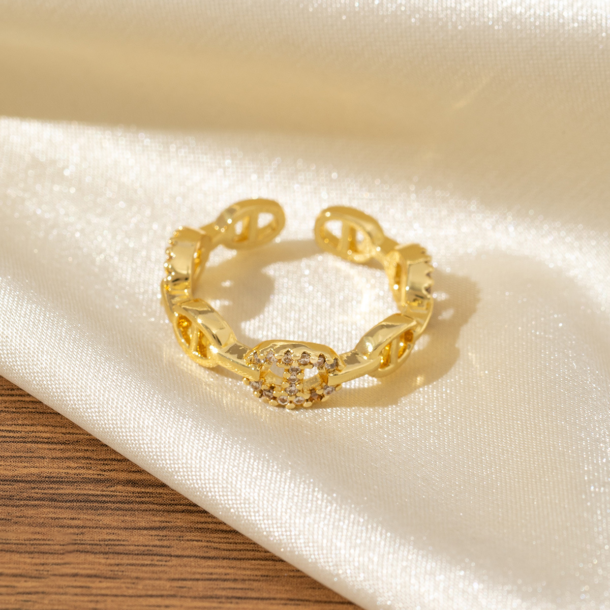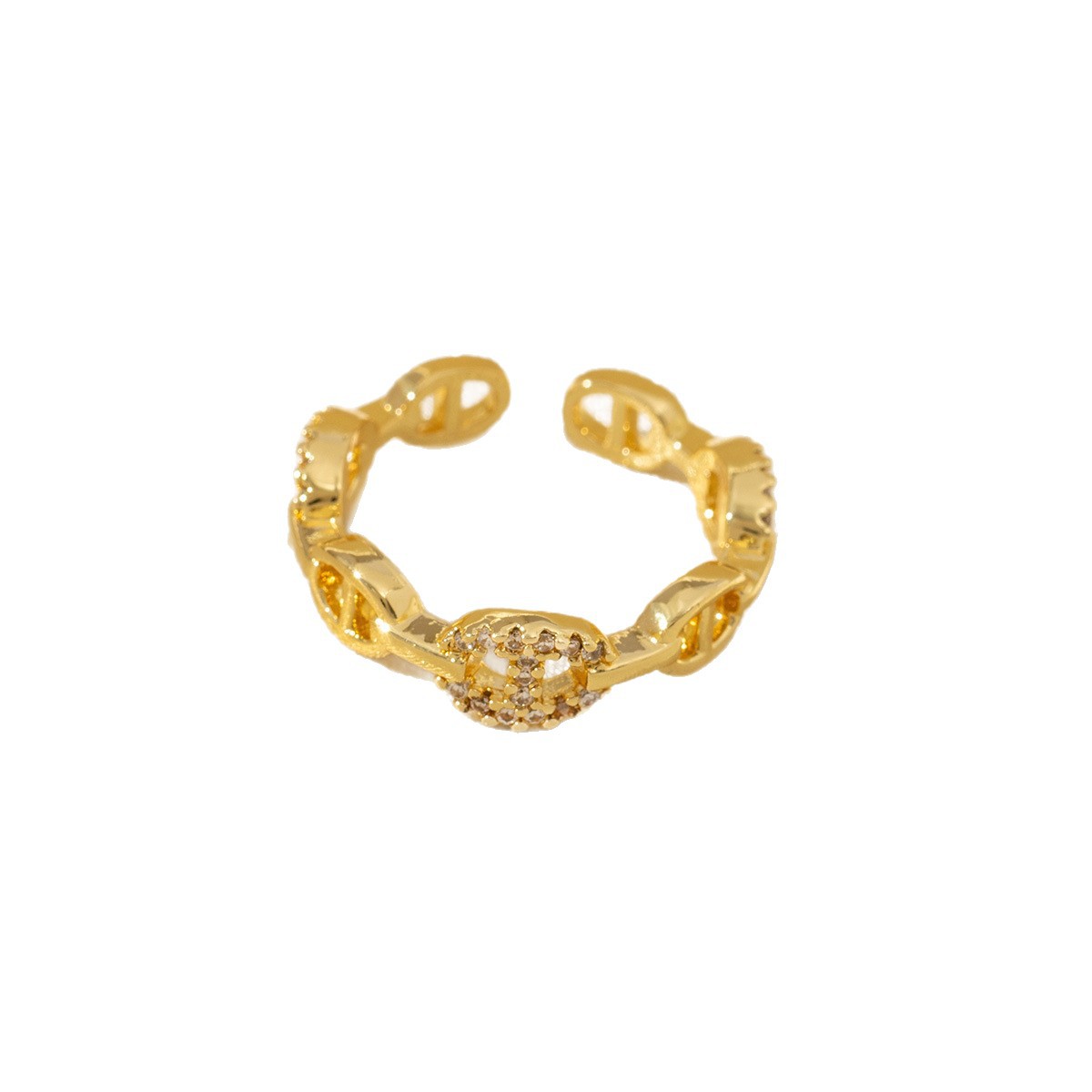 韩国复古轻奢铜锆石镀真金猪鼻子指环ins个性设计开口戒指女批发