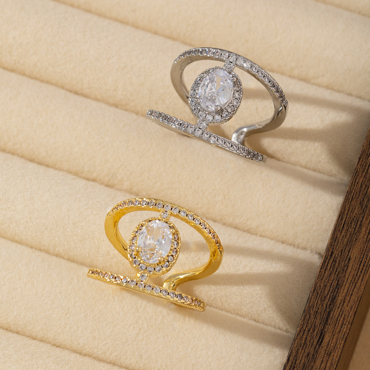 跨境货源欧美时尚ins风简约设计几何形开口戒指女铜镀金镶锆指环