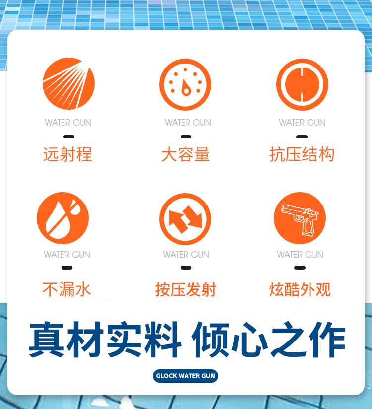 【严选】夏季新款儿童格洛克水枪全手动连发戏水男孩戏水批发玩具