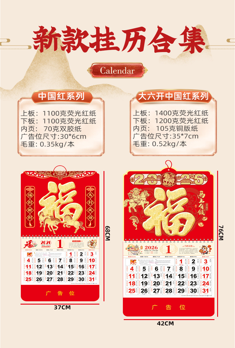 加大加厚--2026年挂历定制新款马年福字日历整年高档大号吊牌黄历