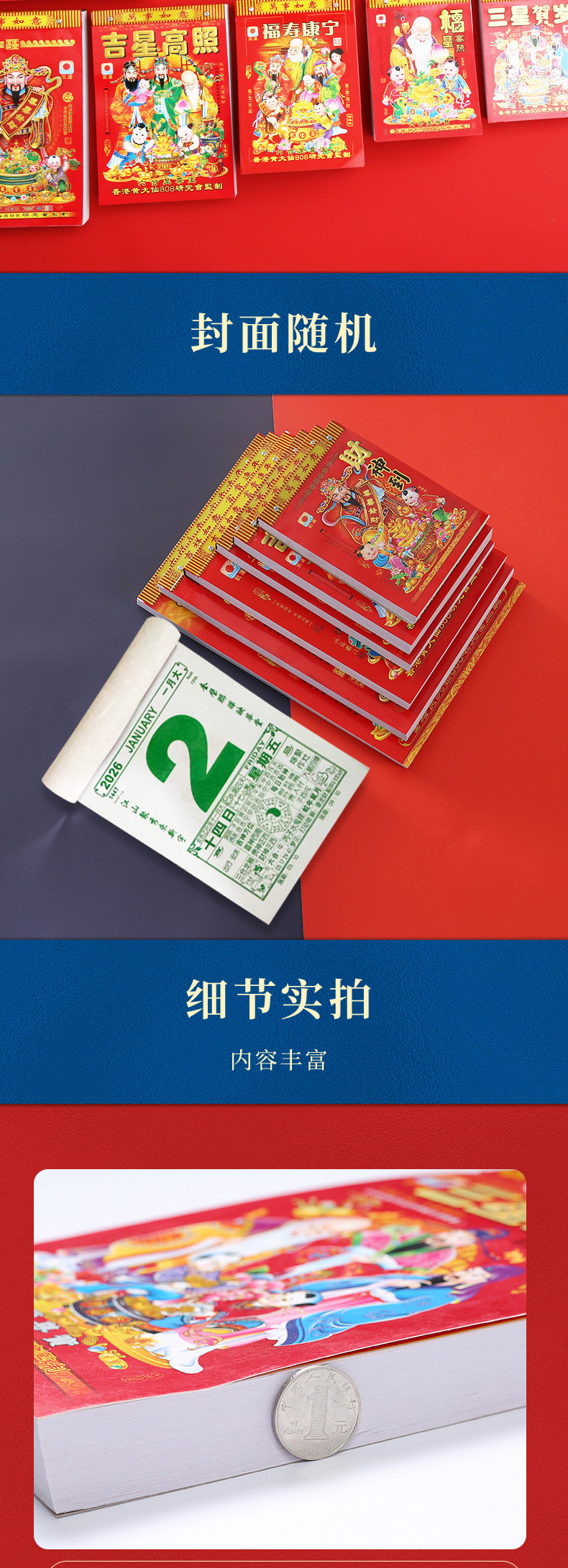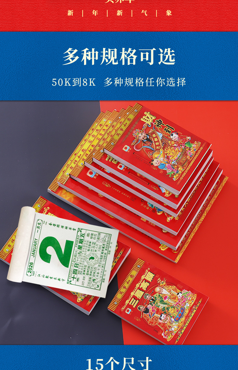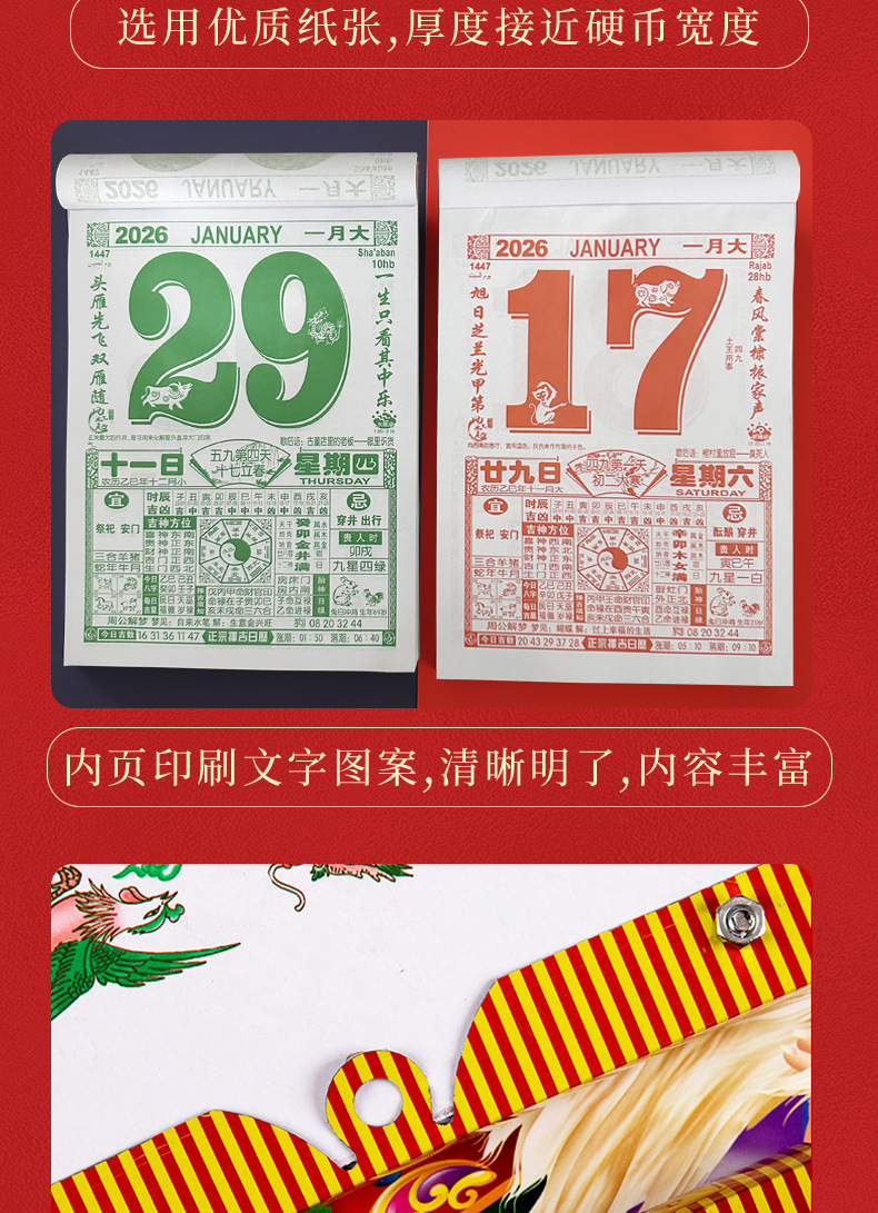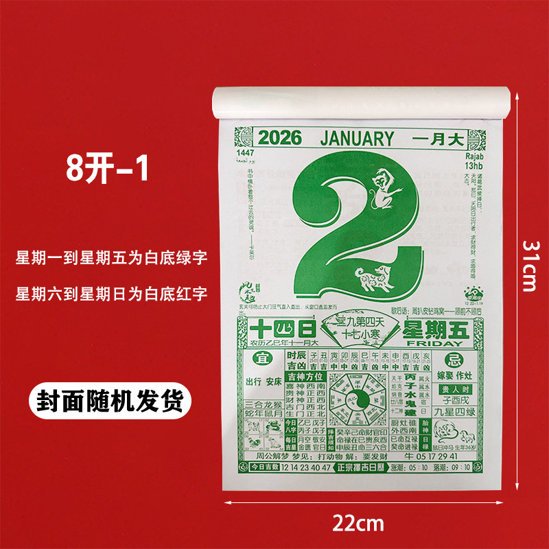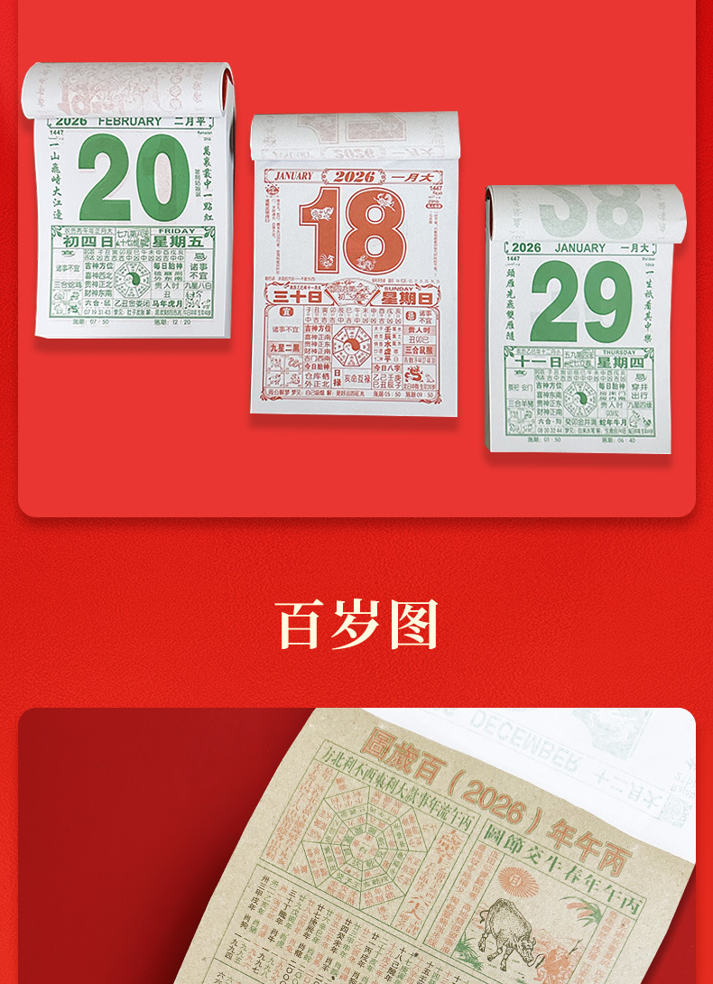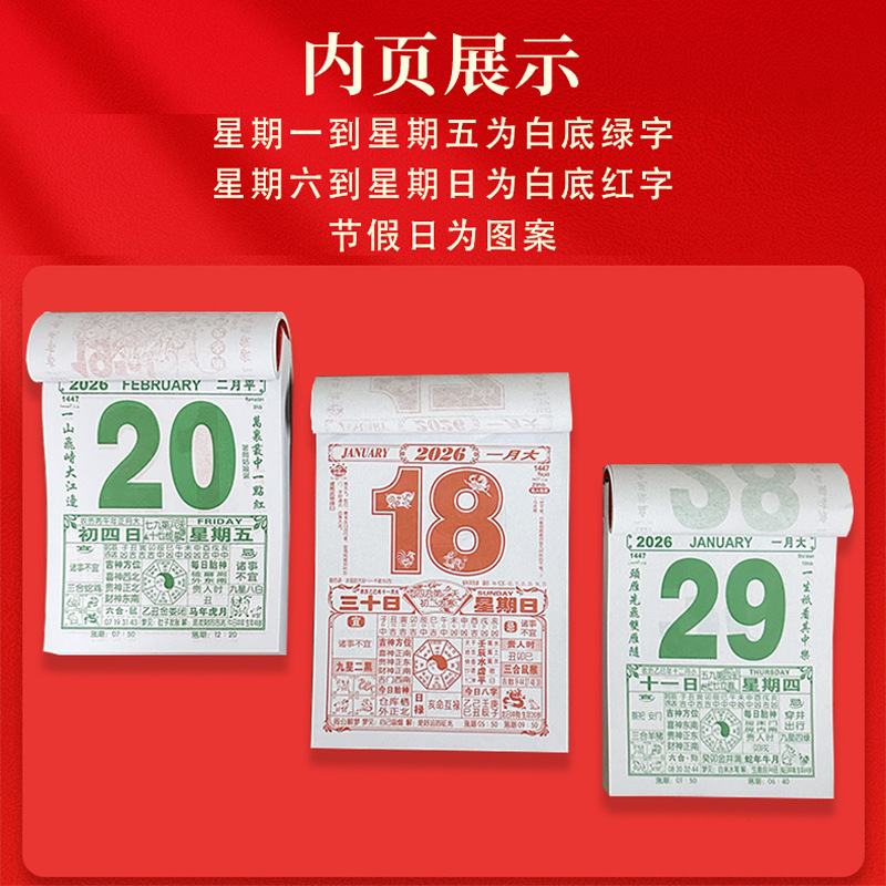 现货2026马年手撕一天一页大号挂墙老人万年历日历挂墙挂历老黄历
