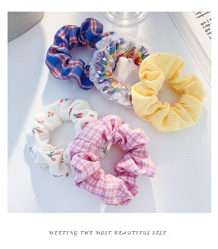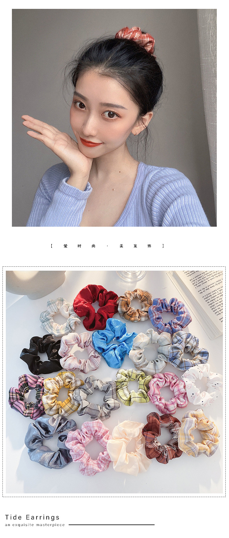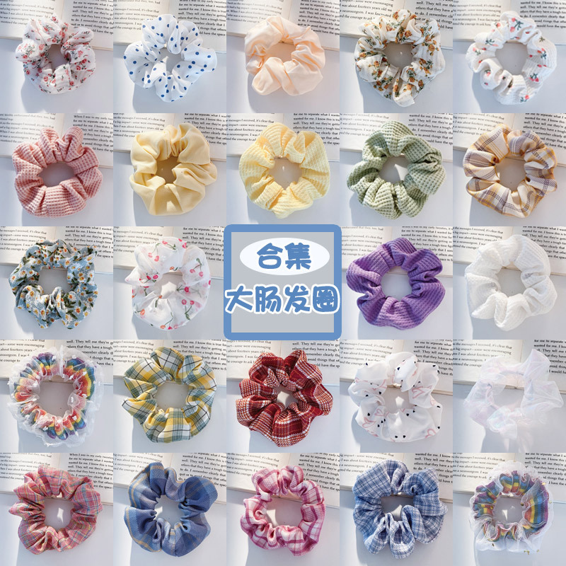 法式布艺格纹碎花大肠发圈女高弹力丸子头大肠圈皮筋头绳发饰批发