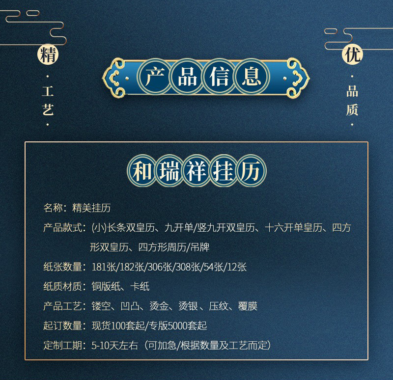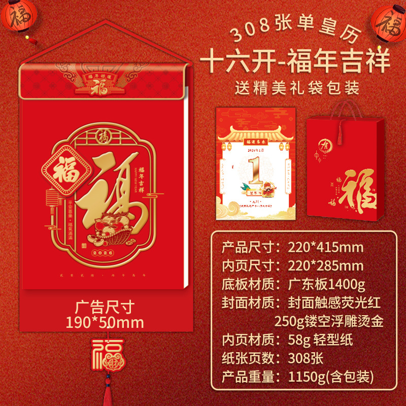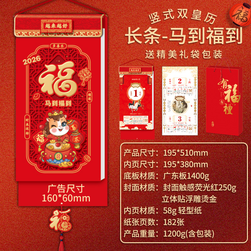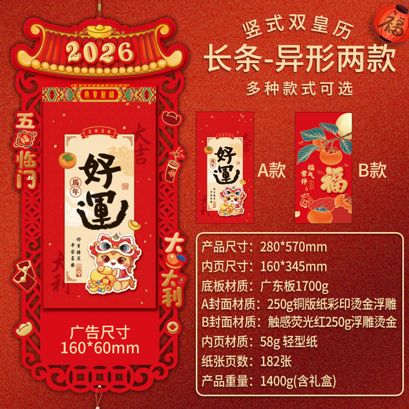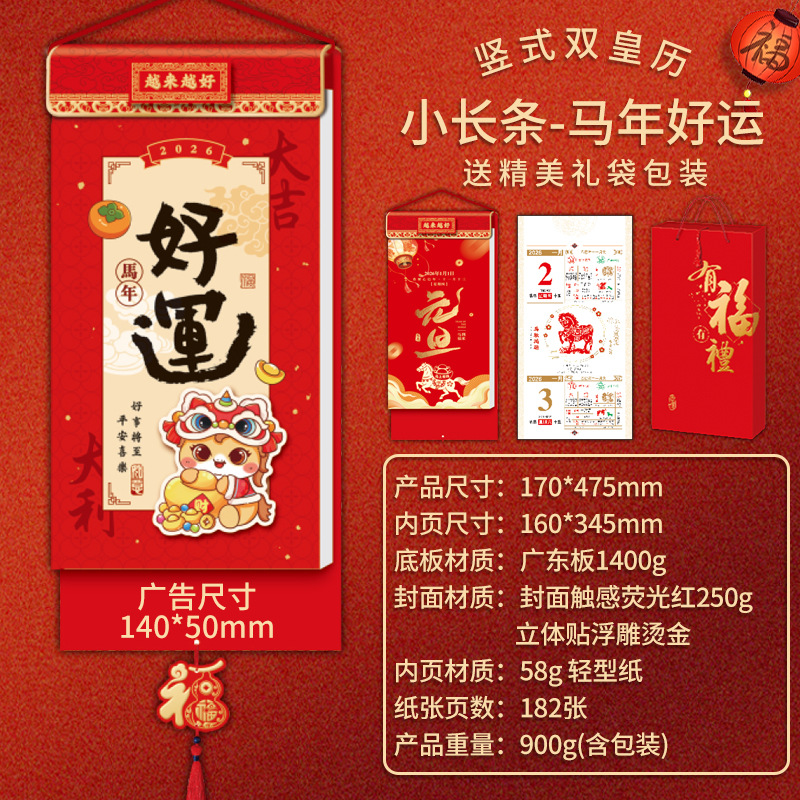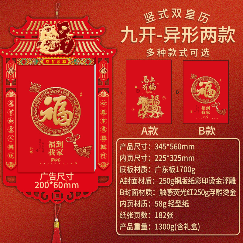 2026马年挂历双皇历多规格烫金logo手撕挂墙月历企业新年礼品日历