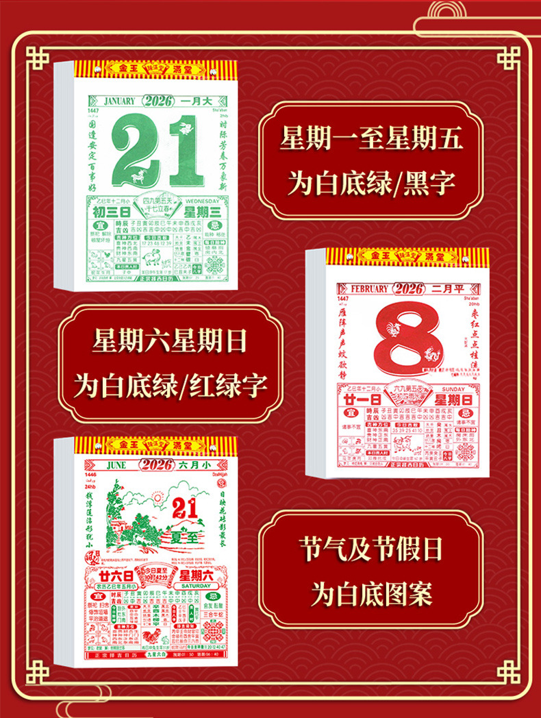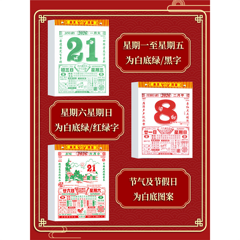 2026年新款老黄历挂历手撕黄历家用挂墙农历年历本日厉马年日历挂