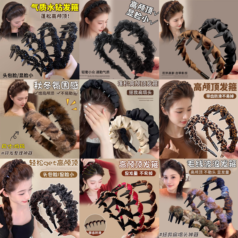 高级感缎面齿梳发箍女夏天高颅顶防滑发卡气质碎发整理压发捆头箍