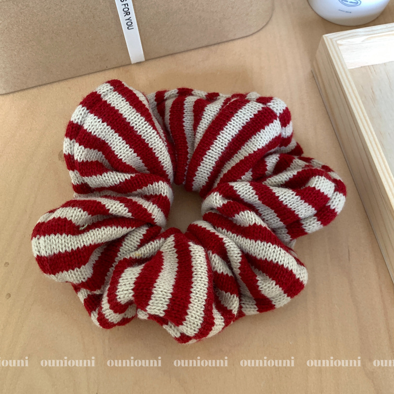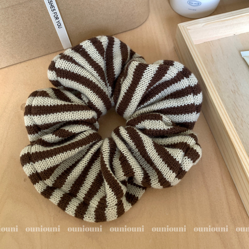 欧尼的针织条纹~温暖毛线大肠发圈女慵懒风气质大号发绳发饰头饰