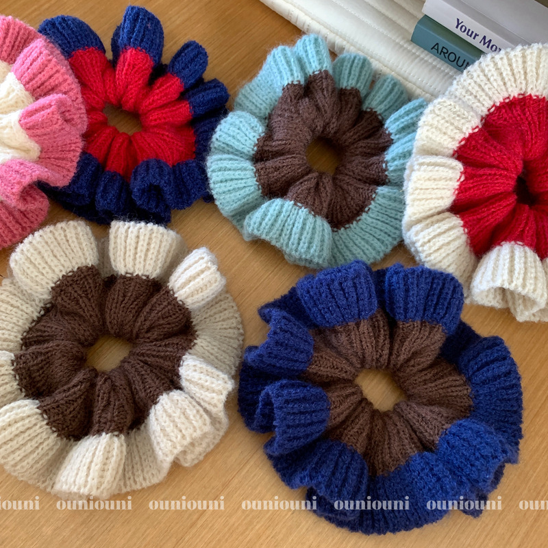秋冬撞色毛线发绳大肠圈甜美气质头绳扎马尾皮筋2025新款头花发饰