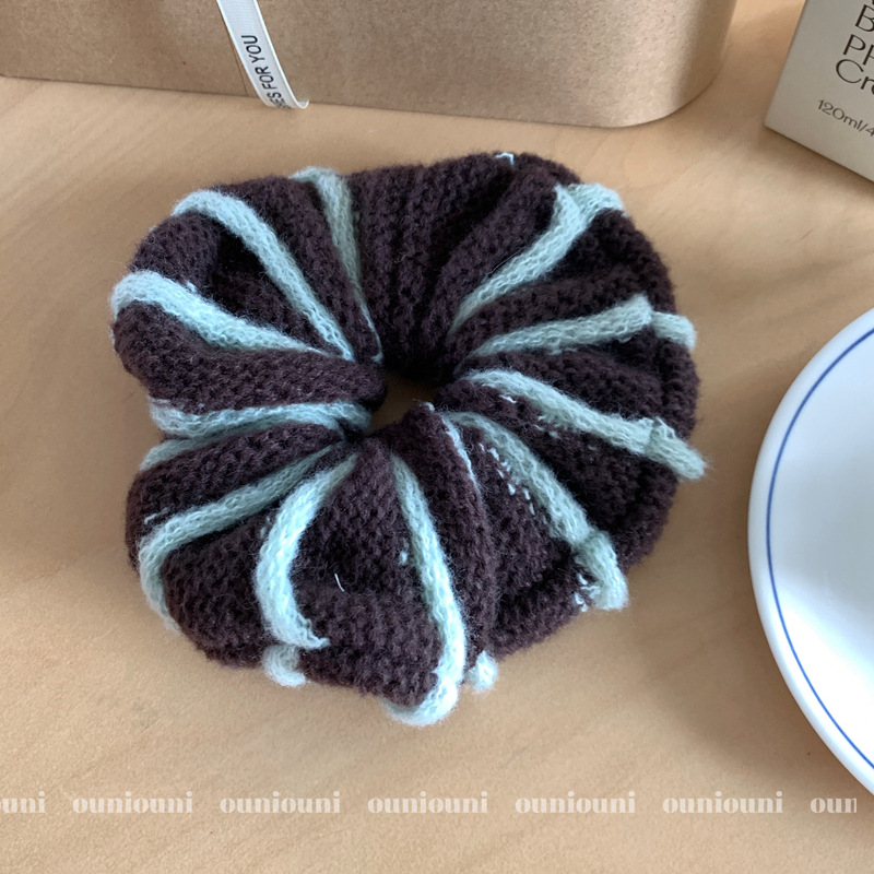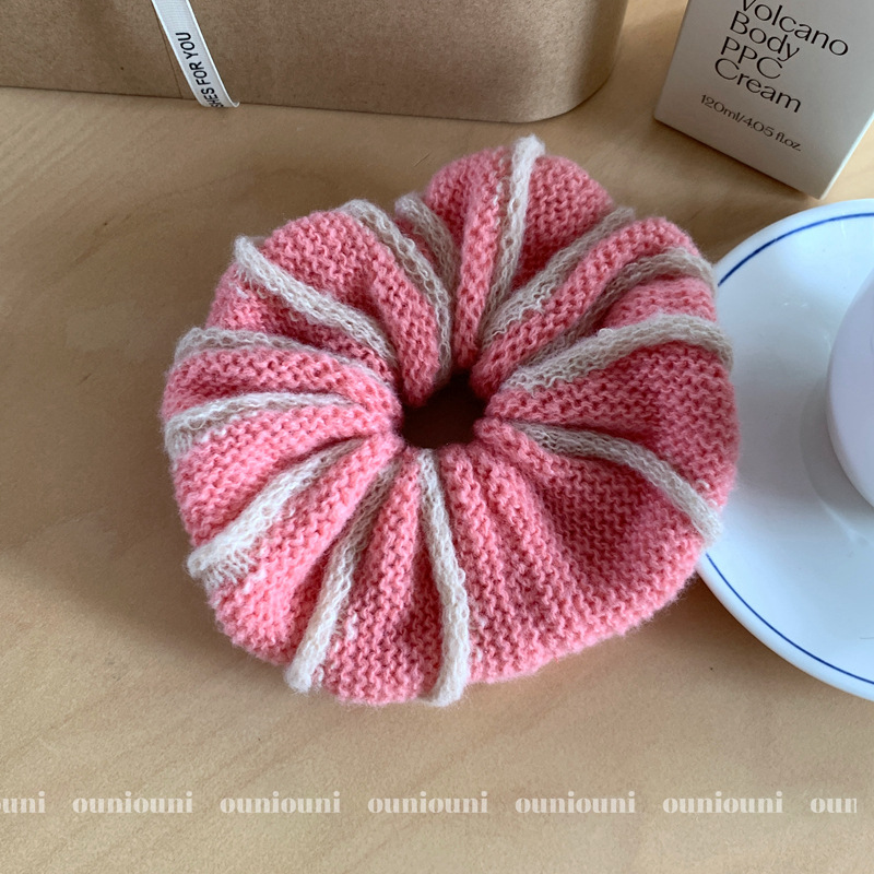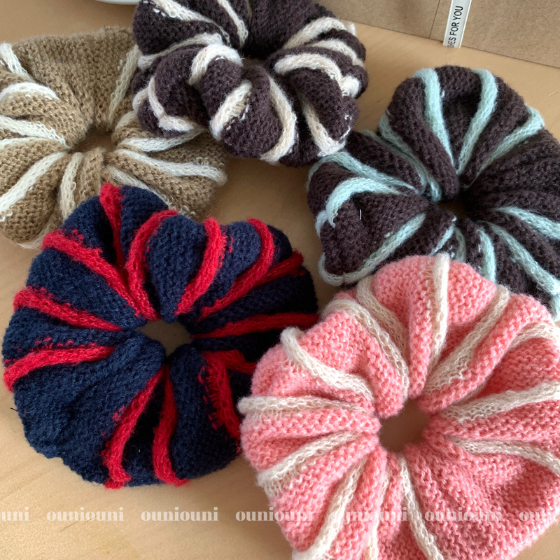 时尚针织条纹大肠圈气质洋气百搭早秋高级感发绳ins时髦百搭发圈