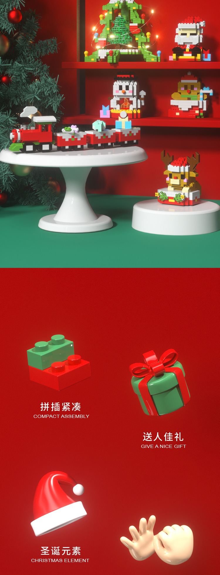 兼容乐高小颗粒圣诞积木套装儿童拼装圣诞树玩具圣诞老人跨境批发