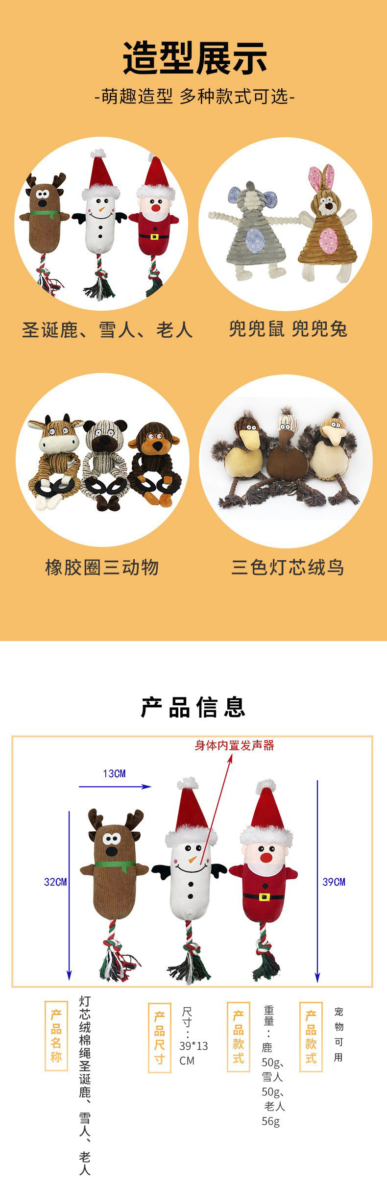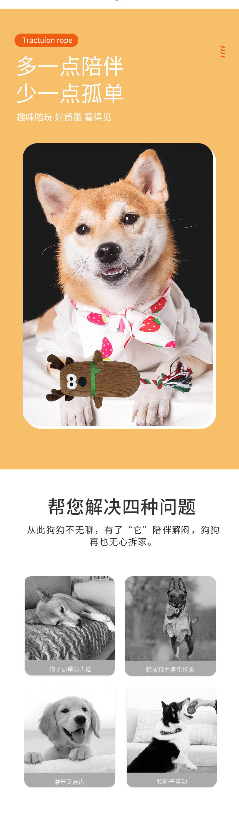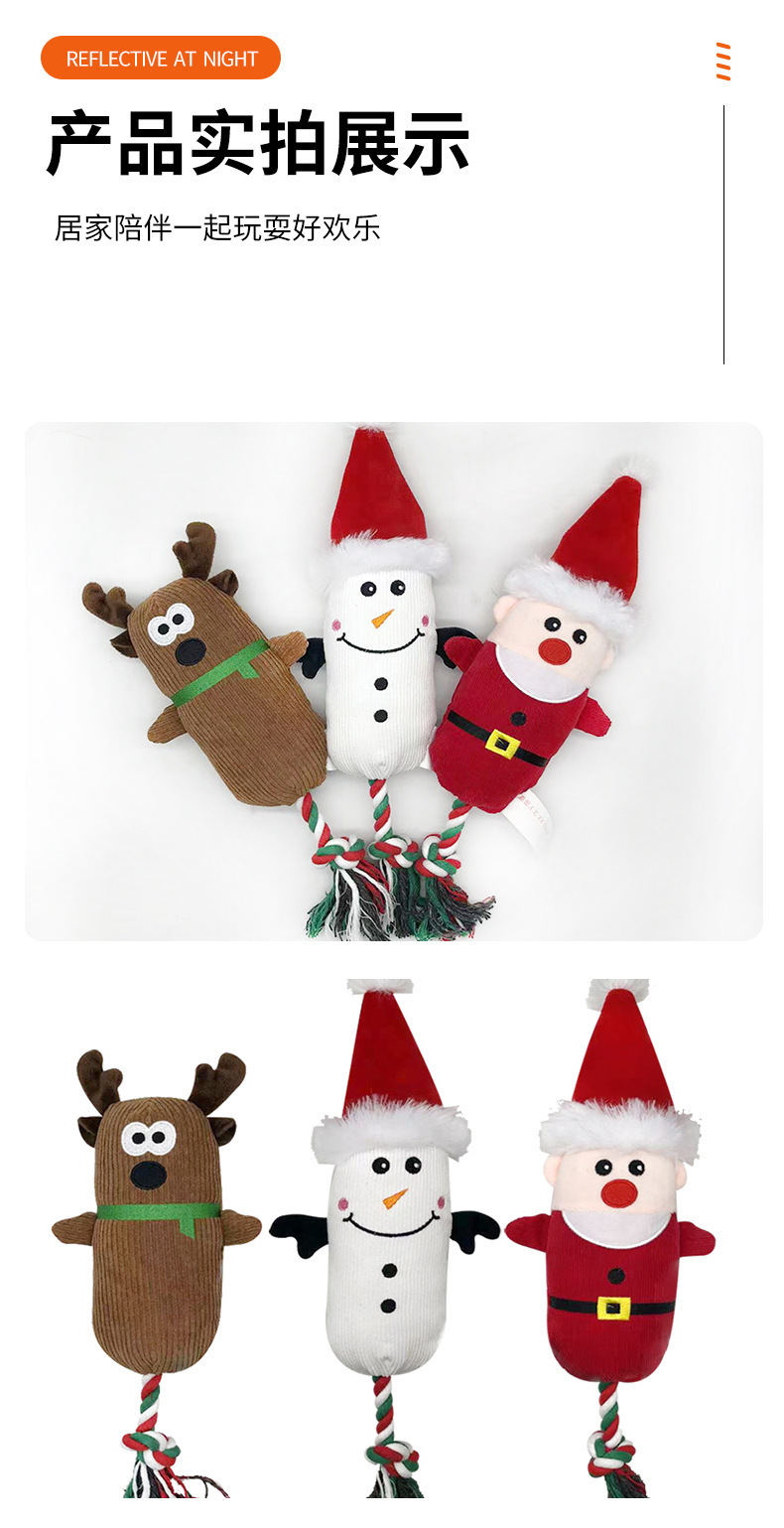 狗狗绳结发声耐咬磨牙训练玩具灯芯绒棉绳圣诞鹿宠物玩具趣味定制