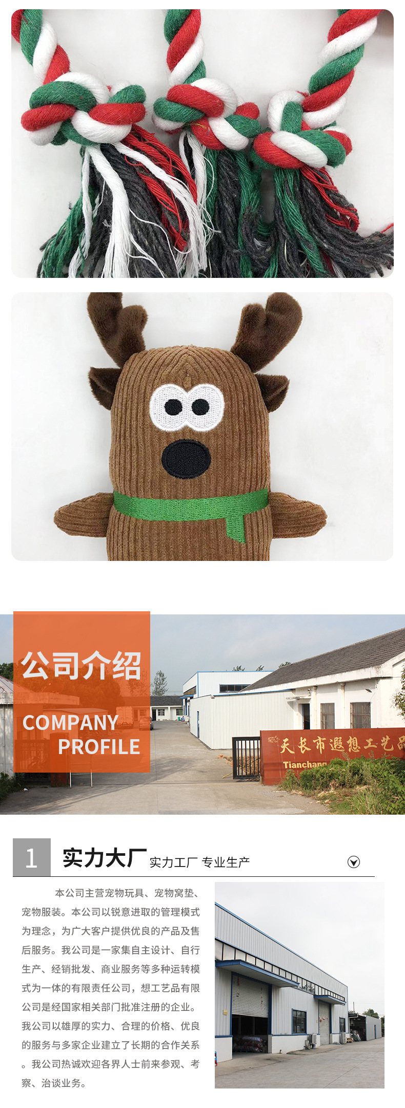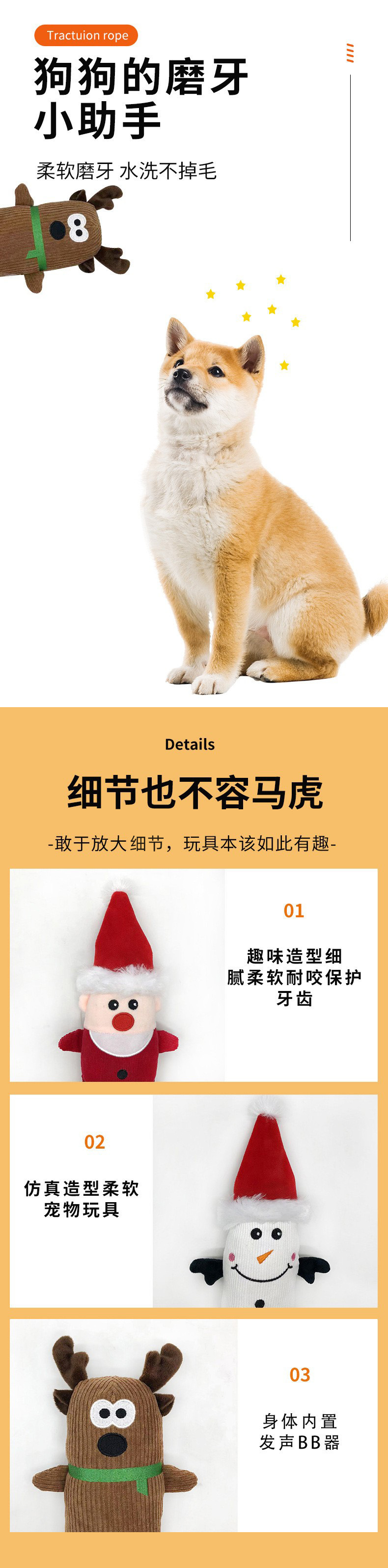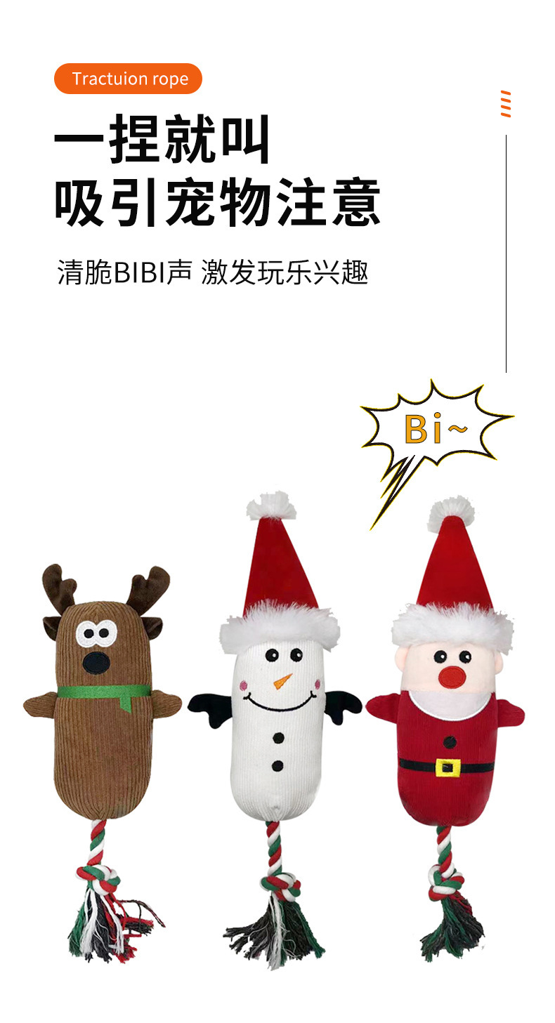 狗狗绳结发声耐咬磨牙训练玩具灯芯绒棉绳圣诞鹿宠物玩具趣味定制