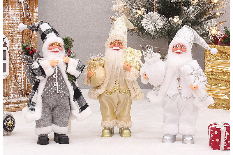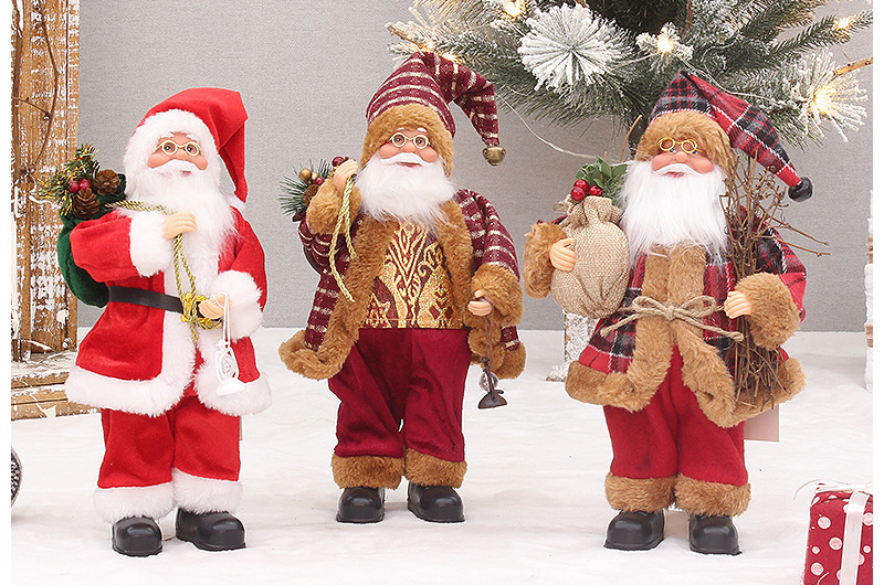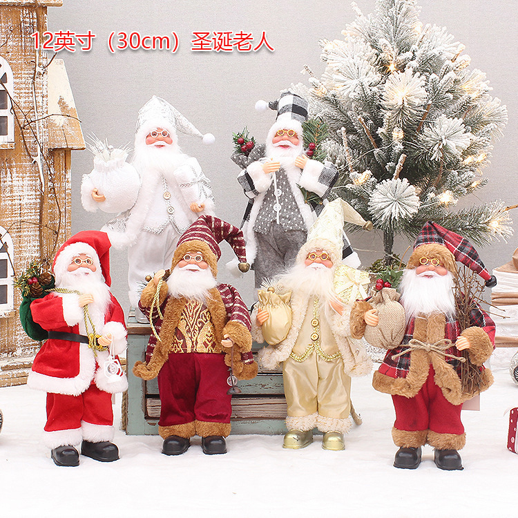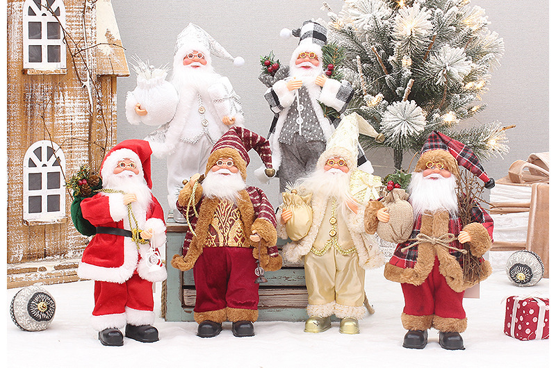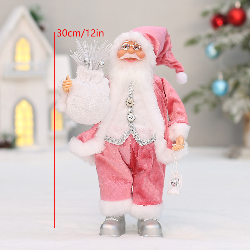 跨境专供30cm站姿圣诞老人圣诞节装饰品粉色红色圣诞公仔玩偶定制