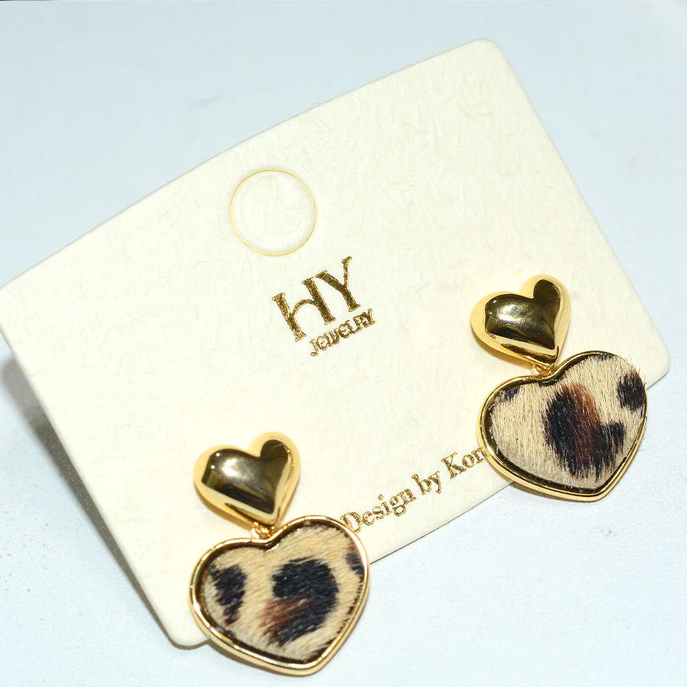 2025秋冬新款心形豹纹耳钉女S925银针小众设计轻奢精致高级感耳饰