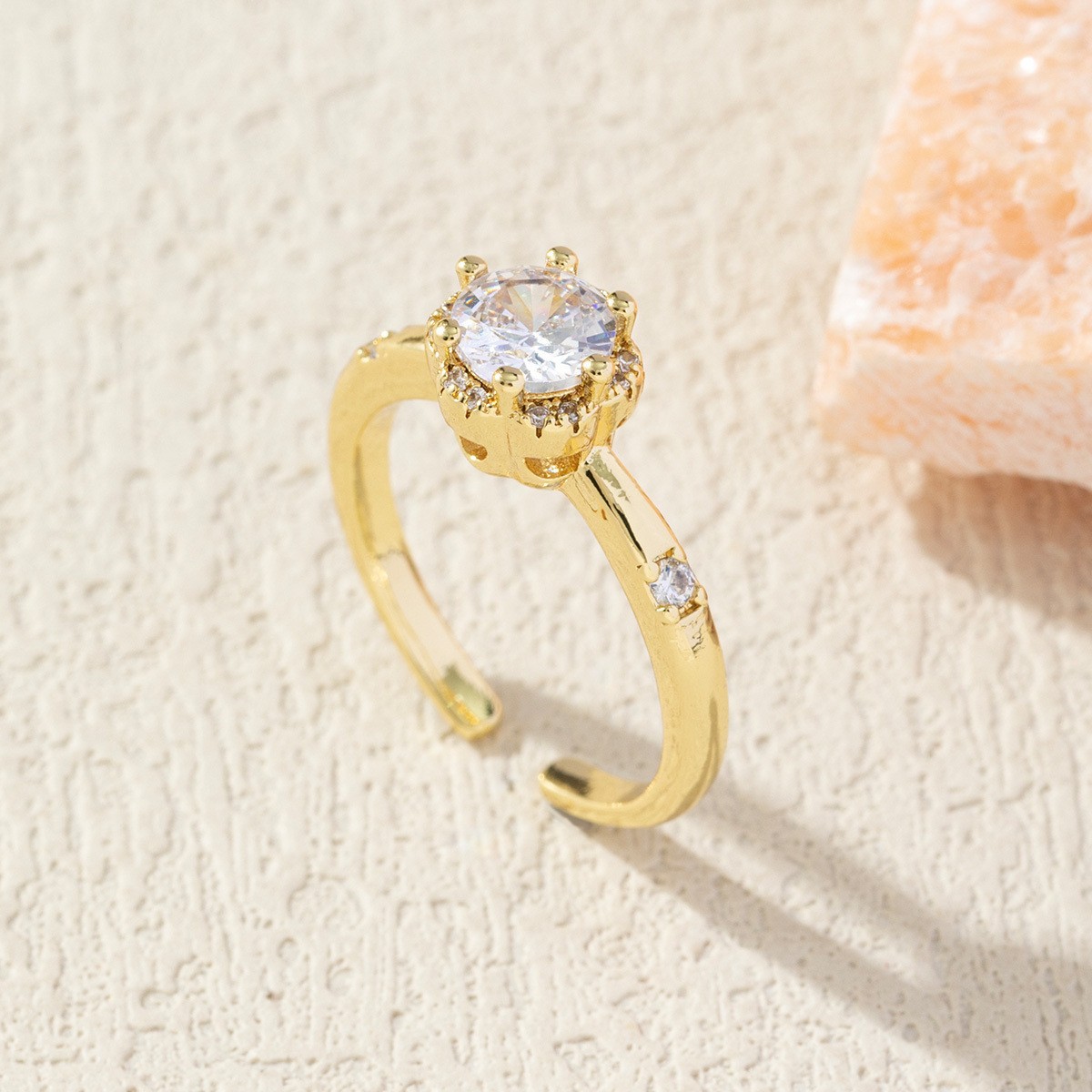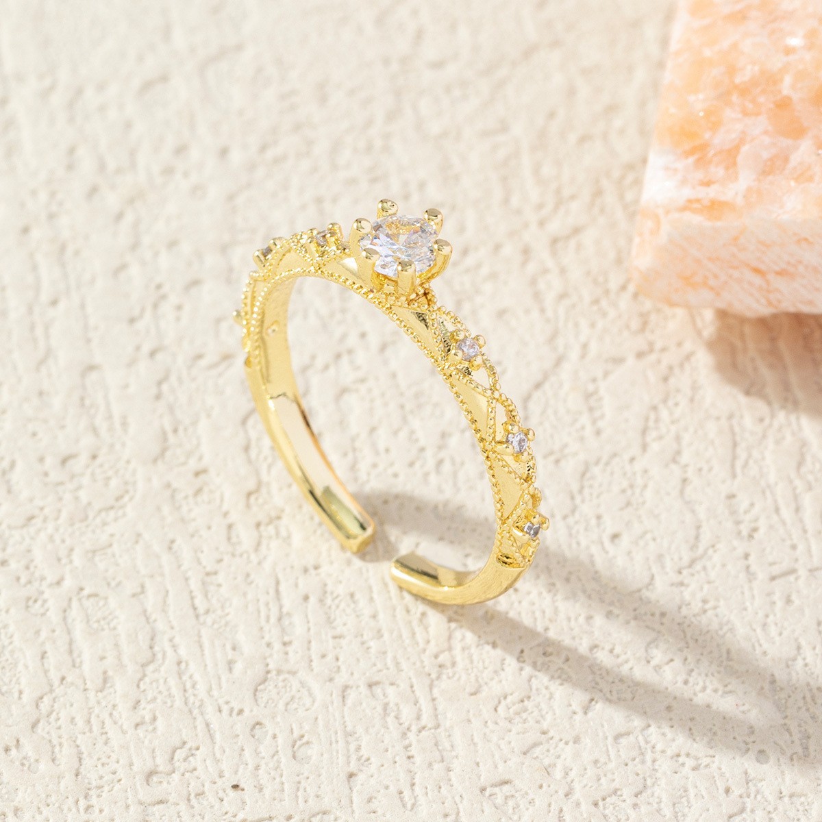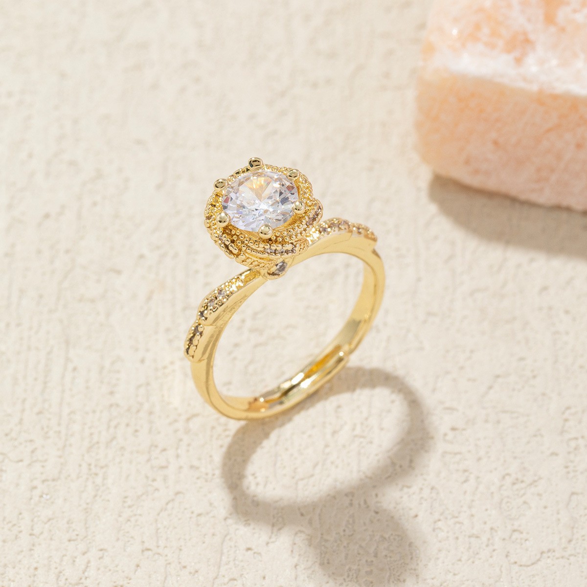 经典复古结婚求婚钻戒女铜镀金镶锆韩式精致高级感可调节开口戒指