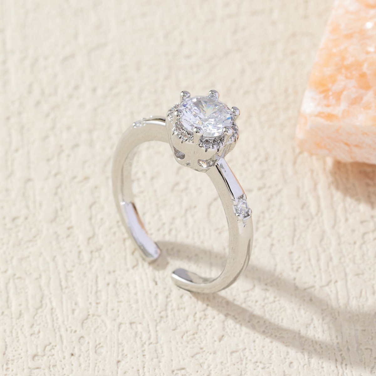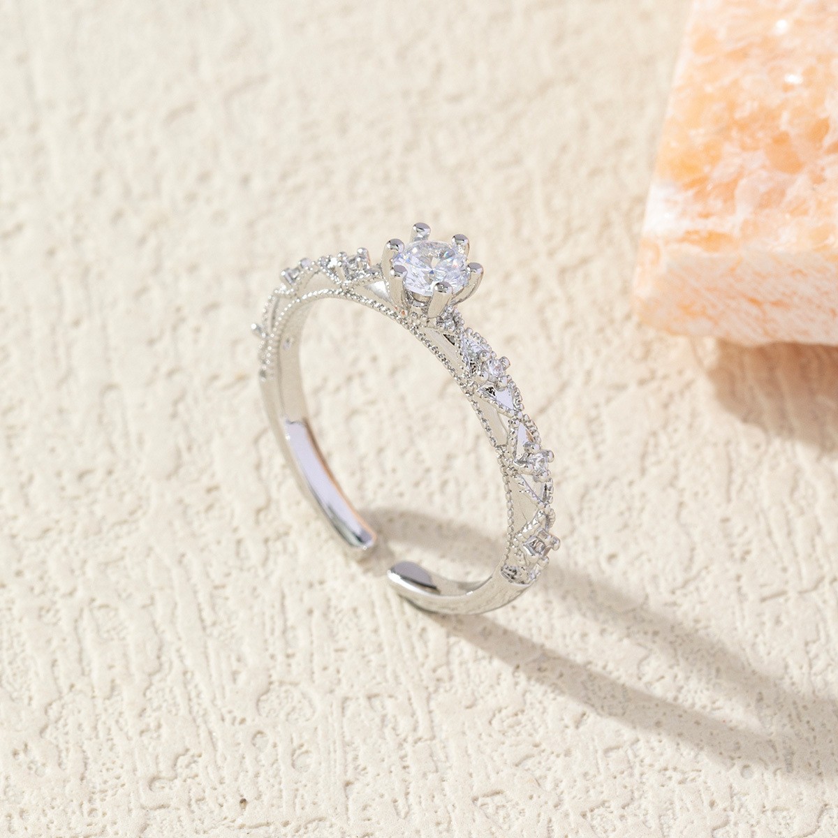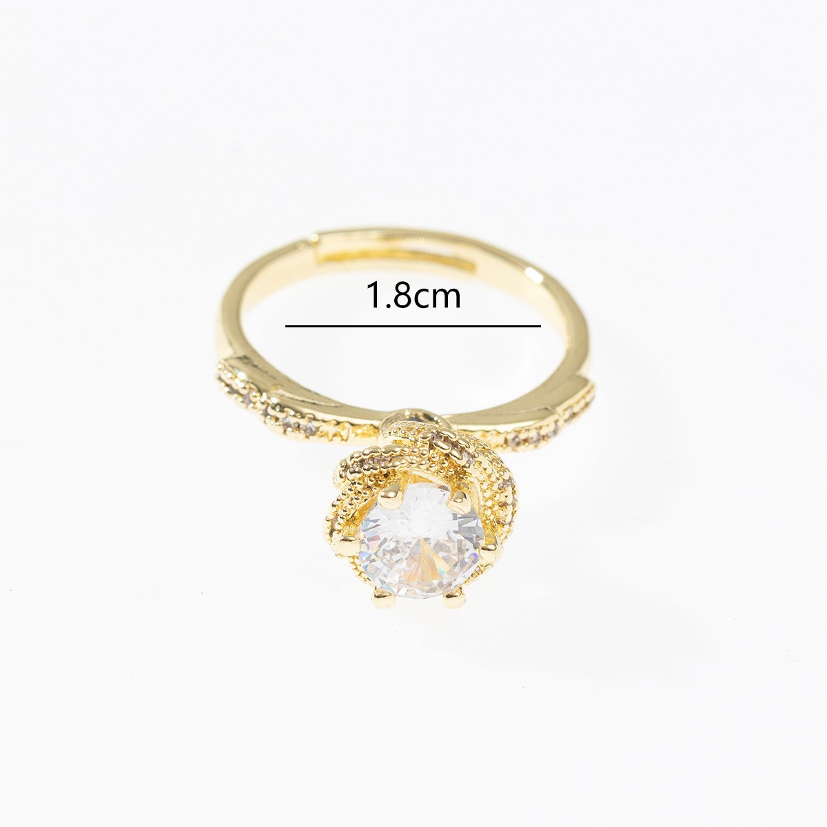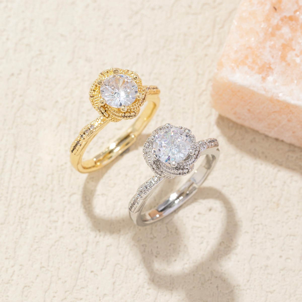 经典复古结婚求婚钻戒女铜镀金镶锆韩式精致高级感可调节开口戒指