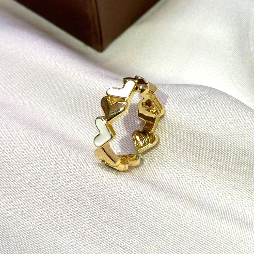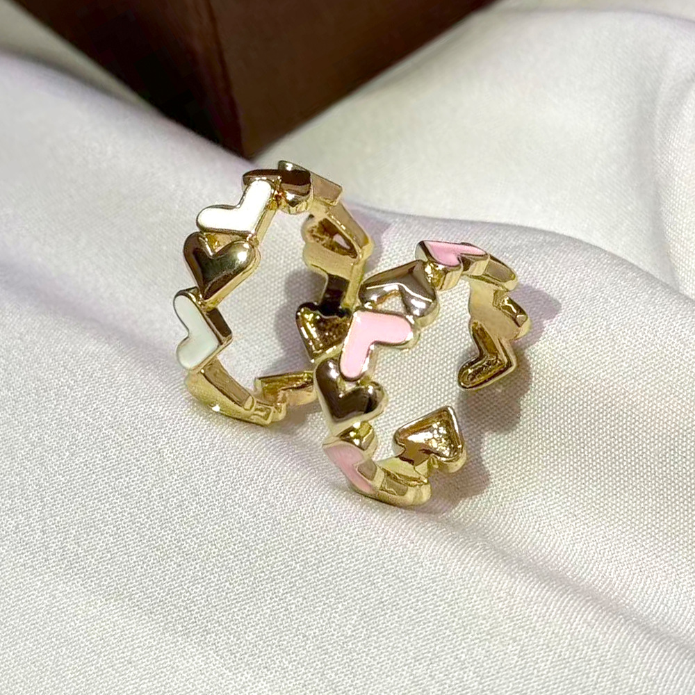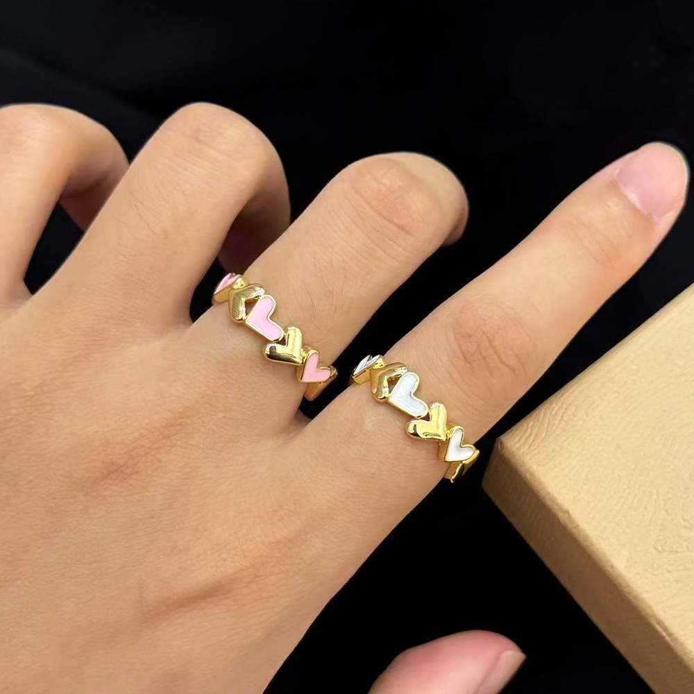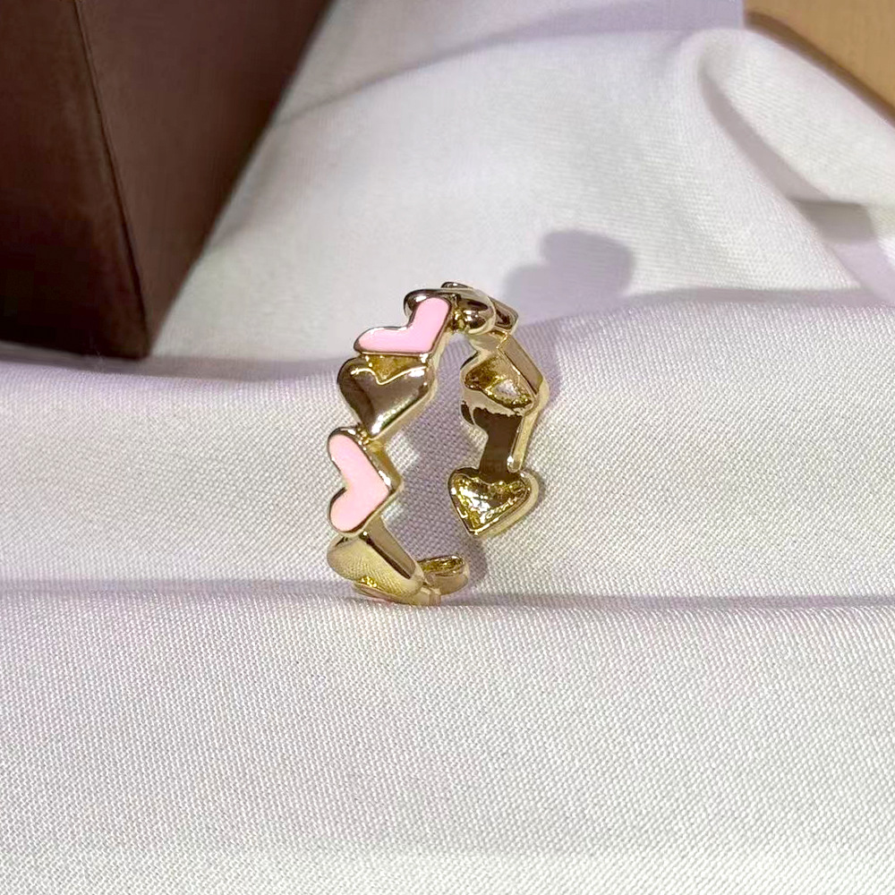 铜镀金小红书爆款在逃芭比粉金戒指女拉丝珐琅心形开口可调节指环