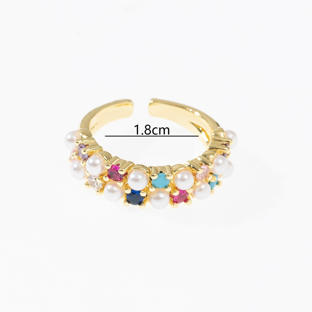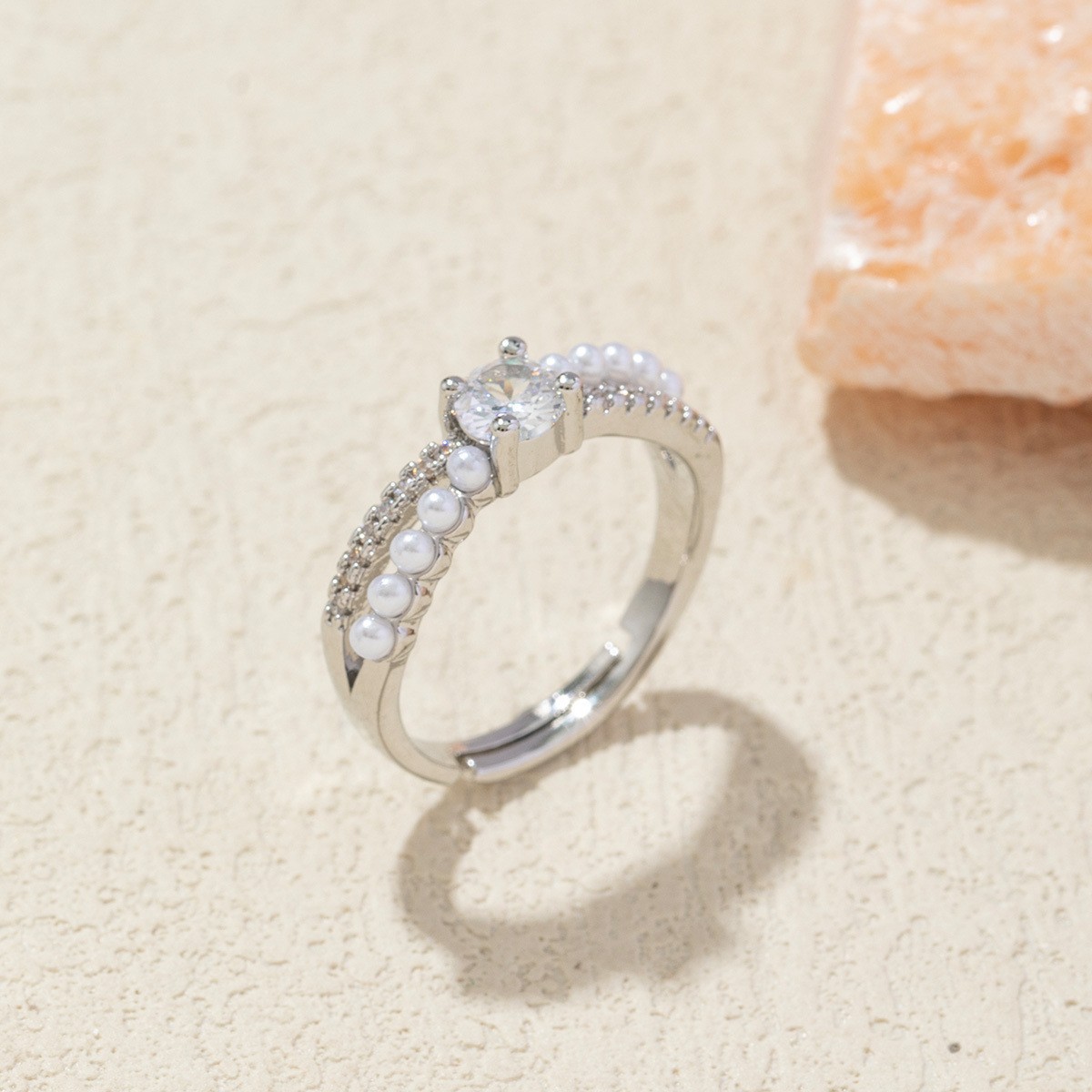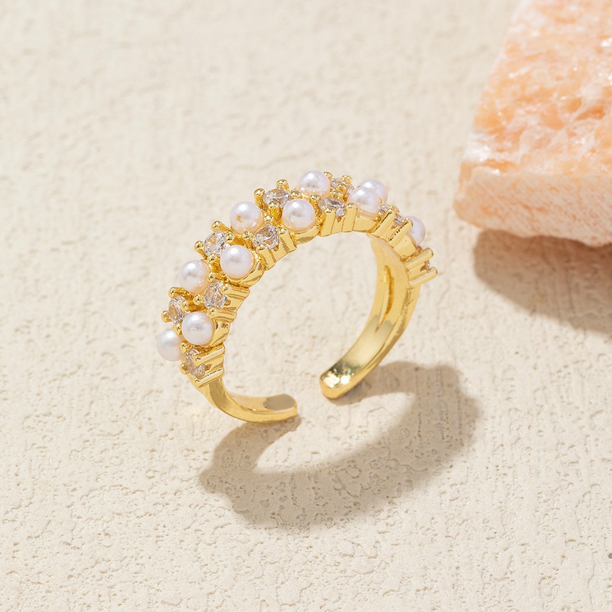 韩式复古珍珠锆石戒指女铜镀金小众设计感时尚精致高级感开口指环