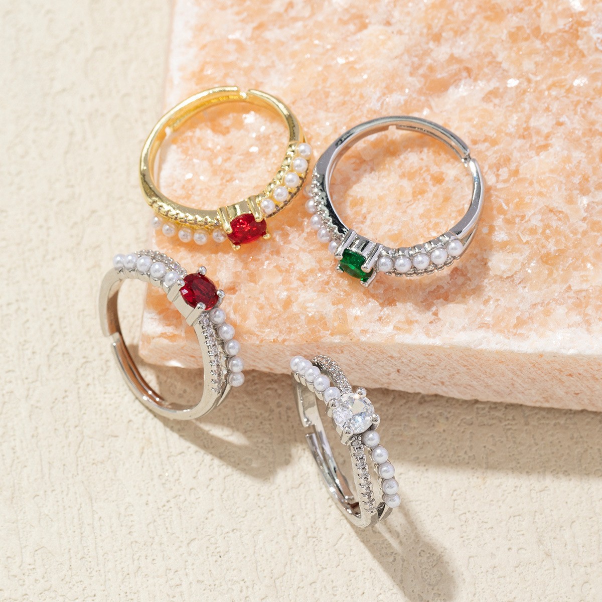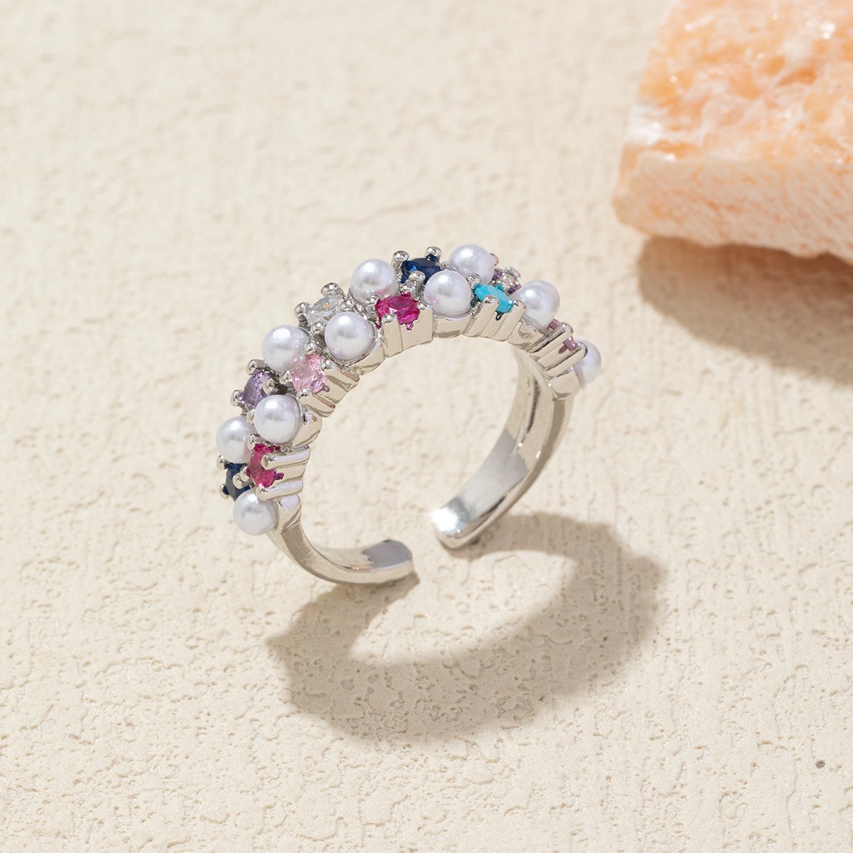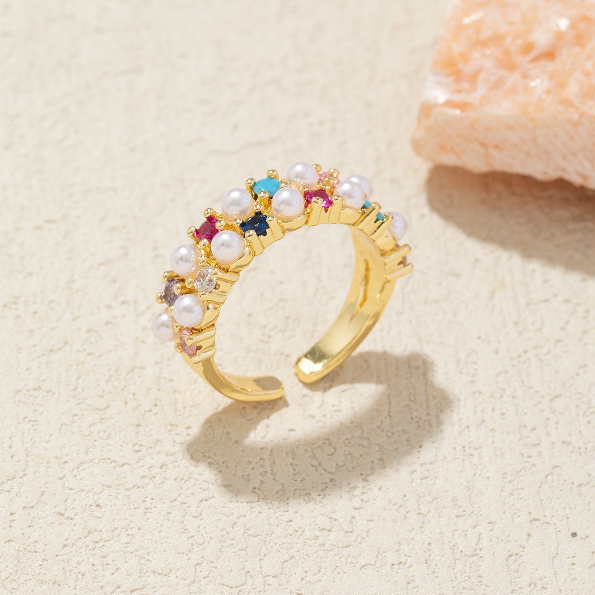 韩式复古珍珠锆石戒指女铜镀金小众设计感时尚精致高级感开口指环