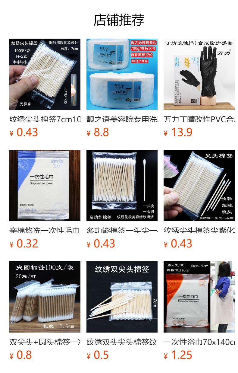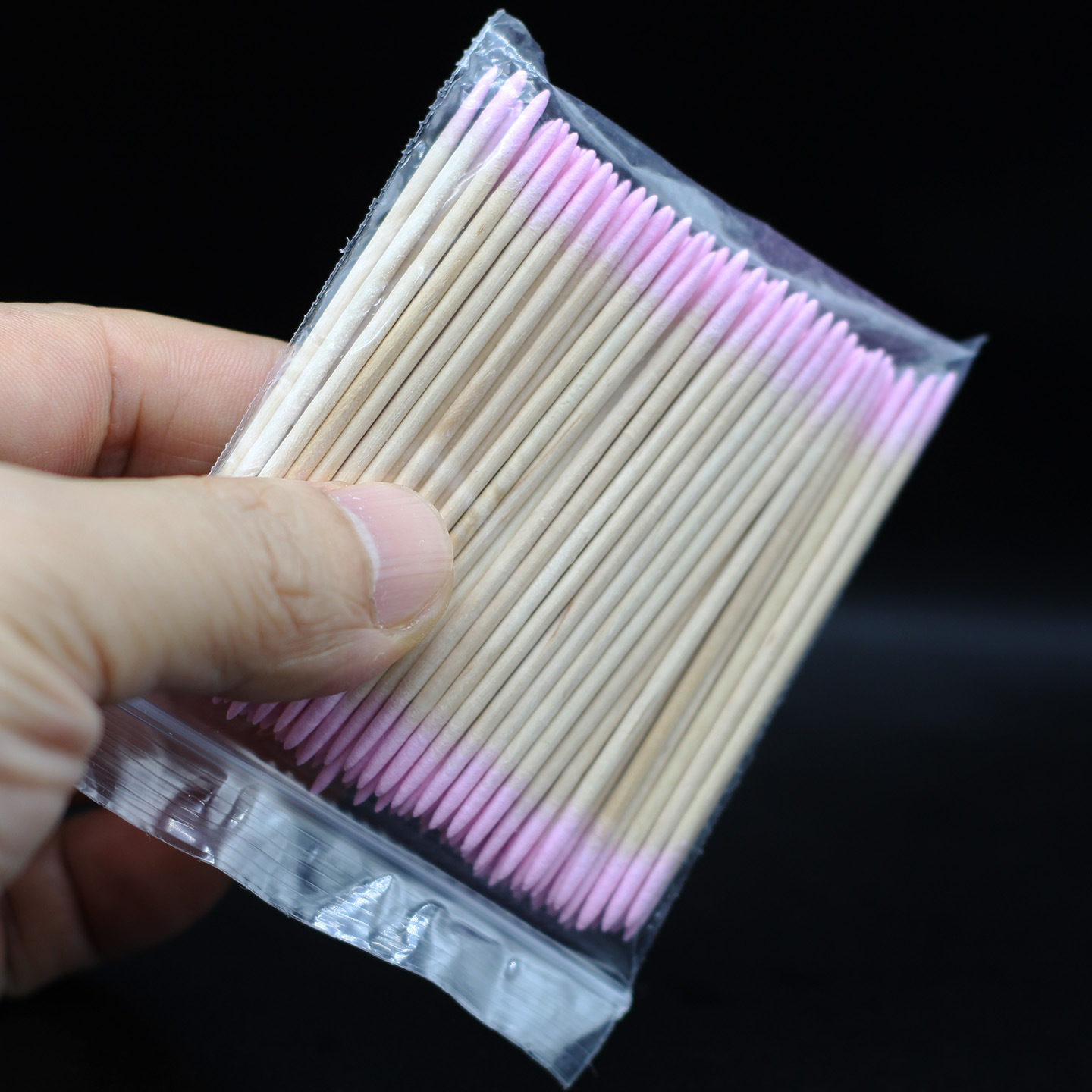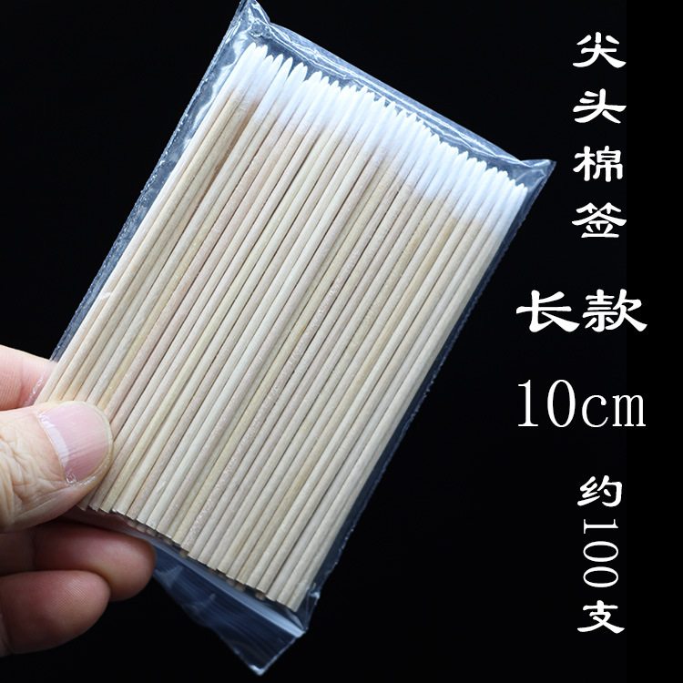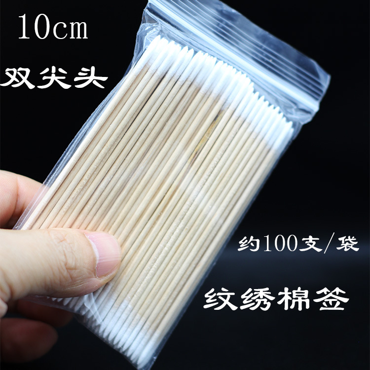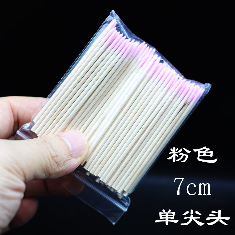 纹绣棉签粉色双尖头棉棒7cm100支多功能修改眉头眼线牙签细小美甲