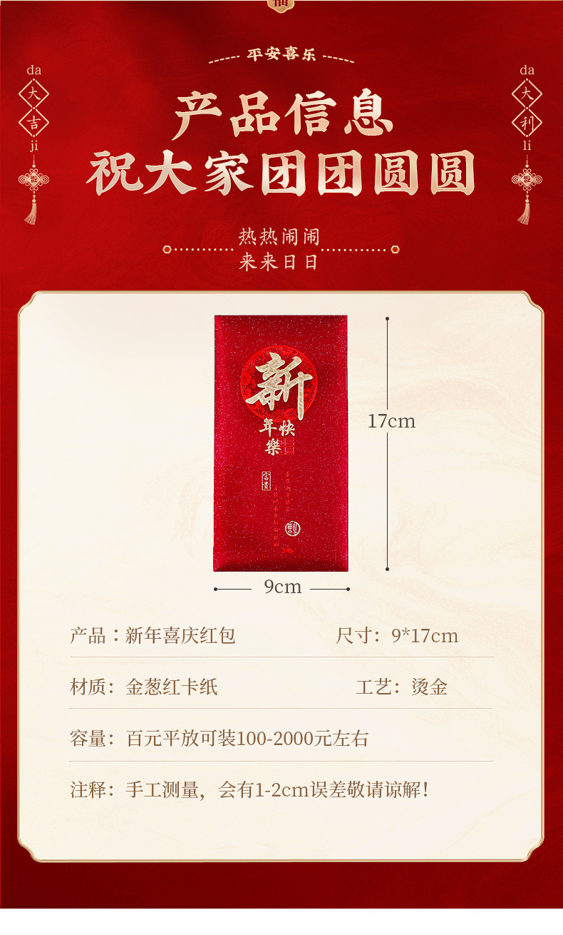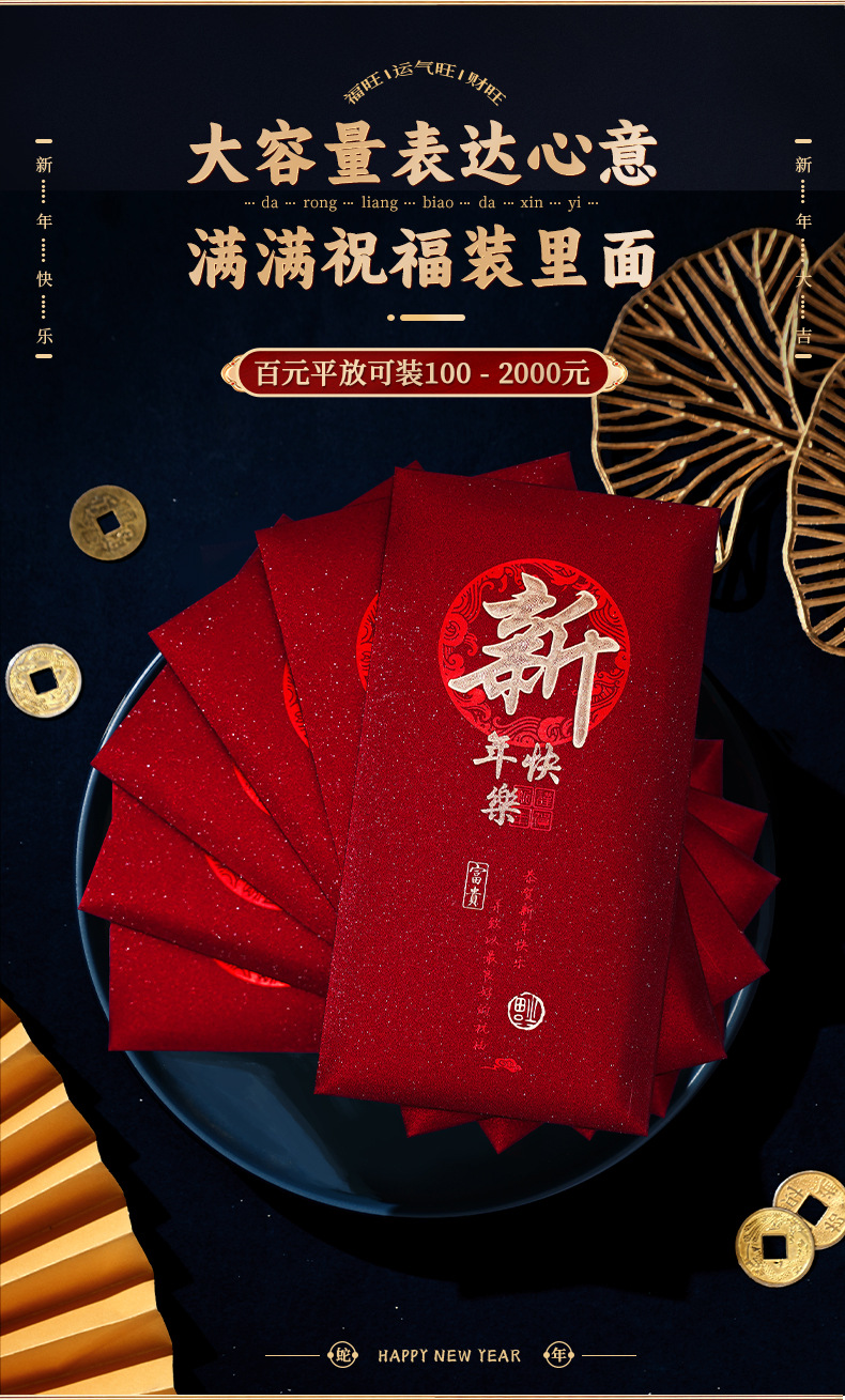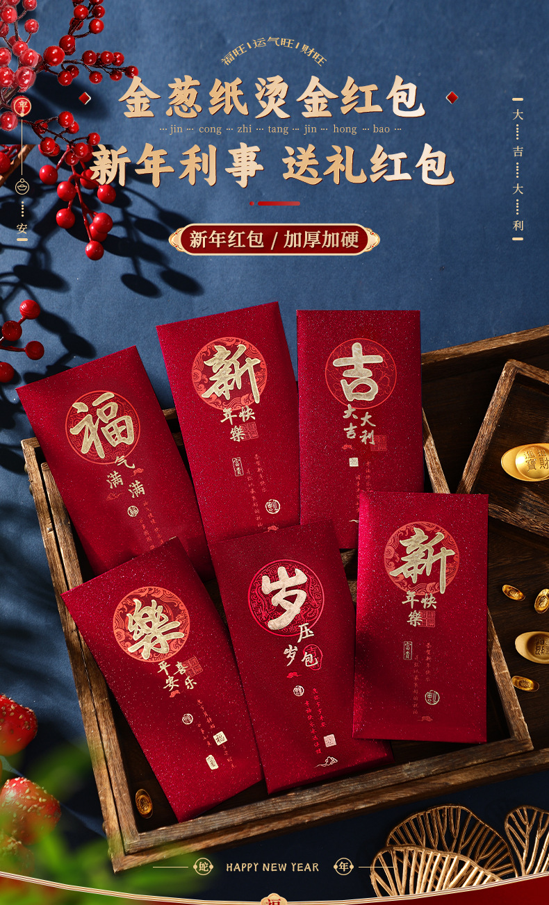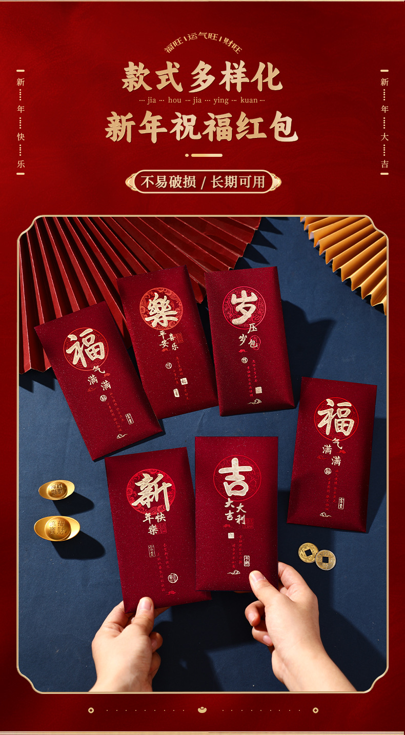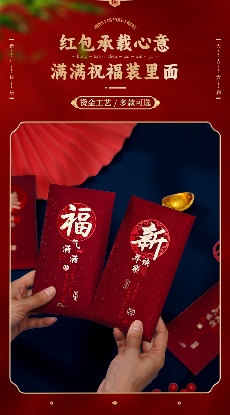 2026新年红包马年利是封磨砂春节压岁烫金通用千元大吉大利红包袋