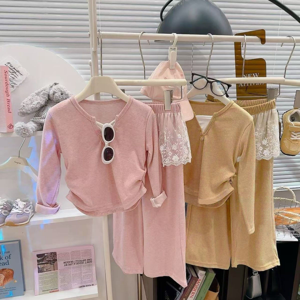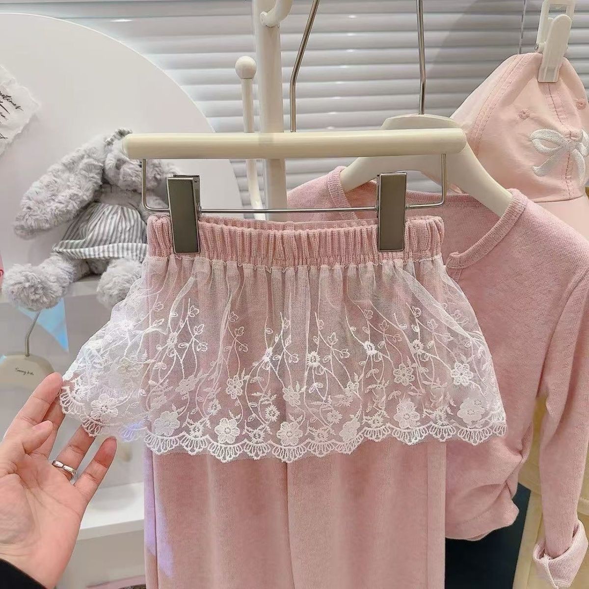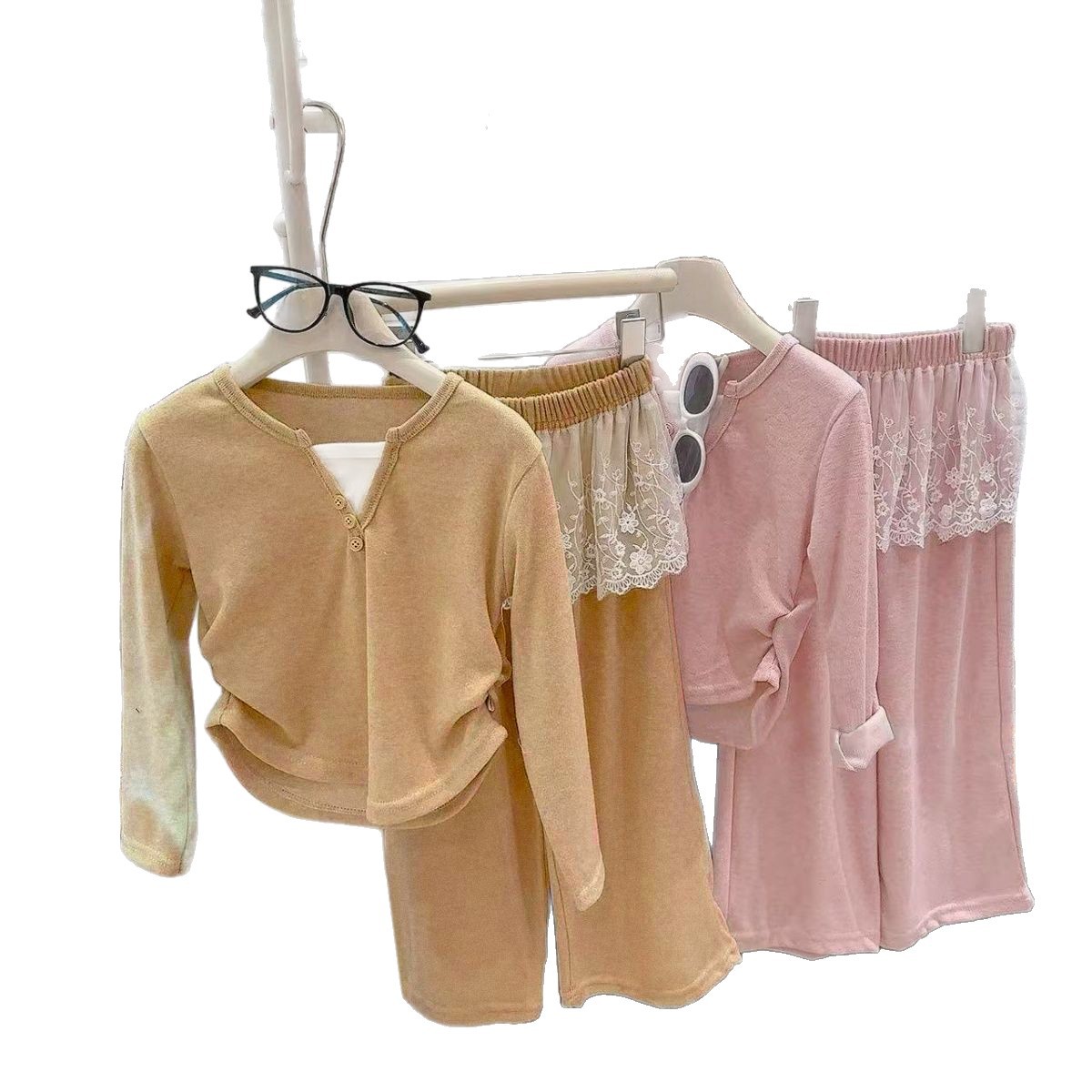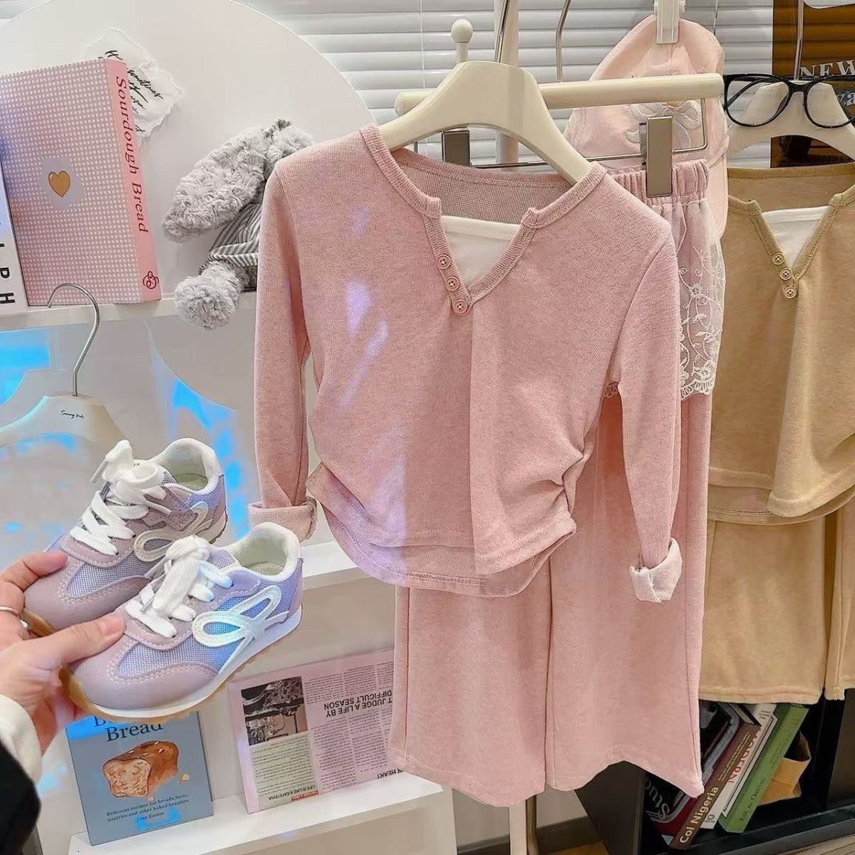 2025新款儿童女童春秋套装宝宝韩系假两件连帽打底衫阔腿裤两件套