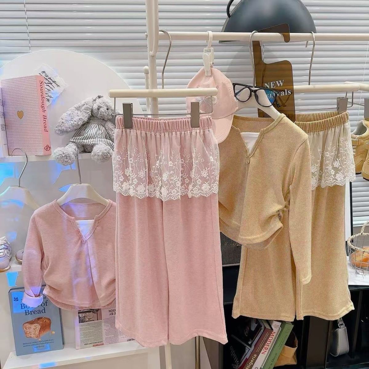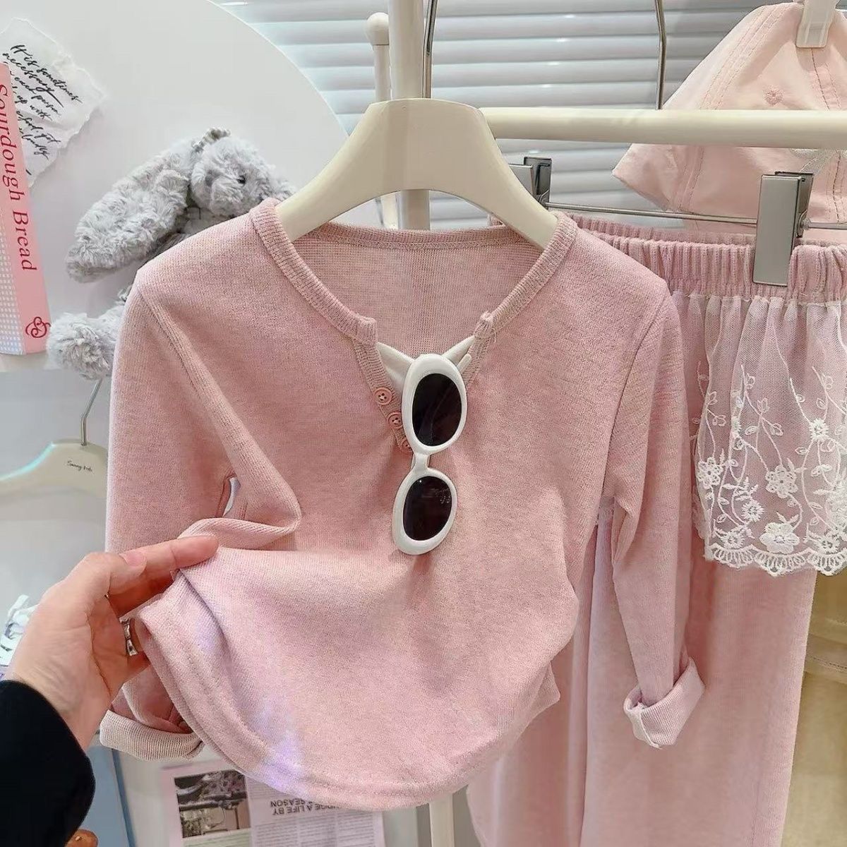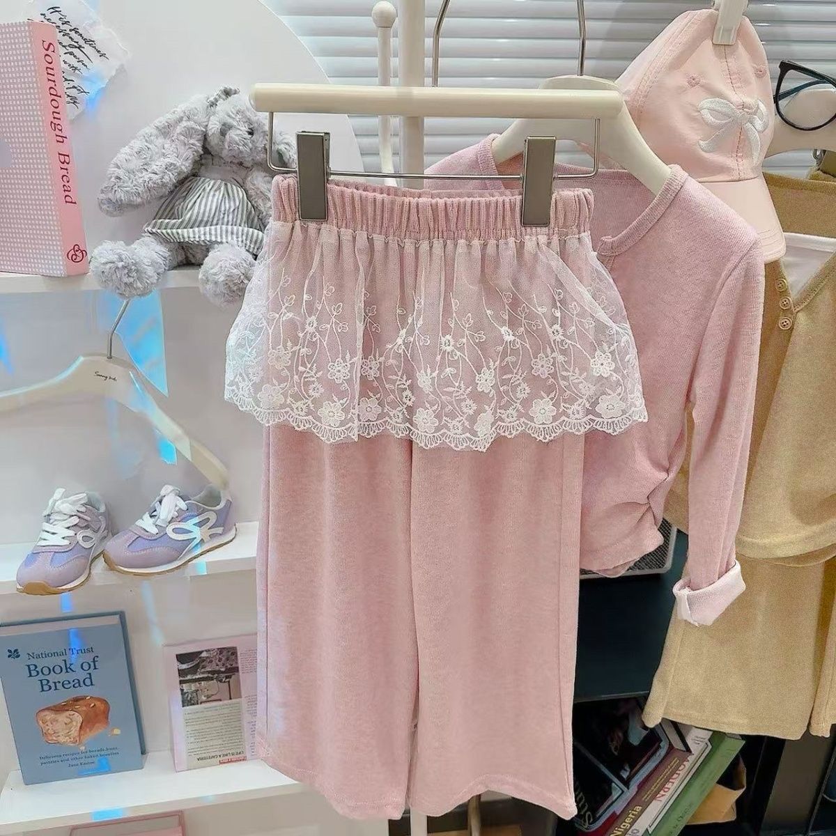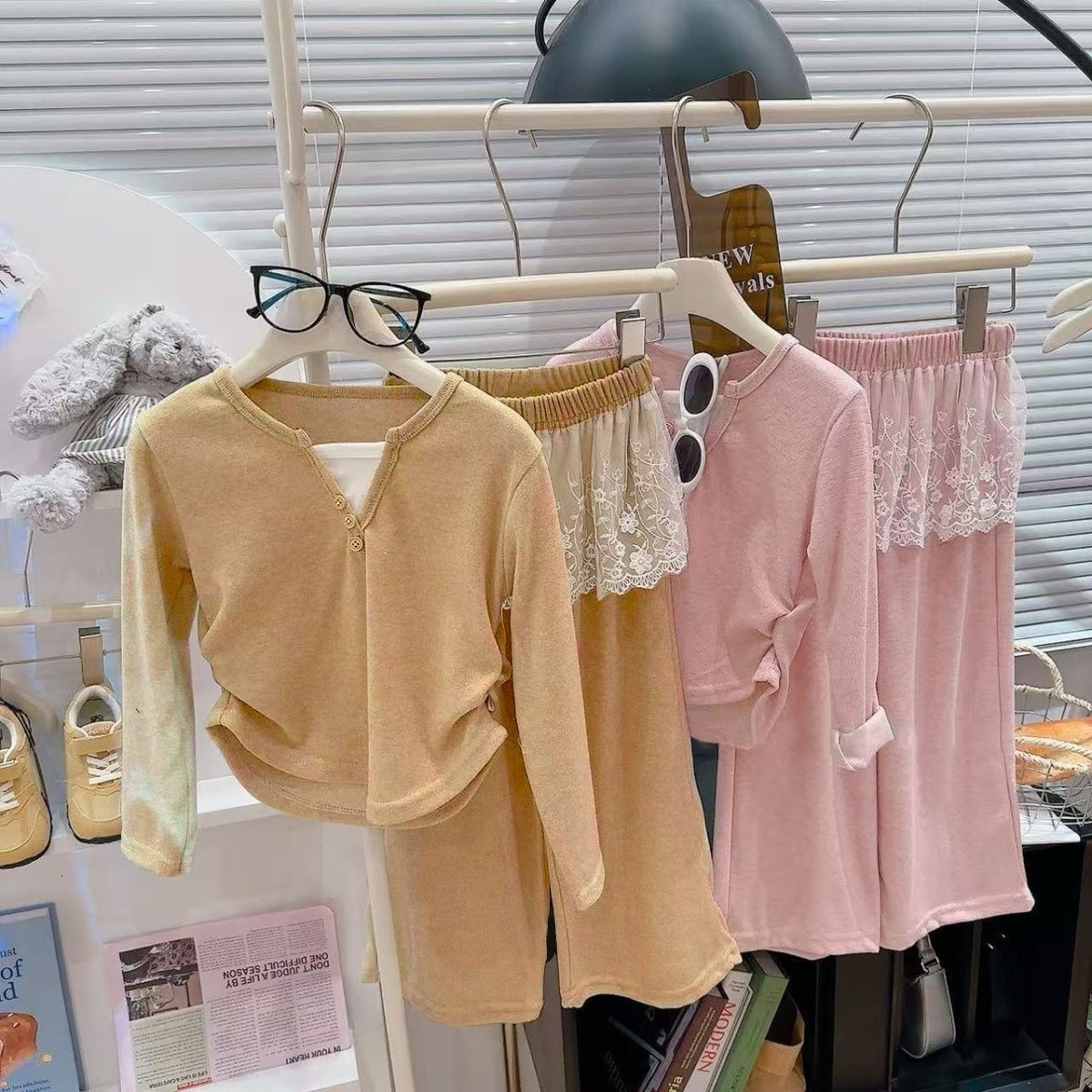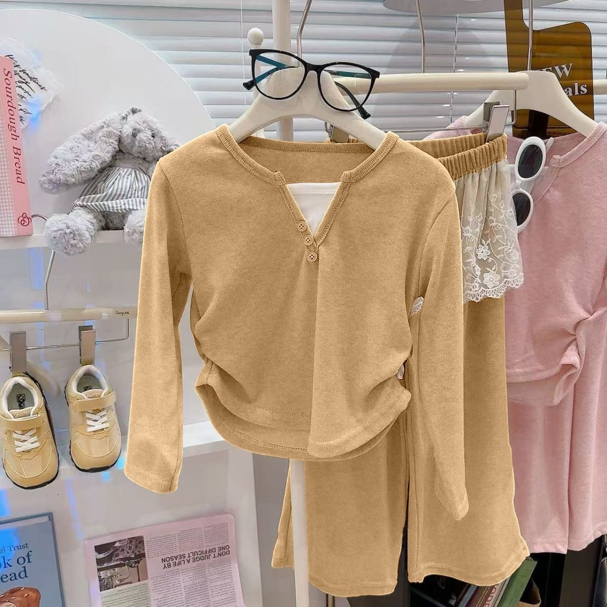 2025新款儿童女童春秋套装宝宝韩系假两件连帽打底衫阔腿裤两件套