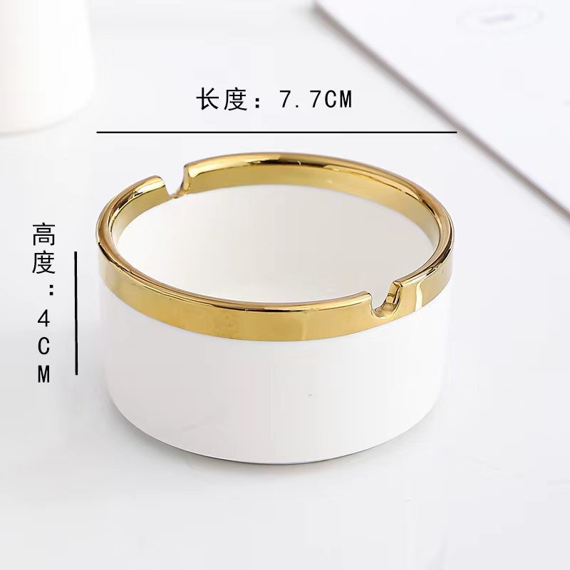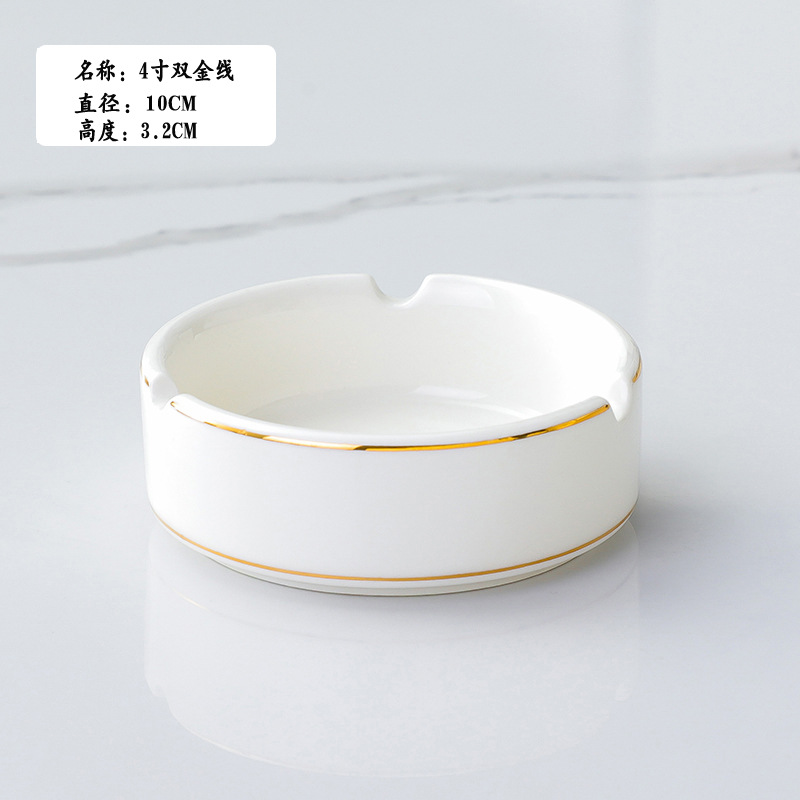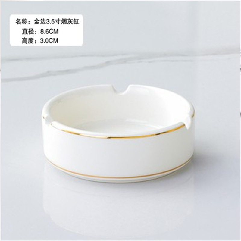 酒店宾馆纯白色烟灰缸金边陶瓷烟盅餐厅宾馆饭店烟灰缸 支持logo