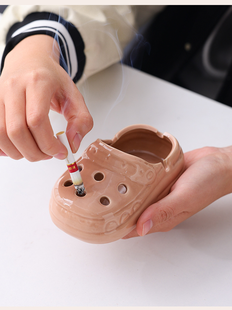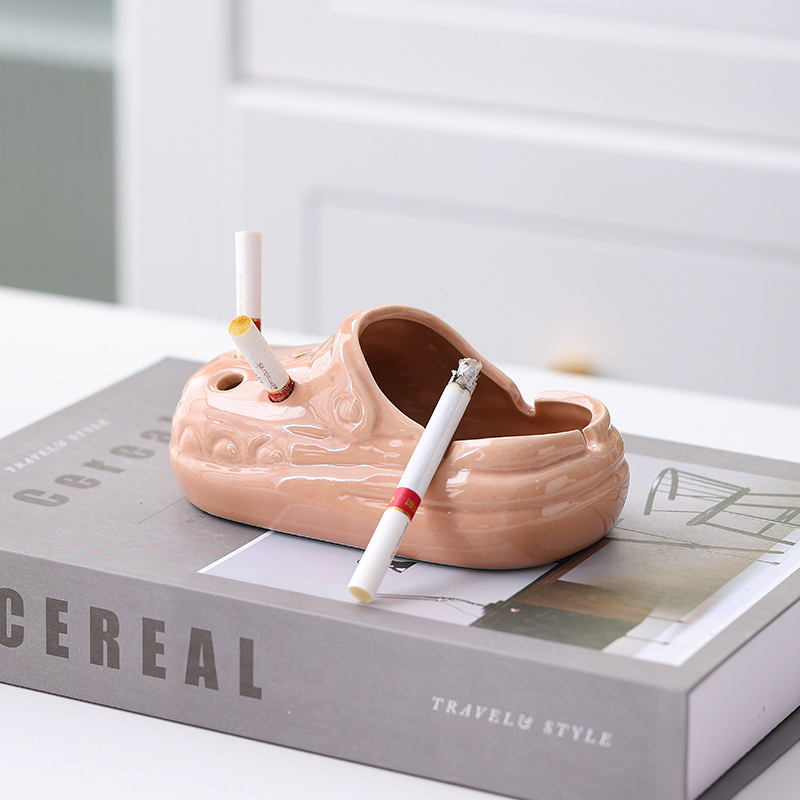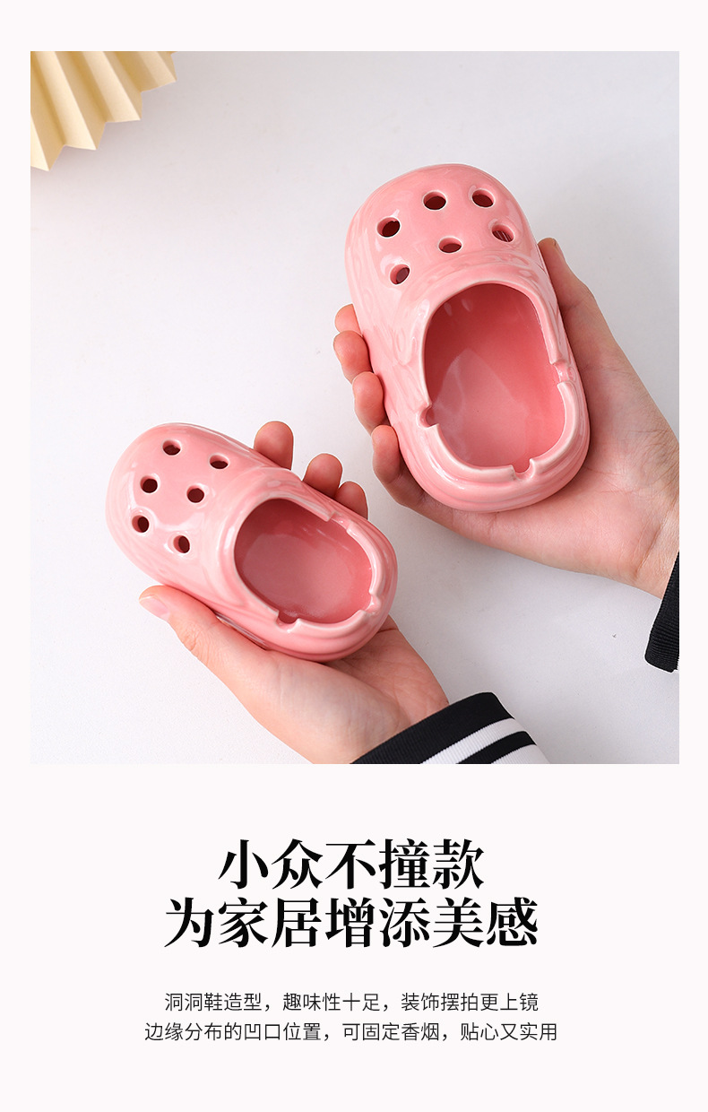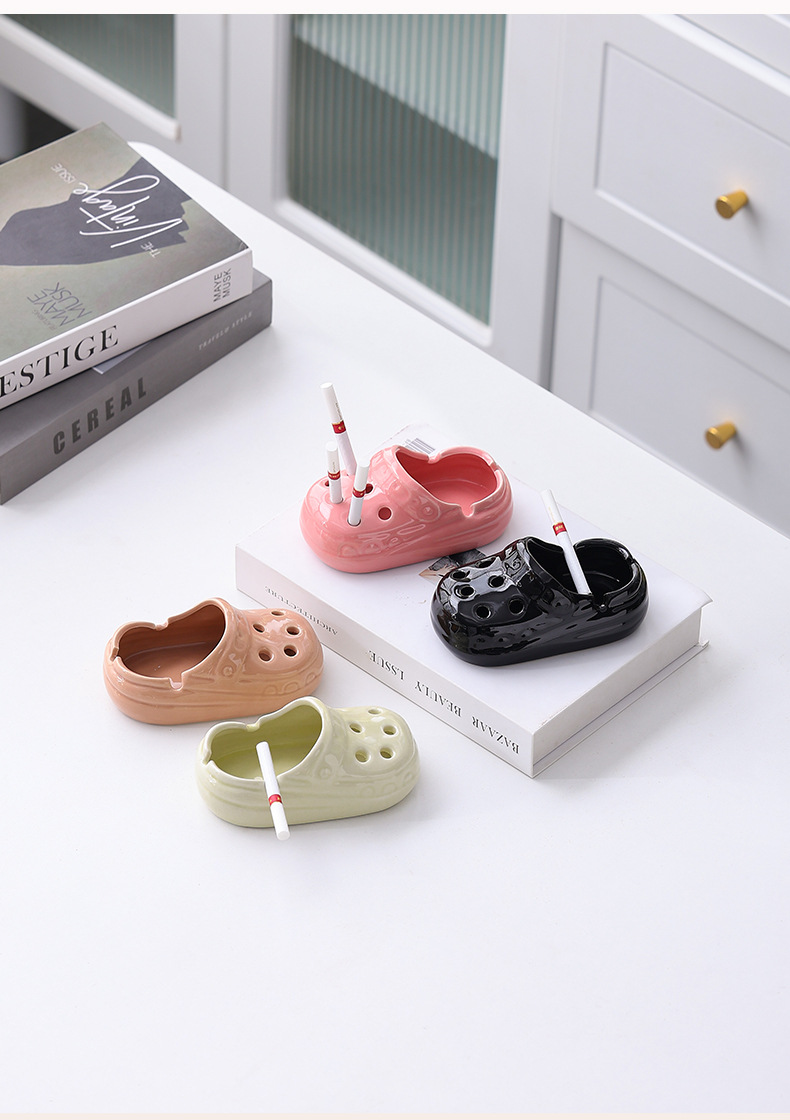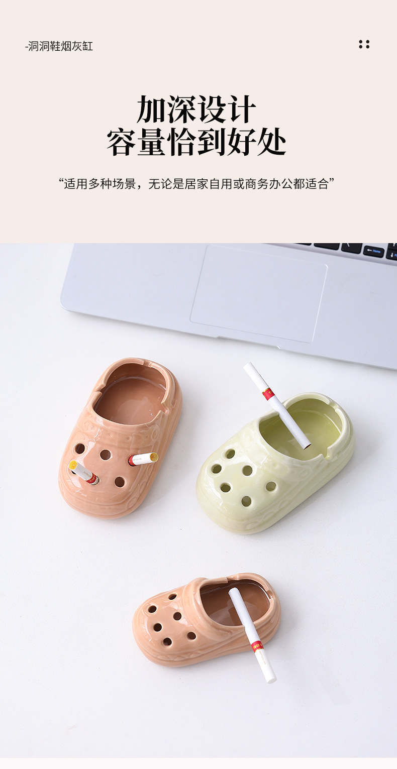 创意陶瓷烟灰缸办公室家用客厅茶几潮流轻奢网红洞洞鞋酒店用品