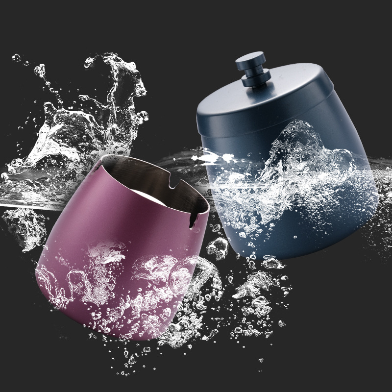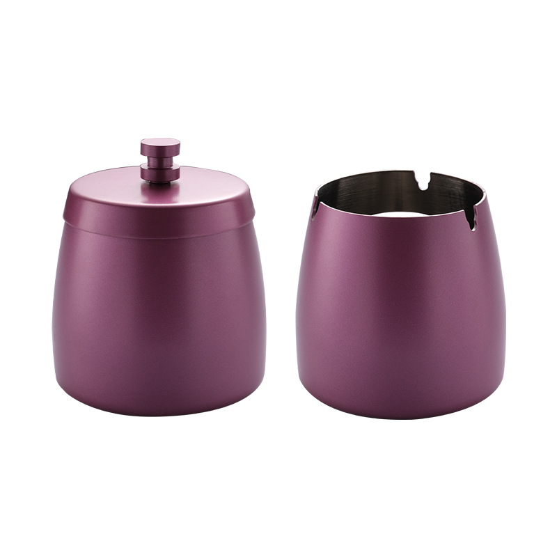 跨境亚马逊不锈钢烟灰缸创意喷漆酒店家用带盖烟灰缸礼品可做logo