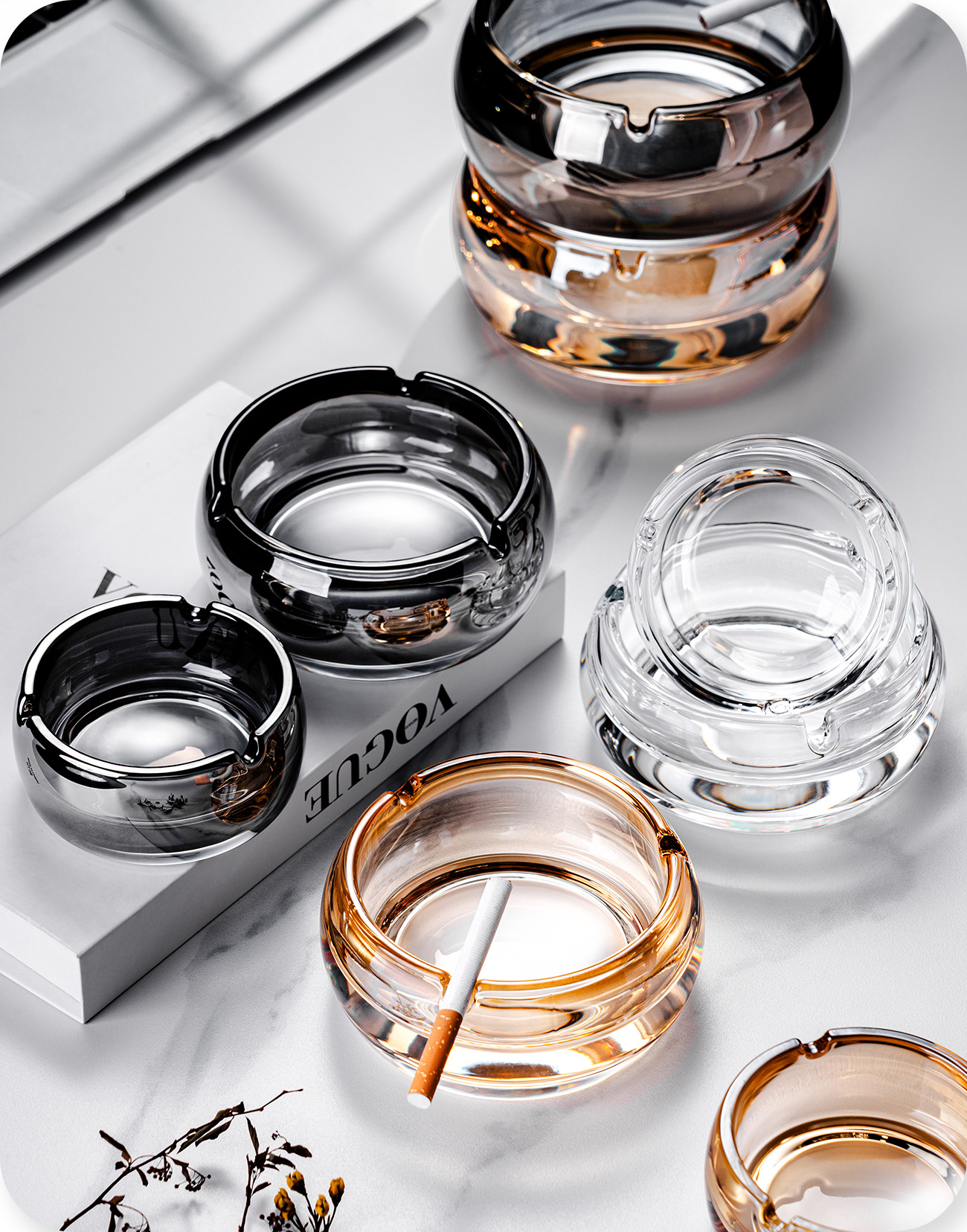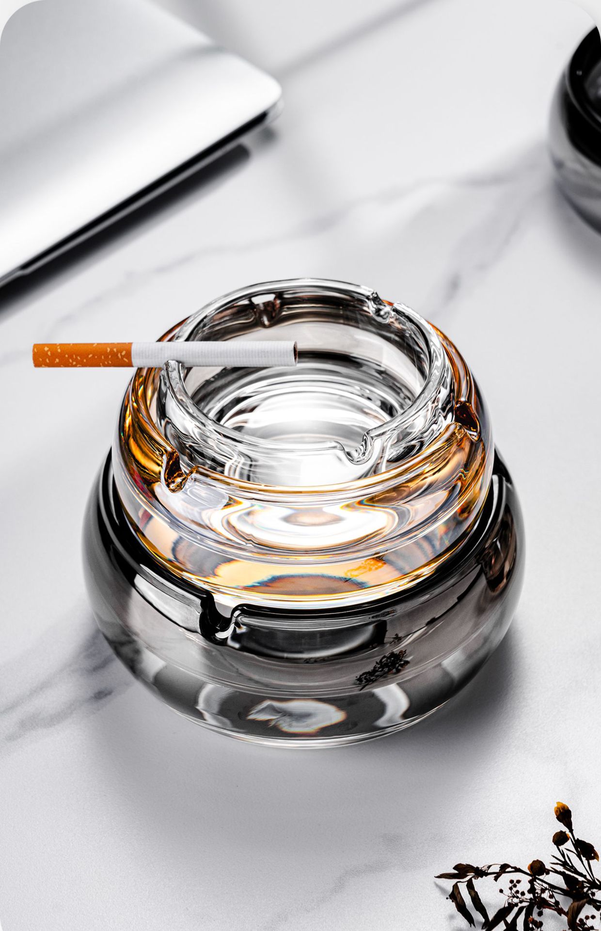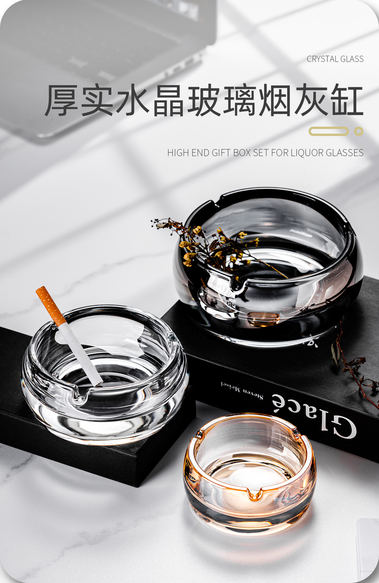 高端家用客厅加厚高档玻璃烟灰缸办公室创意轻奢高级感高档烟灰缸