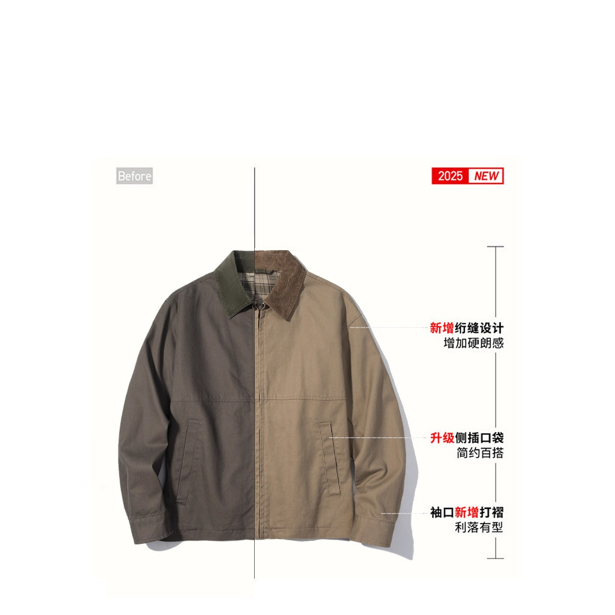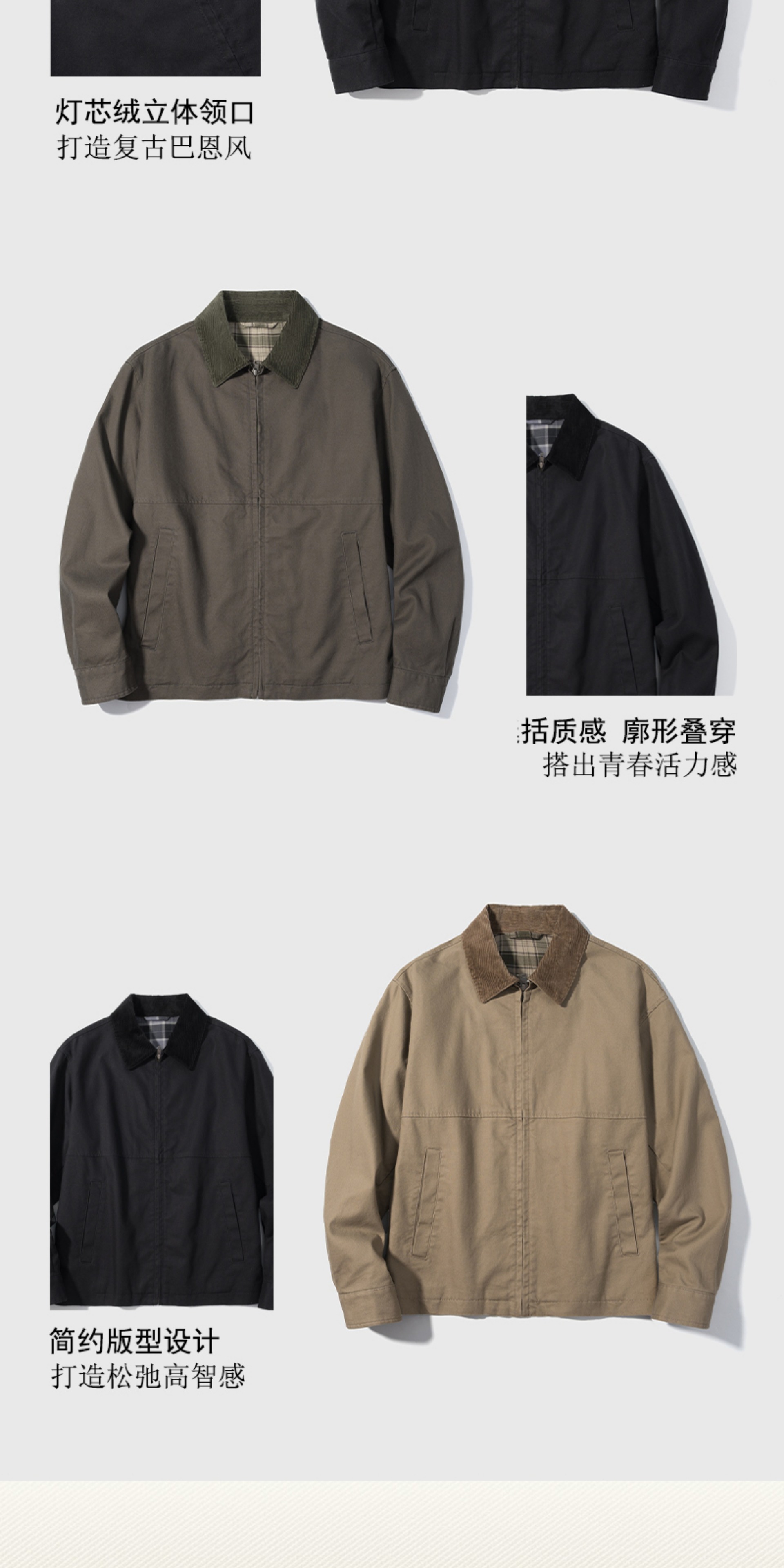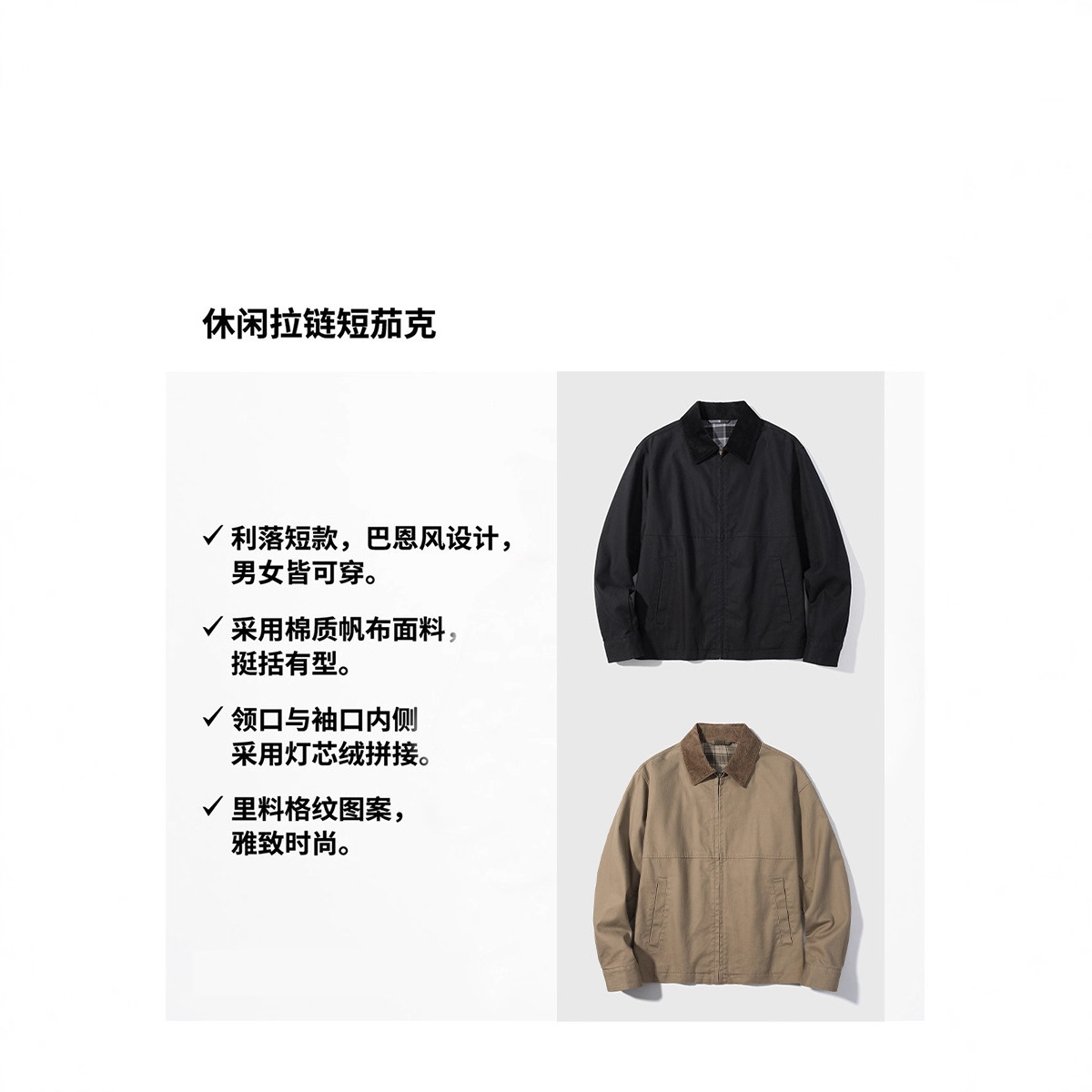 男装女装休闲复古拉链茄克外套男巴恩风翻领夹克25秋季新款478230