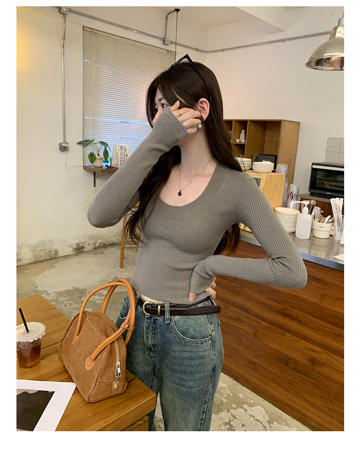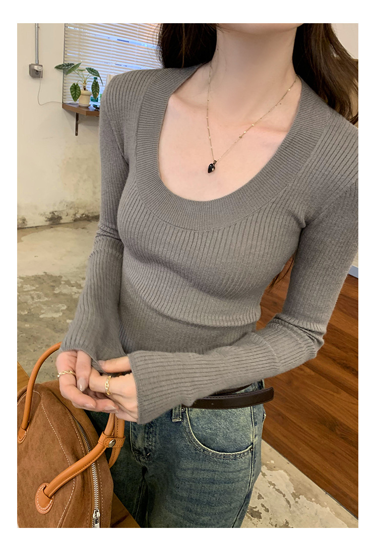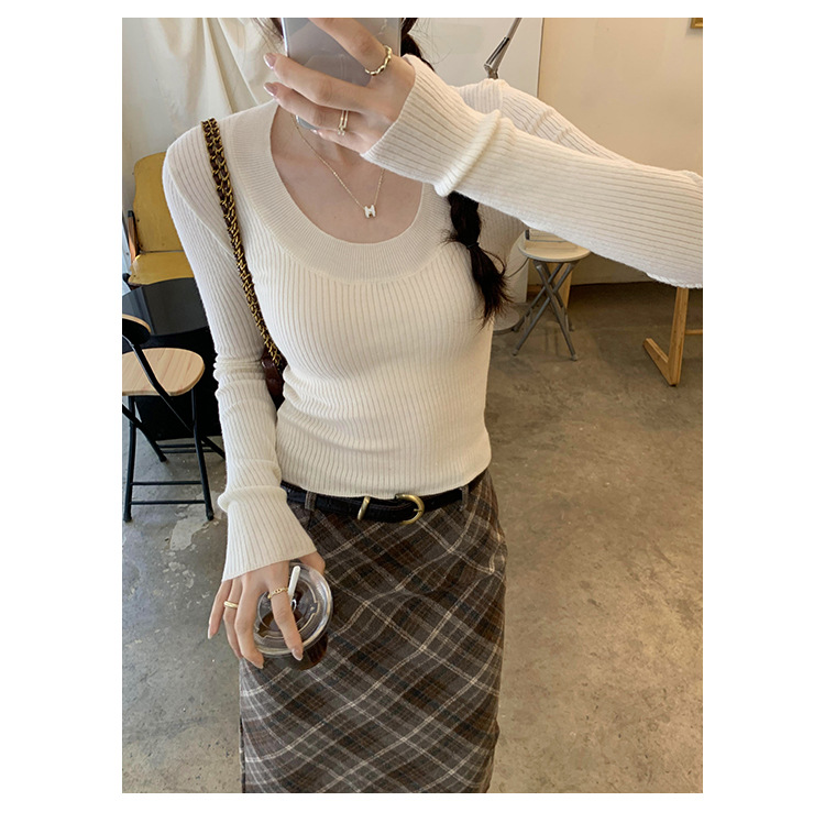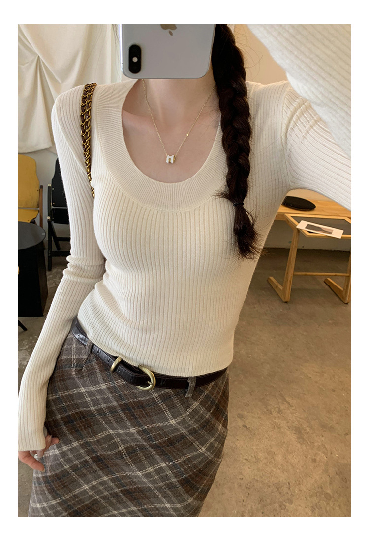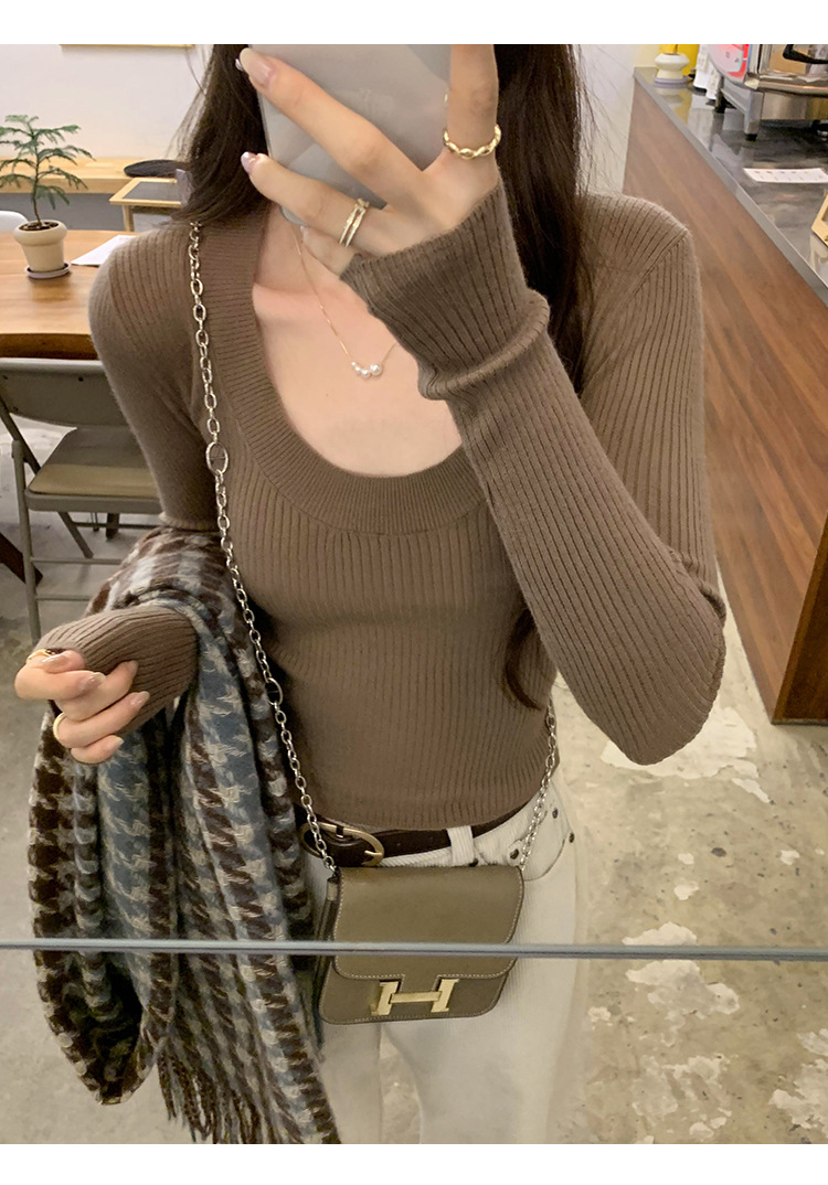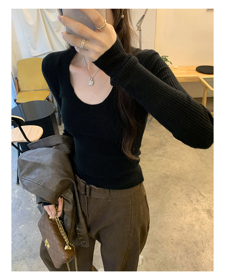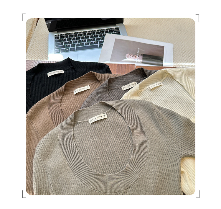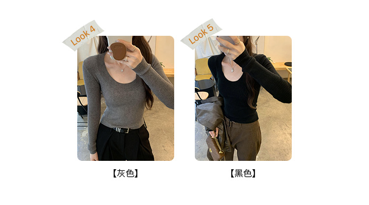 韩系小香风U领辣妹内搭打底针织衫女秋冬季新款修身显瘦短款上衣