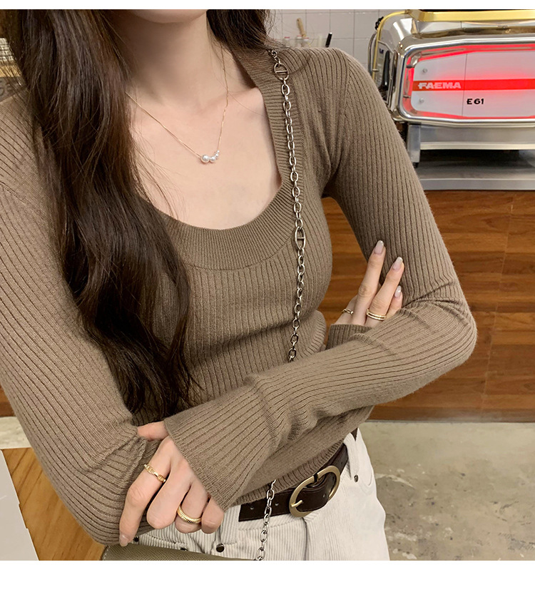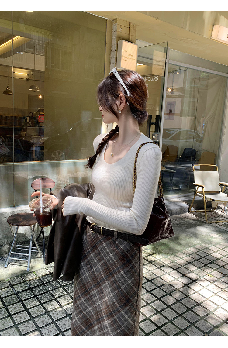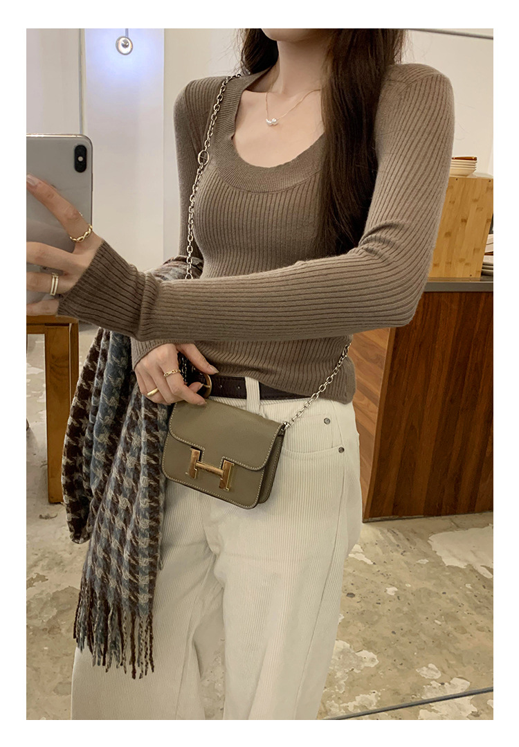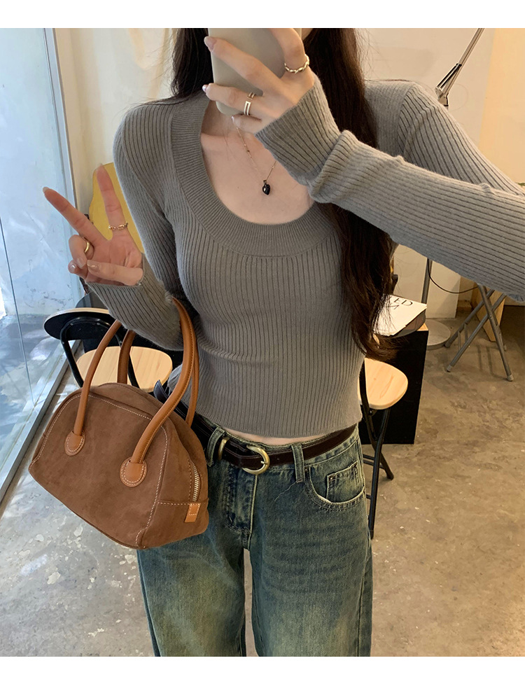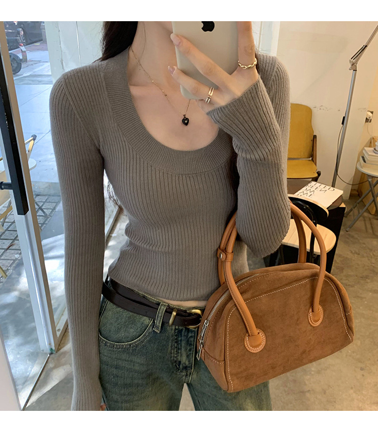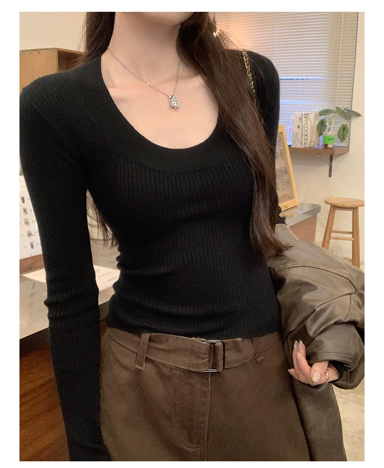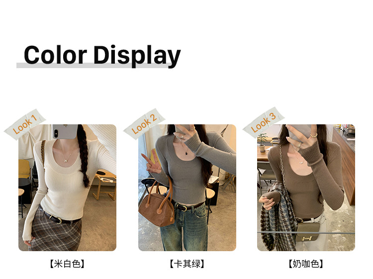 韩系小香风U领辣妹内搭打底针织衫女秋冬季新款修身显瘦短款上衣