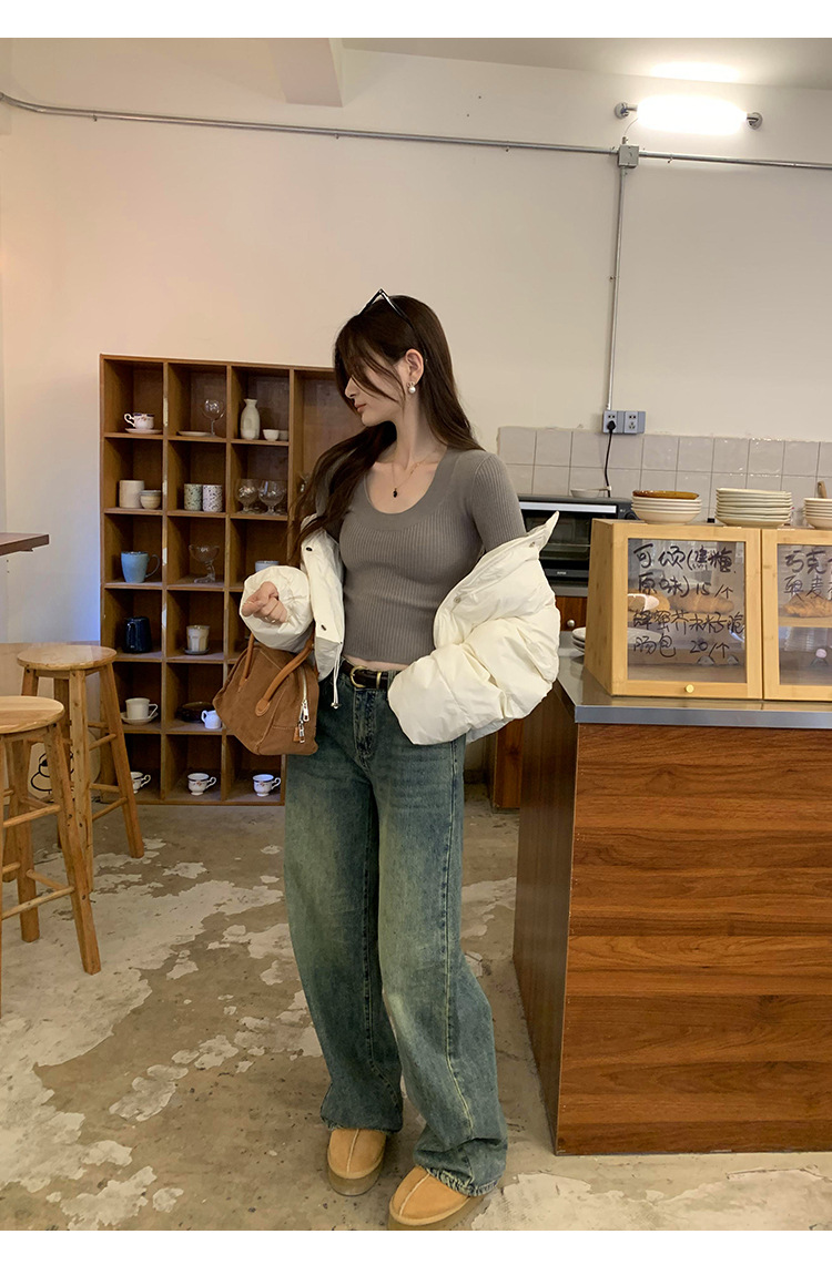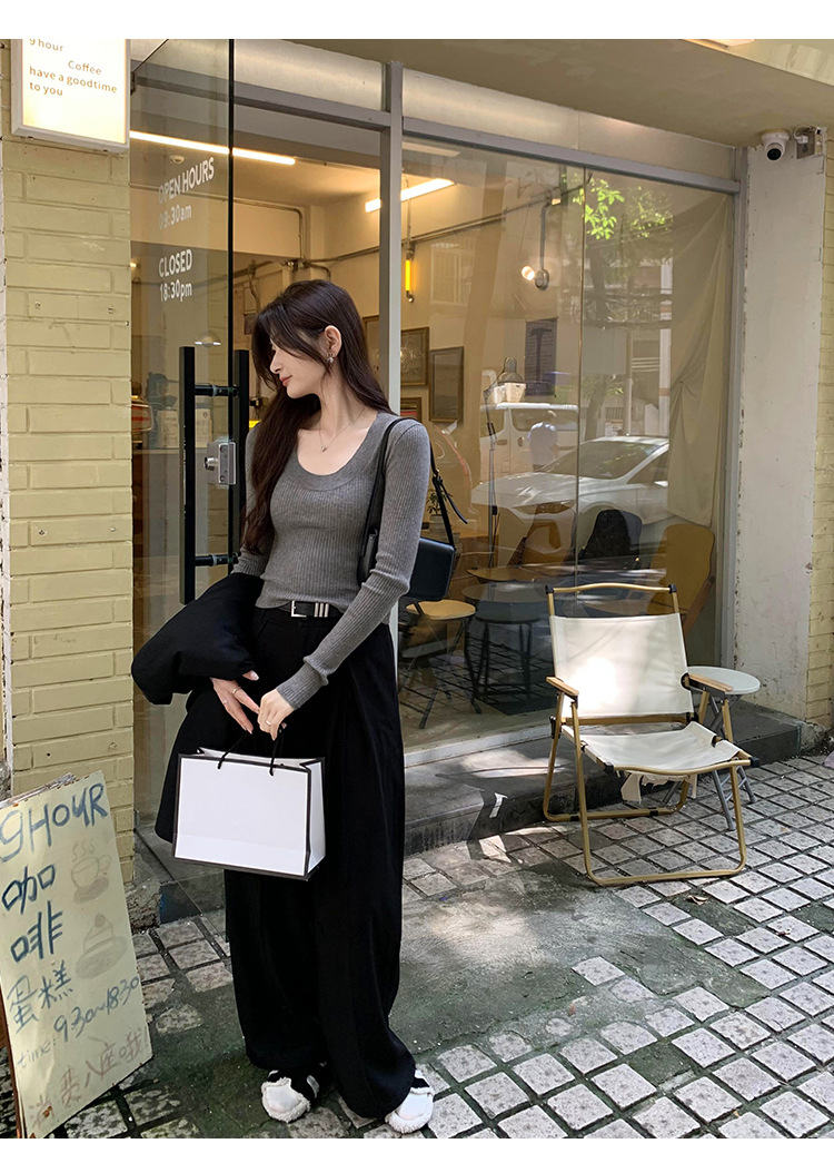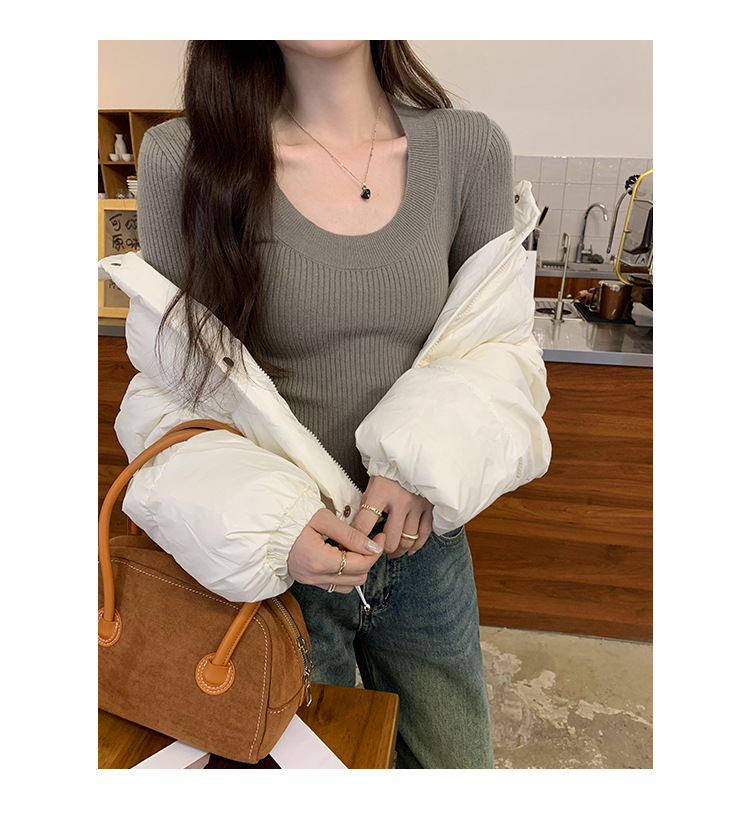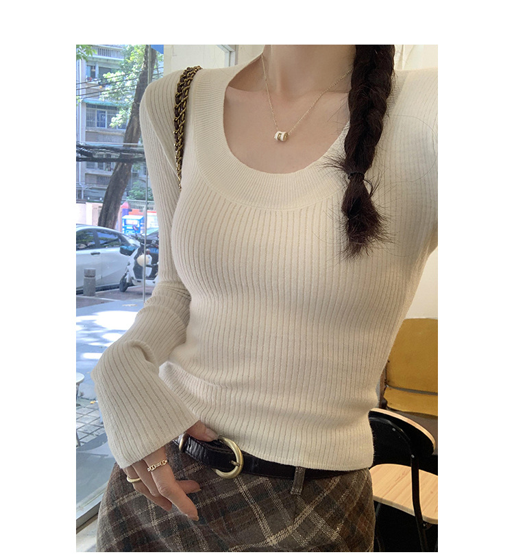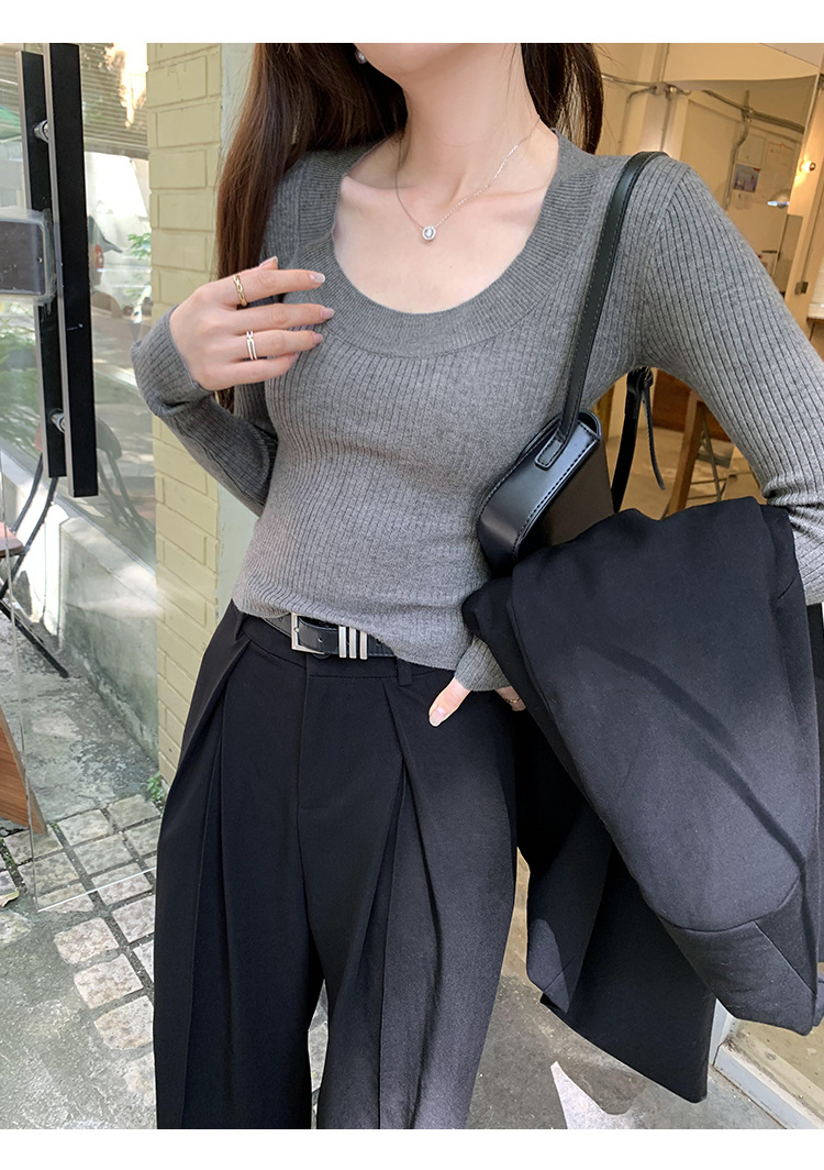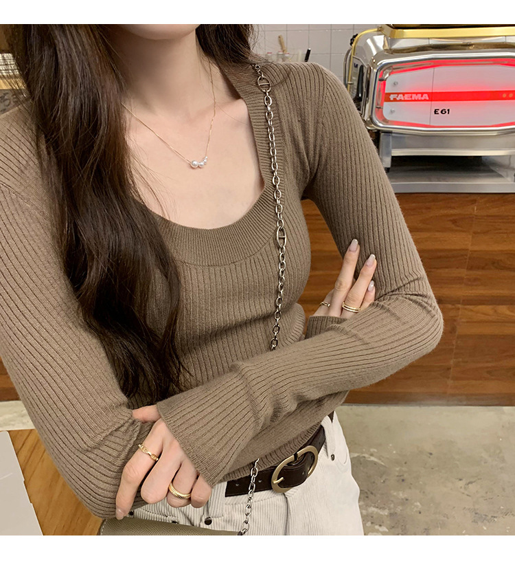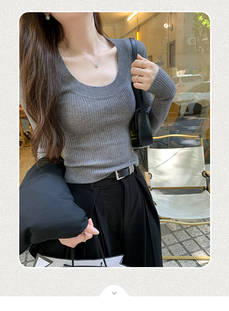 韩系小香风U领辣妹内搭打底针织衫女秋冬季新款修身显瘦短款上衣