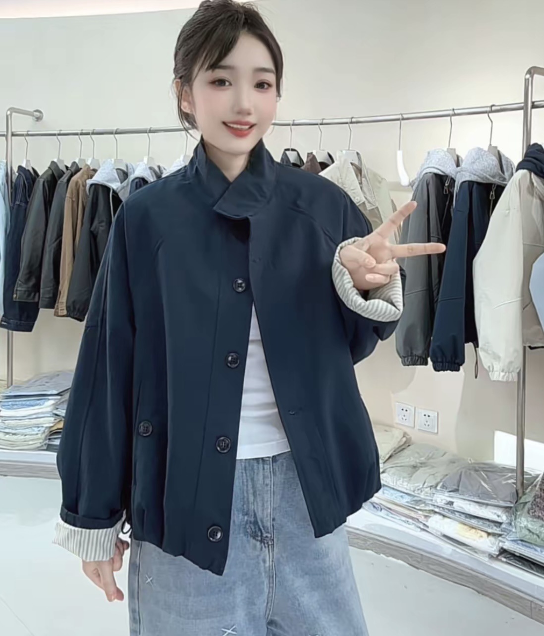 高级感韩系立领撞色工装外套女2025秋季新款休闲时尚流行短款夹克