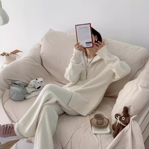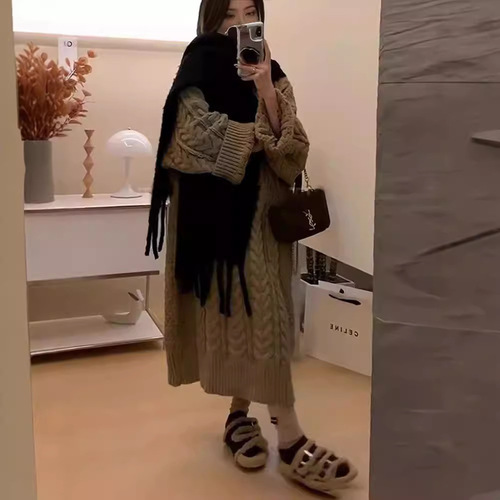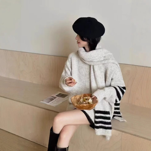 韩系穿搭慵懒风翻领毛衣秋冬新款高级感宽松软糯针织开衫上衣外套