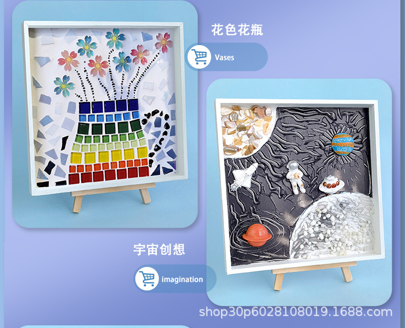 diy手工立体画肌理画 小白盒马赛克创意装饰画摆件儿童自制材料包