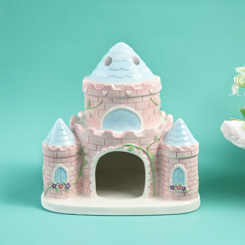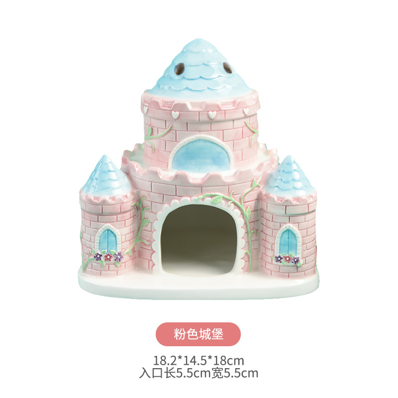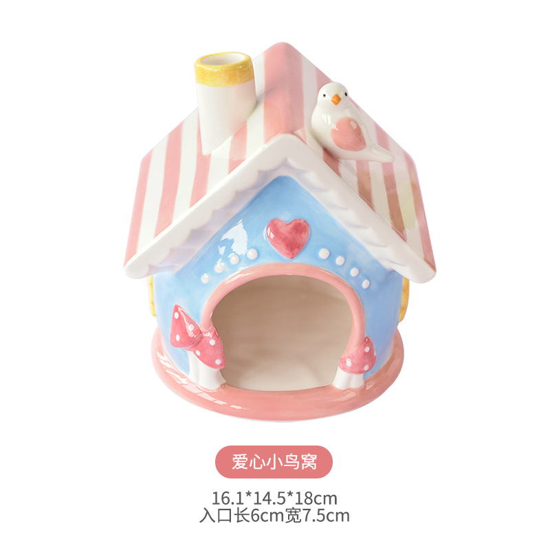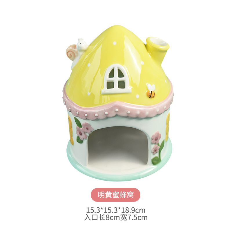 蘑菇城堡魔幻仓鼠陶瓷窝碗食盆水樽水壶支架金丝熊躲避屋造景用品