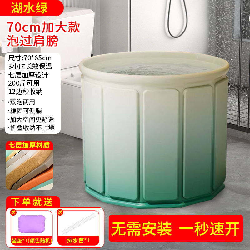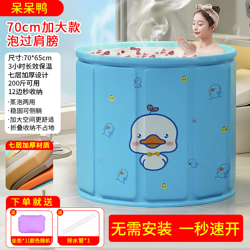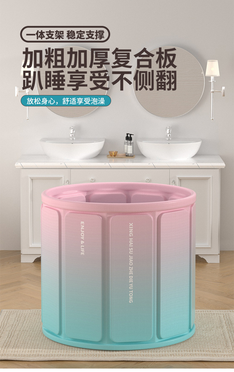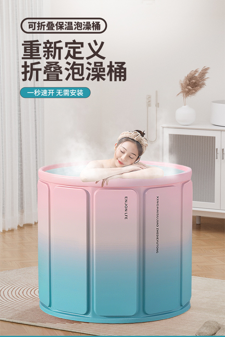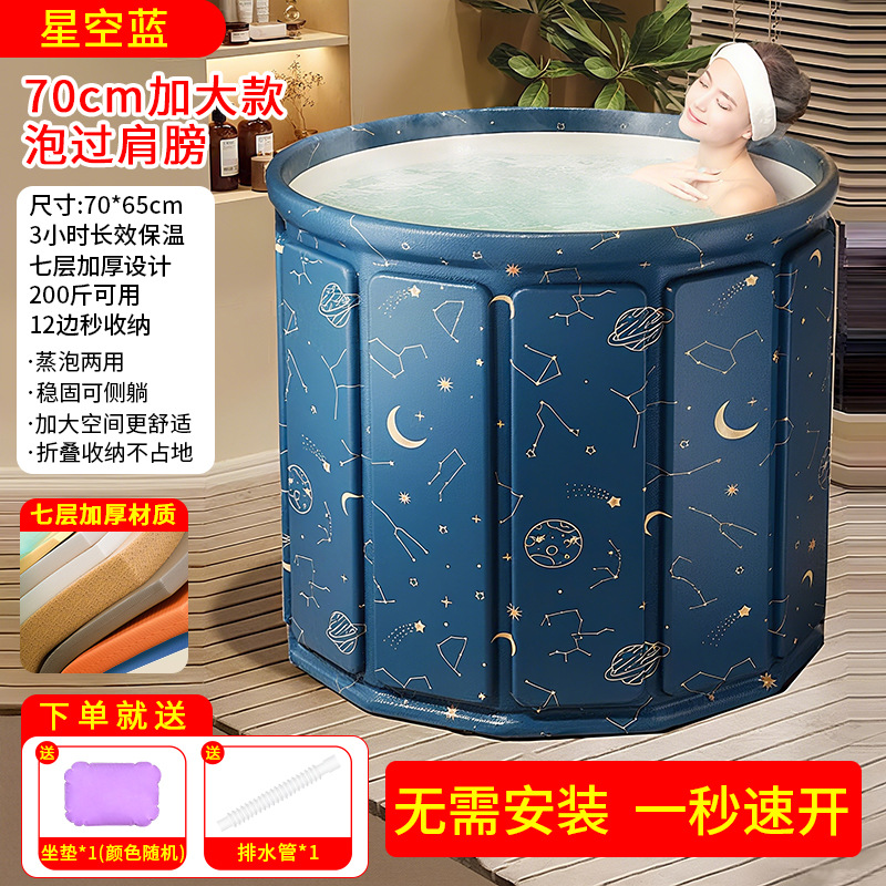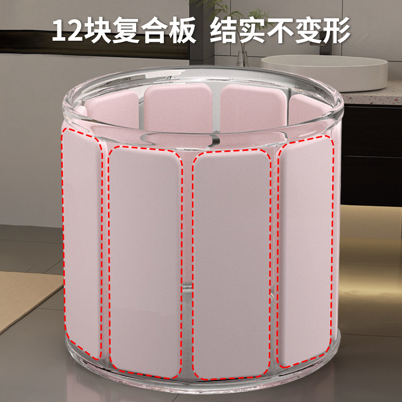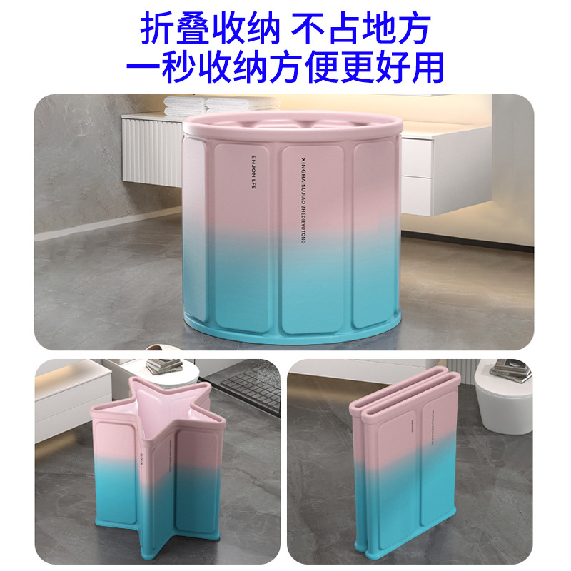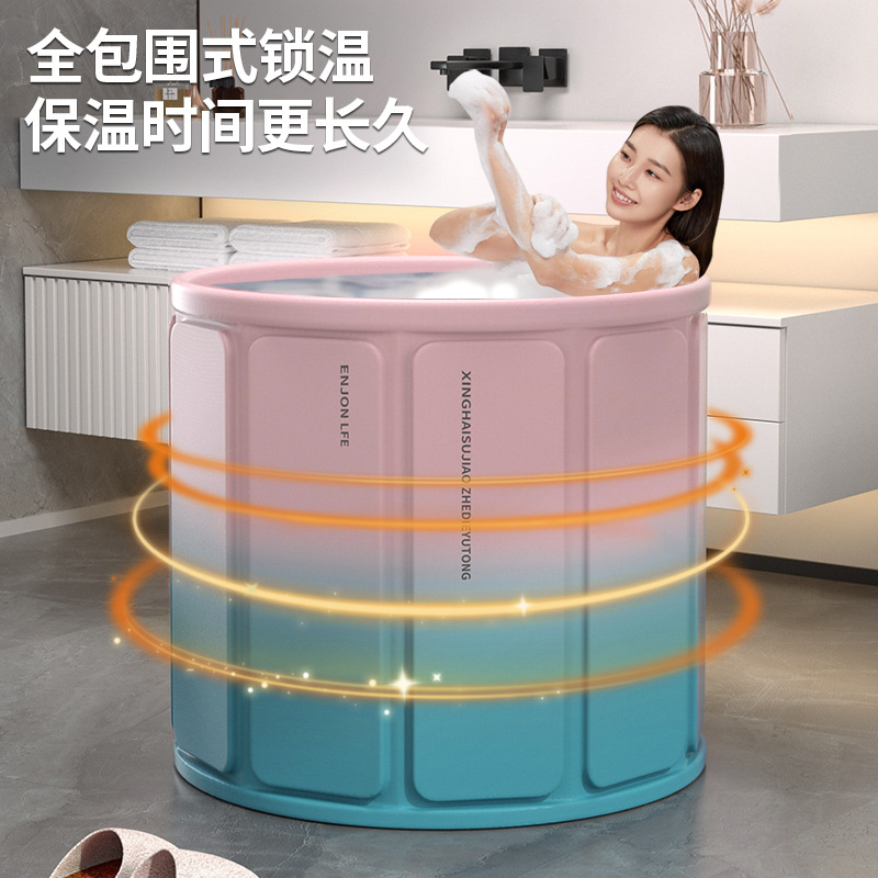 家用洗澡折叠浴桶加厚保温免安装成人大号加棉防侧翻蓝粉色泡澡桶