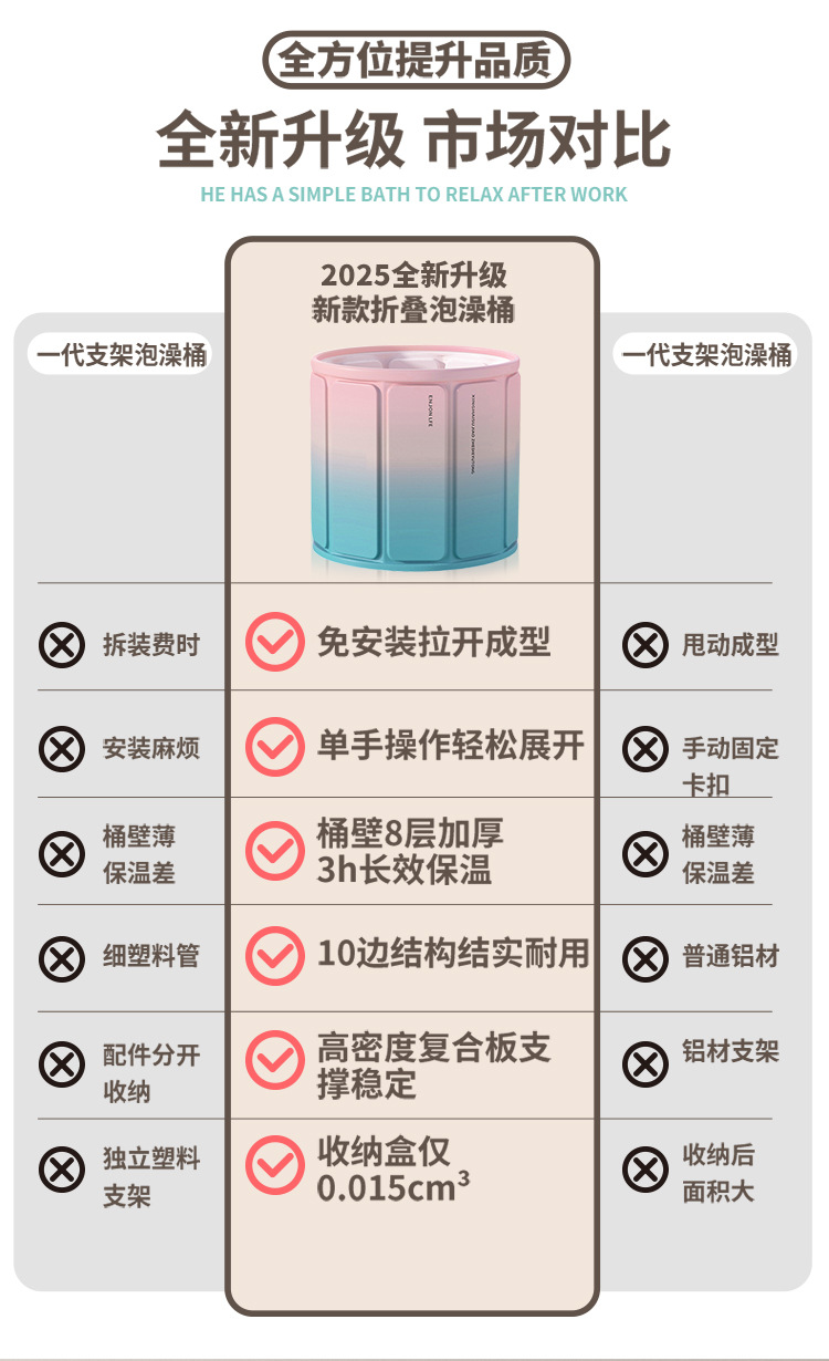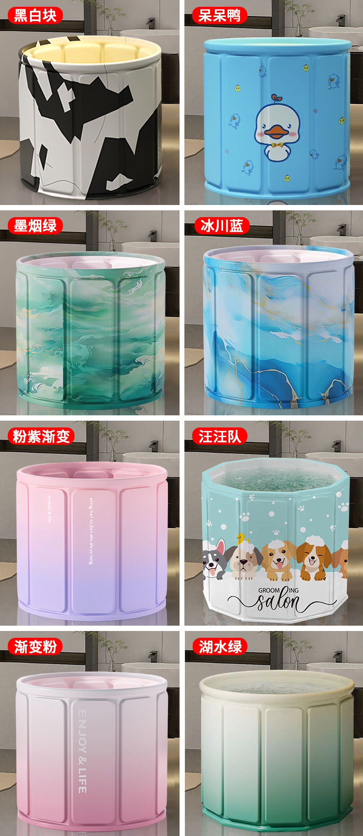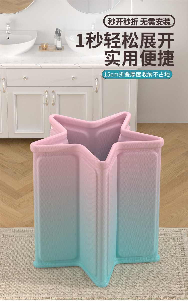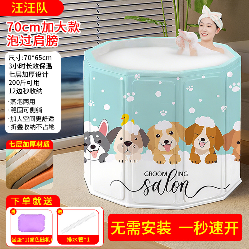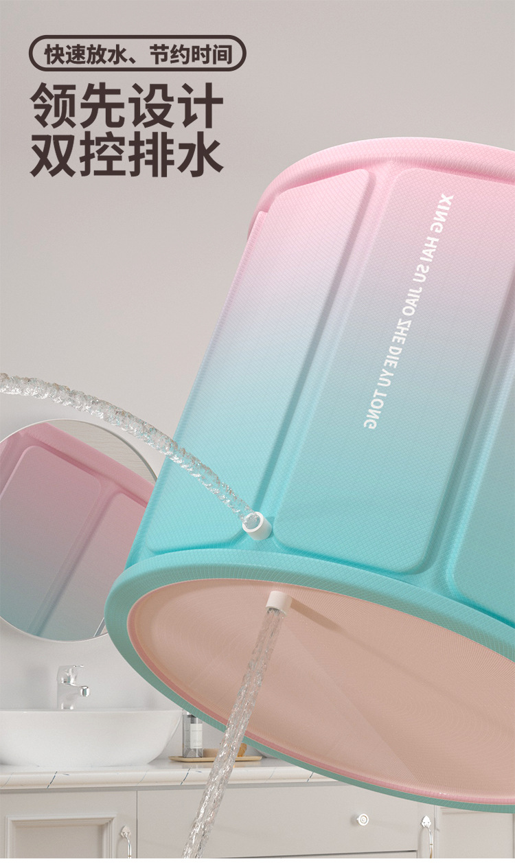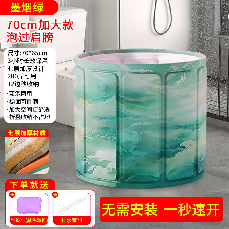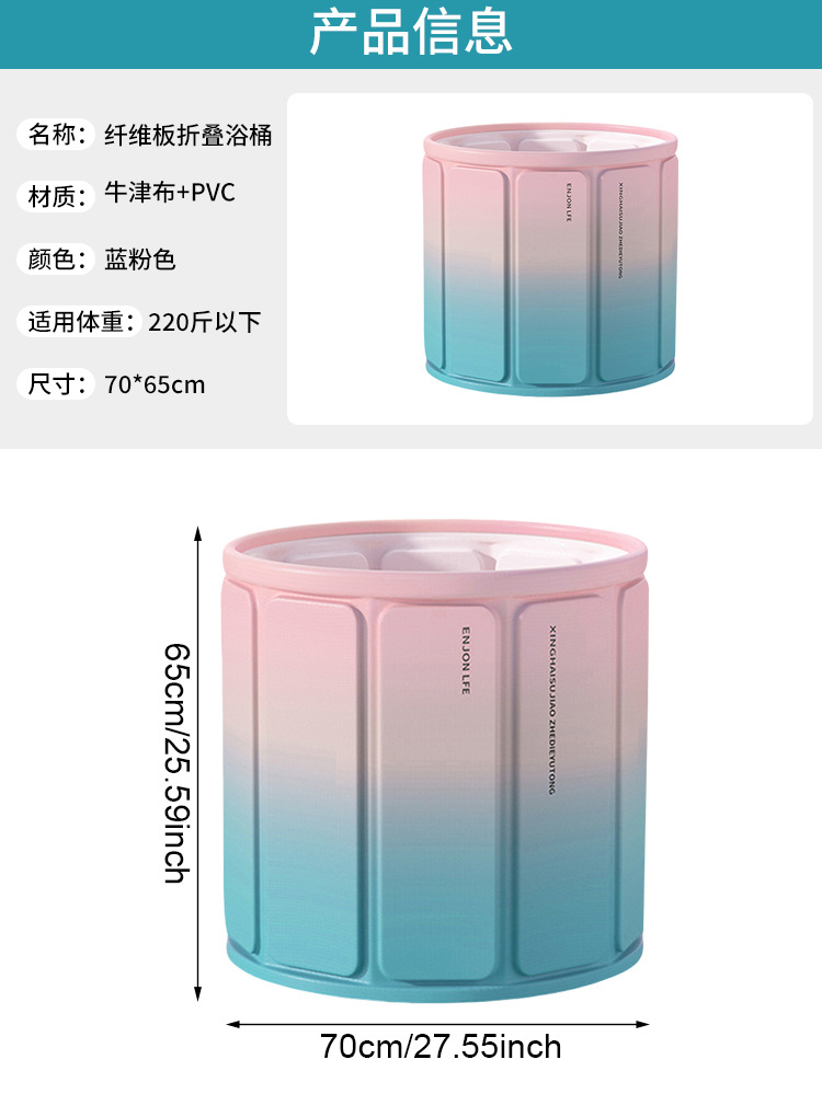 家用洗澡折叠浴桶加厚保温免安装成人大号加棉防侧翻蓝粉色泡澡桶